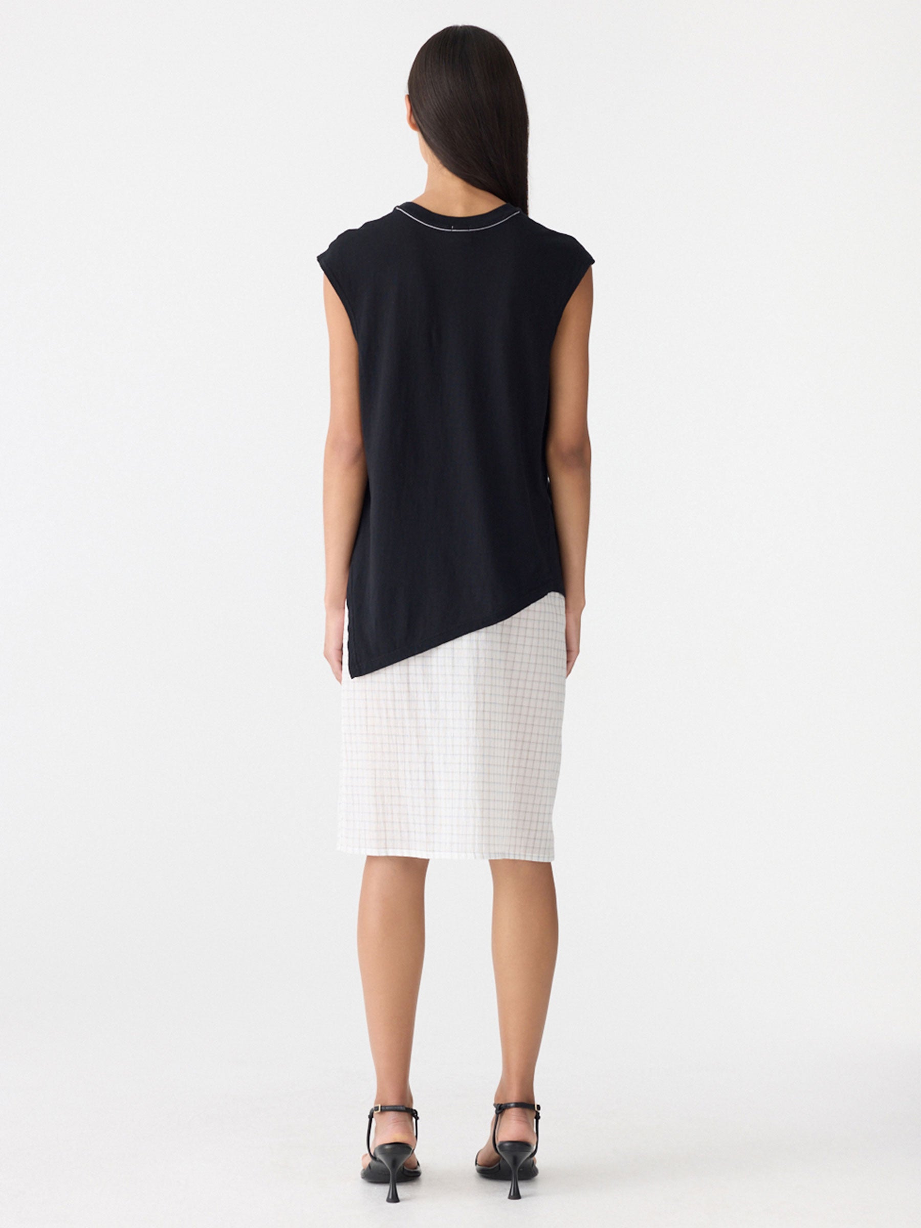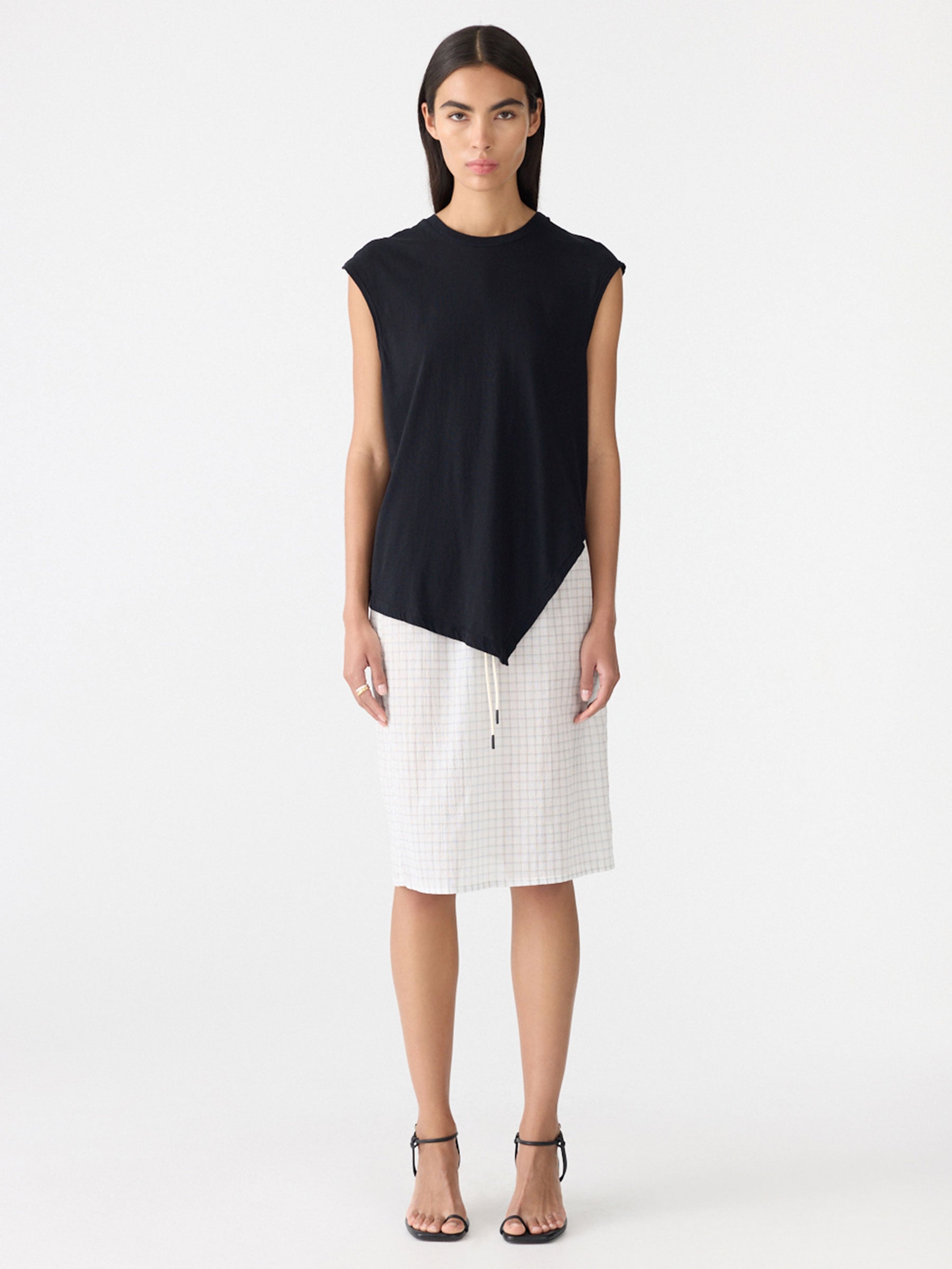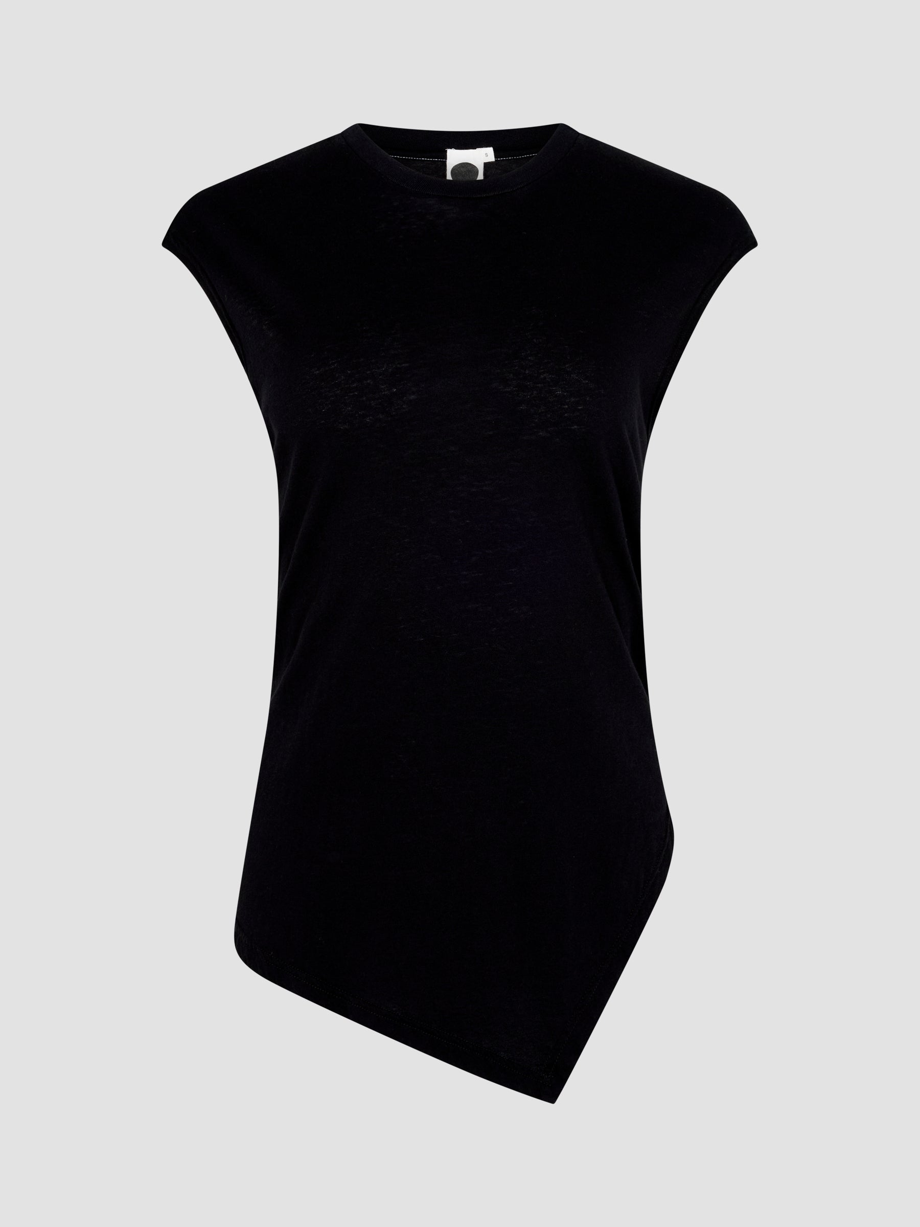 Credit or Exchange Only black fridayThe Asymmetric Crew Neck Tank is crafted from soft organic jersey with a regular fit. Features a ribbed crew neck and an asymmetric front with a side split for subtle movement and shape.
