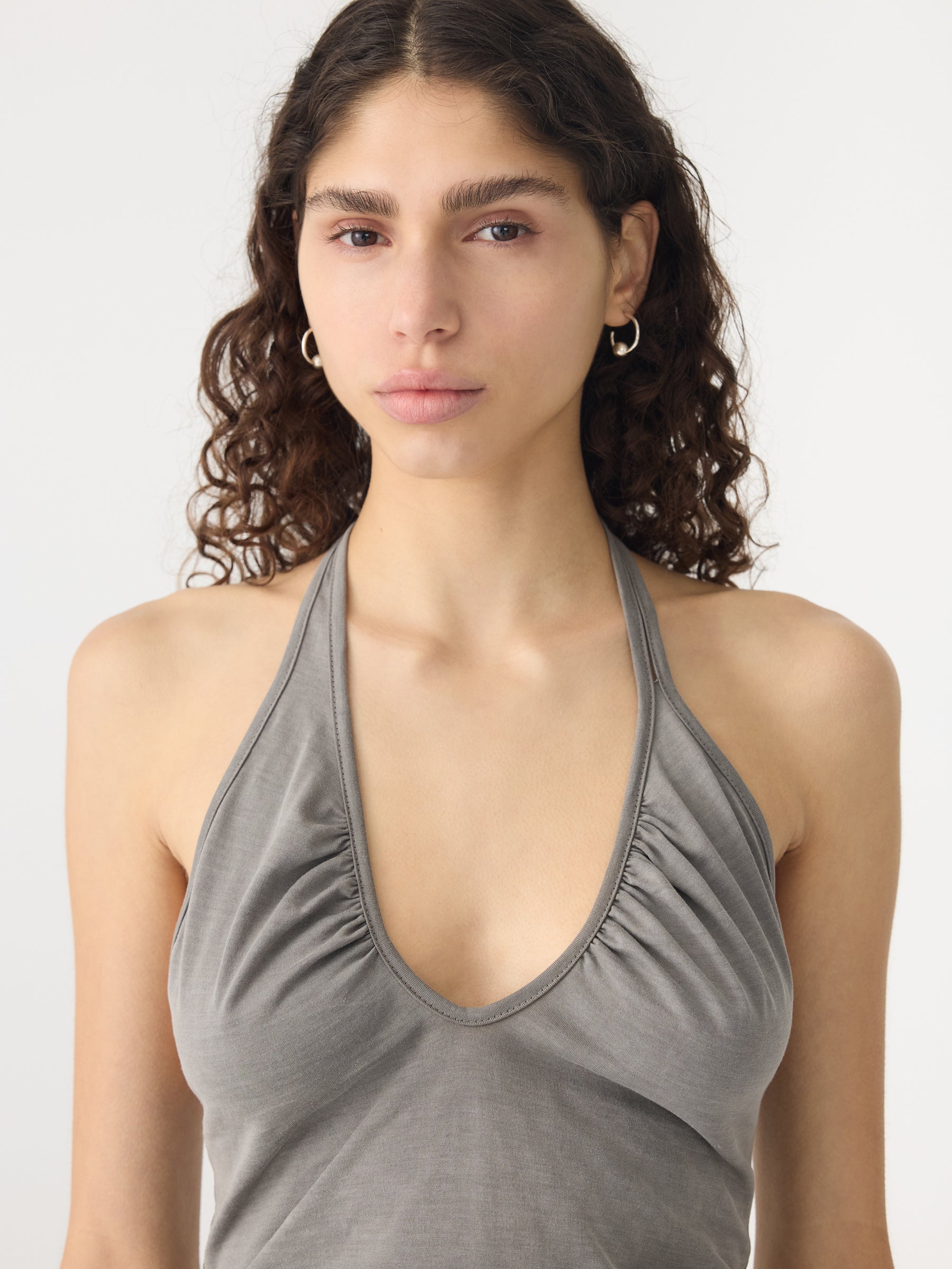 Crafted from Italian compact jersey, this style is defined by a fluid drape and dry, soft hand feel. The fabric is piece dyed using natural dyes without chemicals, resulting in subtle variations in tone across each batch, making every garment unique.