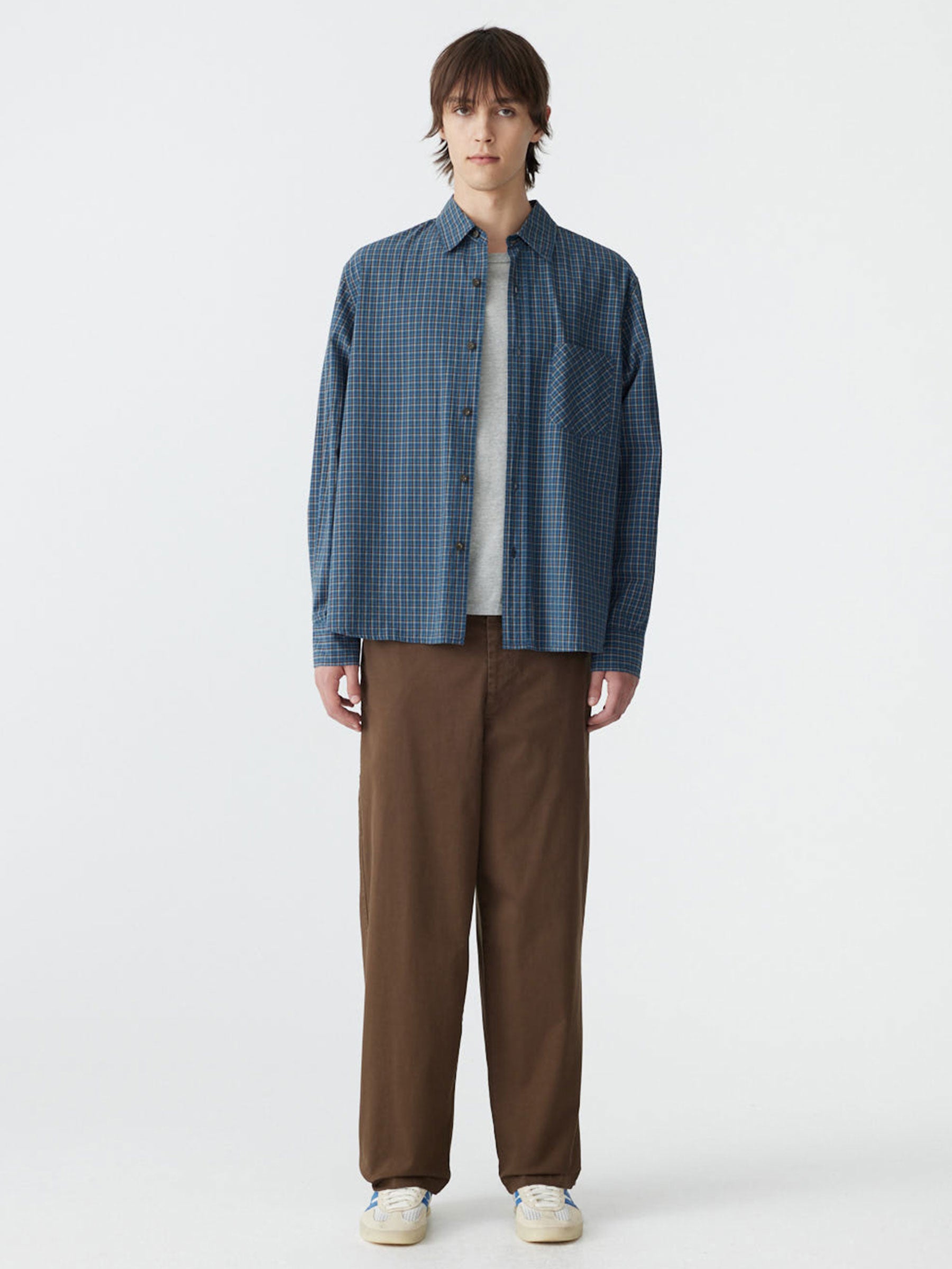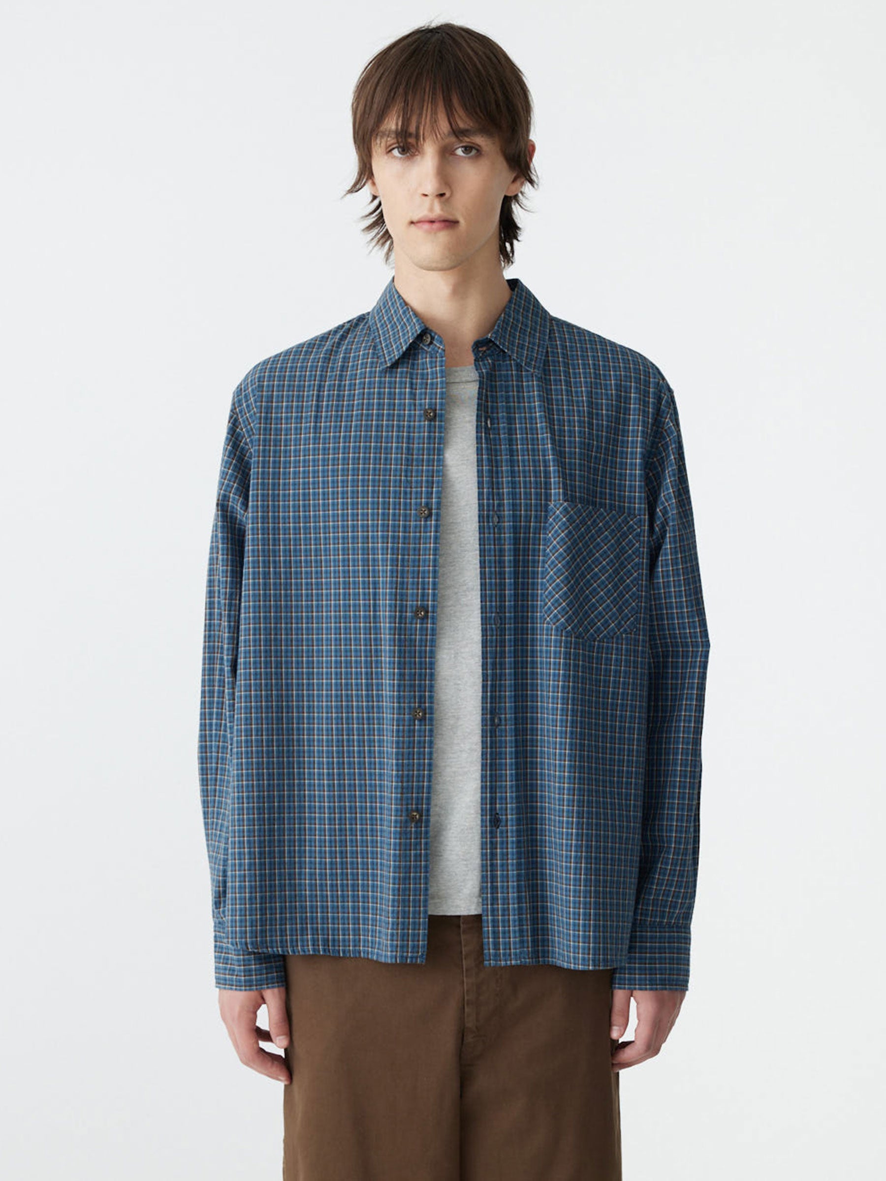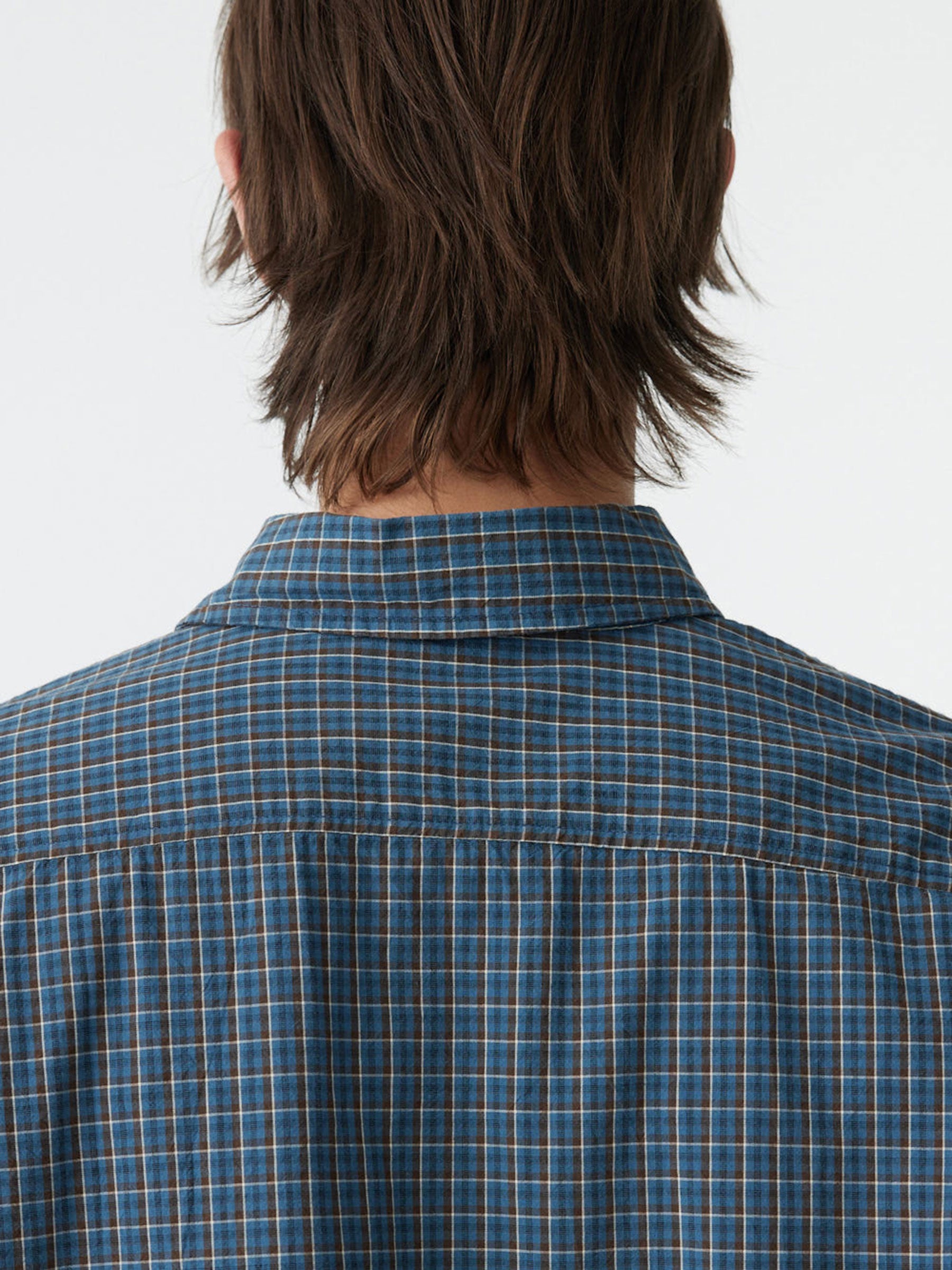 The Boxy Cotton Check Shirt is designed in a structured yet relaxed silhouette with a considered, everyday feel. Crafted from yarn-dyed organic cotton check, featuring a cross-grain patch pocket at the front and contrast internal check detailing. Finished with a back yoke, front button closure, and buttoned cuffs. Lightweight and soft, the fabric develops character with wear and age.