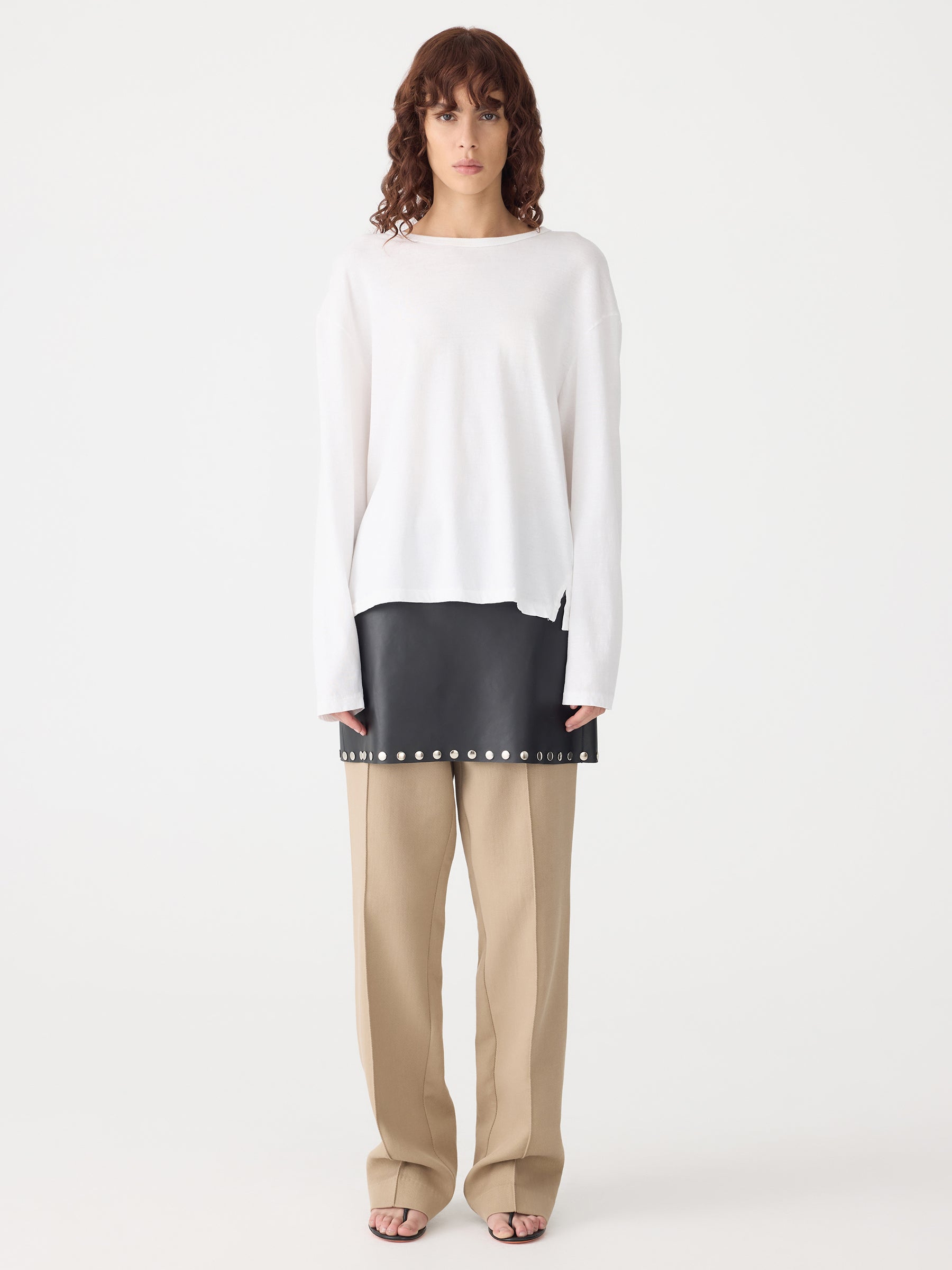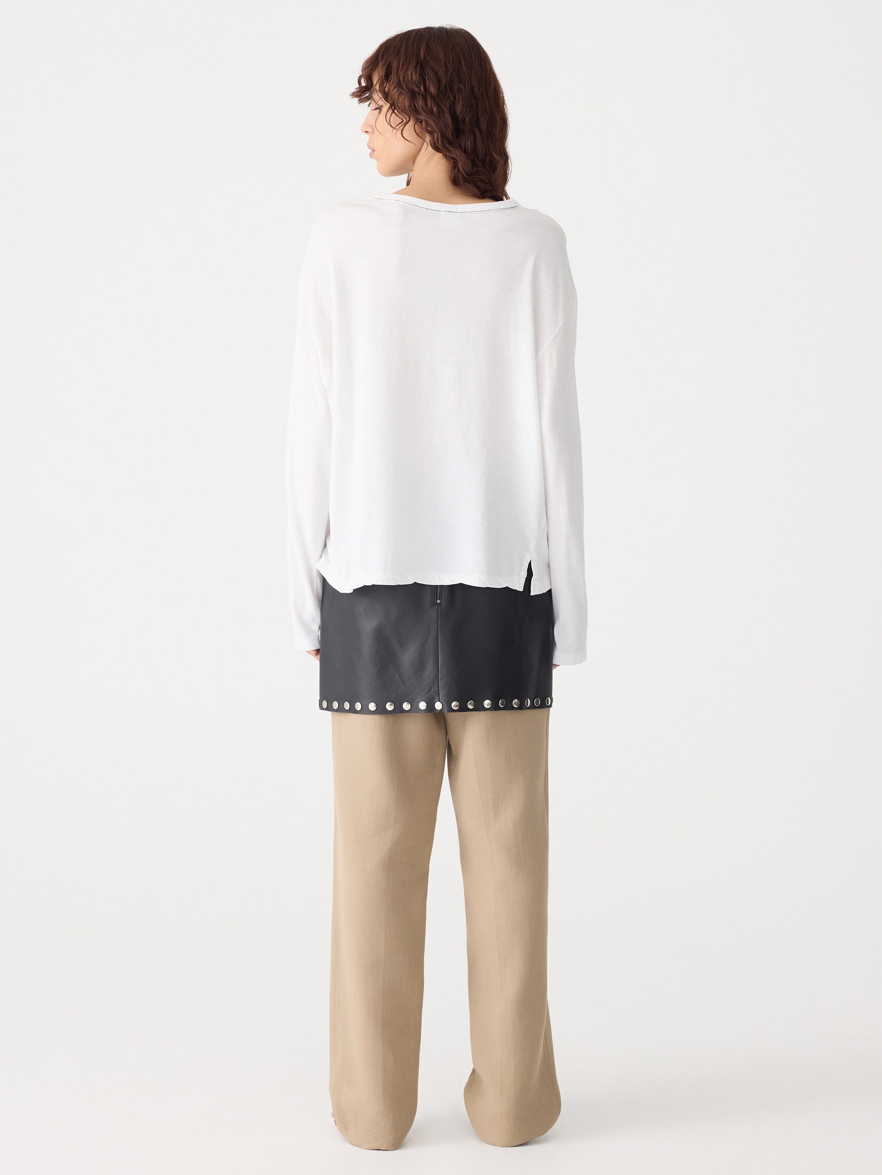 A new seasonal classic in lightweight organic cotton single jersey, the Boyfriend Heritage Long Sleeve T-Shirt is a foundational wardrobe essential. Designed with dropped shoulder seams and a slouched silhouette, it offers a relaxed yet considered fit. Refined by a rib heritage neck bind, side split seams, and distinguished by signature Bassike contrast topstitching at the back.