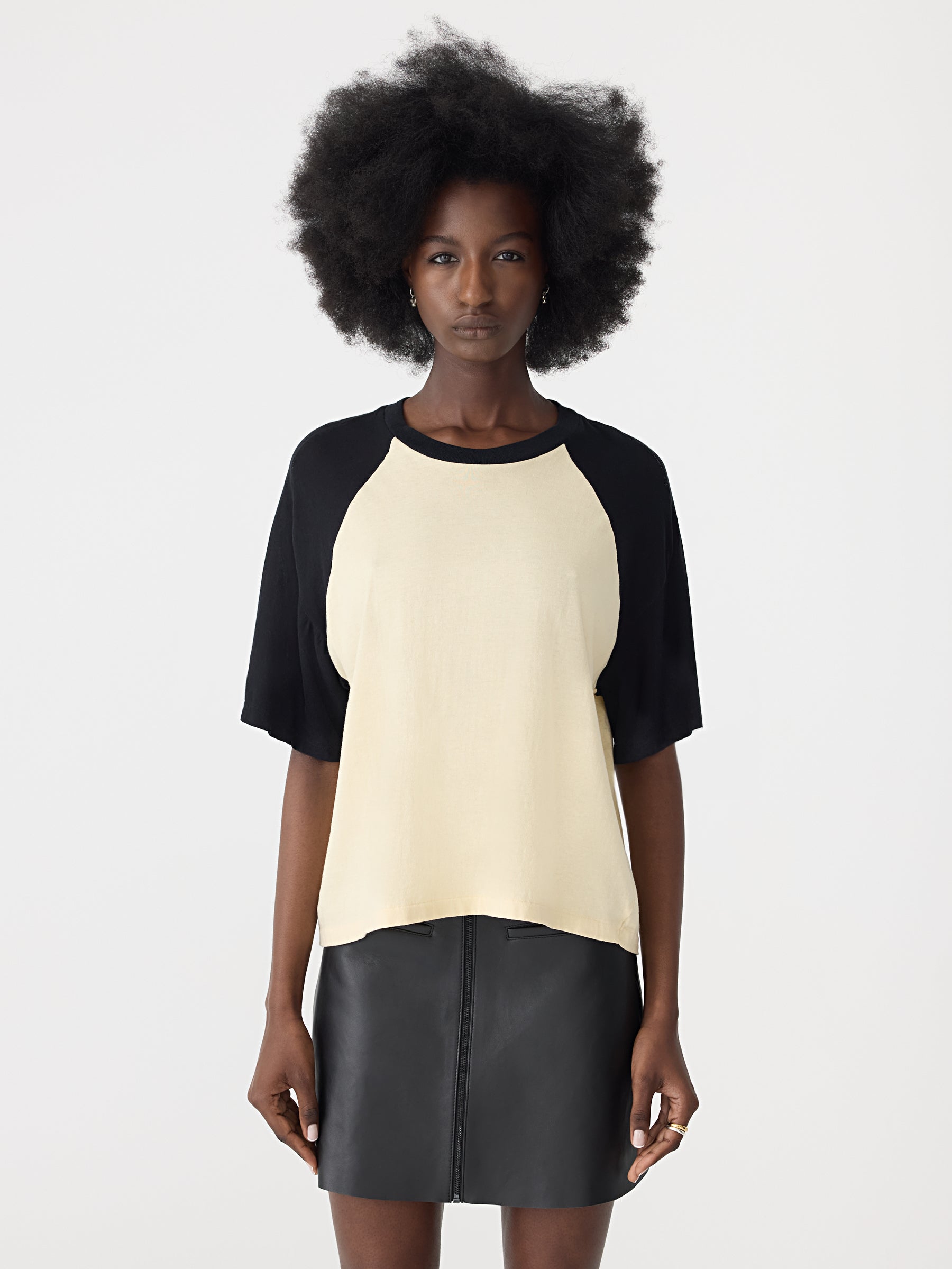 Credit or Exchange Only black fridayAn effortless everyday staple, the Contrast Raglan Short Sleeve T-Shirt is crafted from organic cotton single jersey, knitted in Australia. Designed for a relaxed, slouch fit with a boxy silhouette, this raglan style features contrast sleeves and neckline. Finished with Bassike’s signature contrast chainstitch at the back neck.