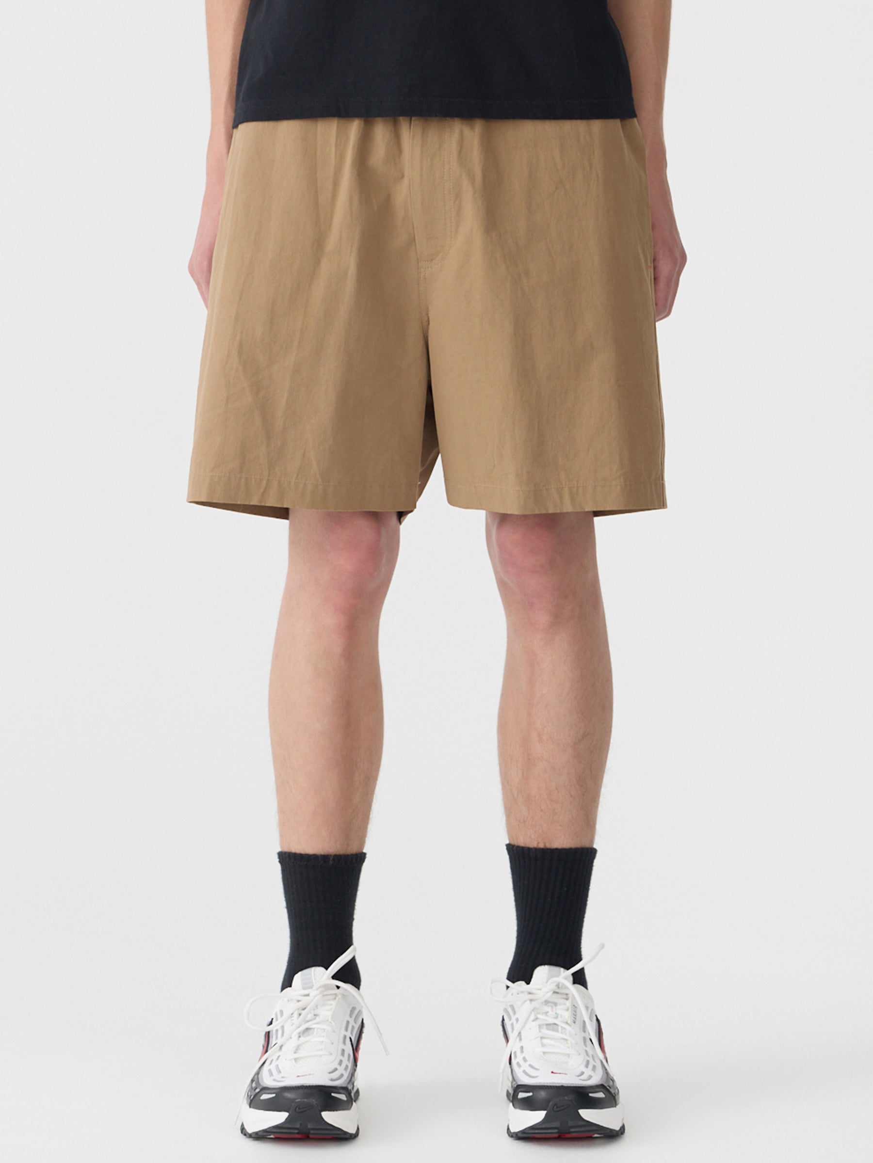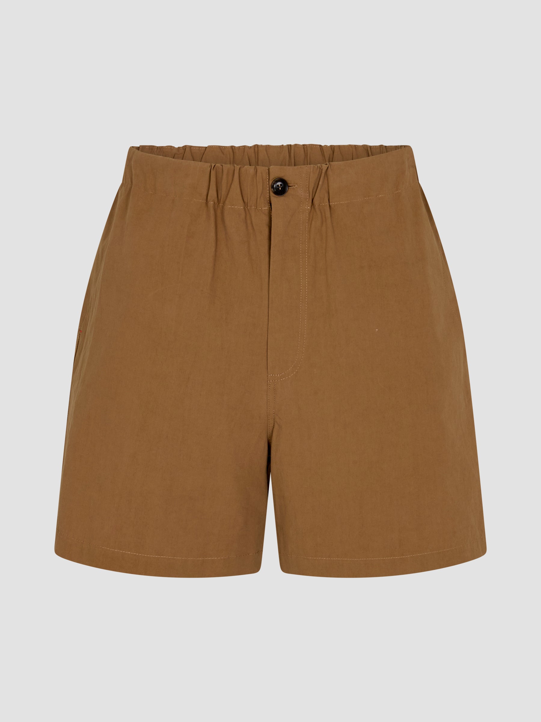Relaxed fit pull-on short featuring button and zip closure, with an elasticated waistband for ease. Designed with side entry pockets finished with envelope stitch detailing, a back yoke, and back patch pockets. Crafted from lightweight compact cotton with a naturally crushed look and soft hand feel.