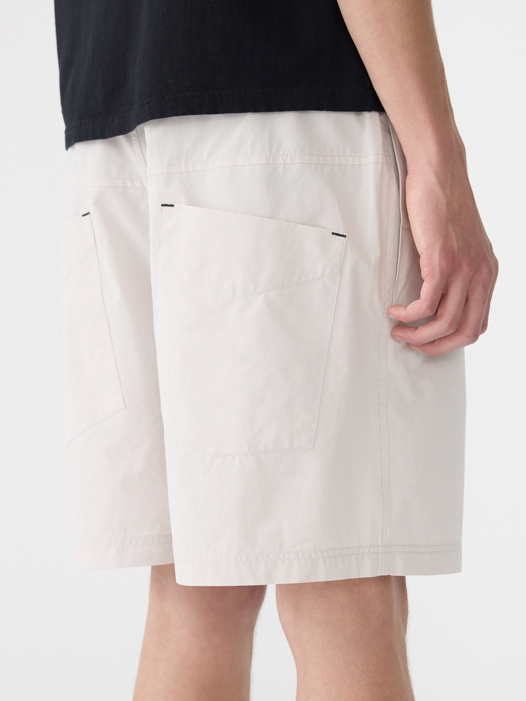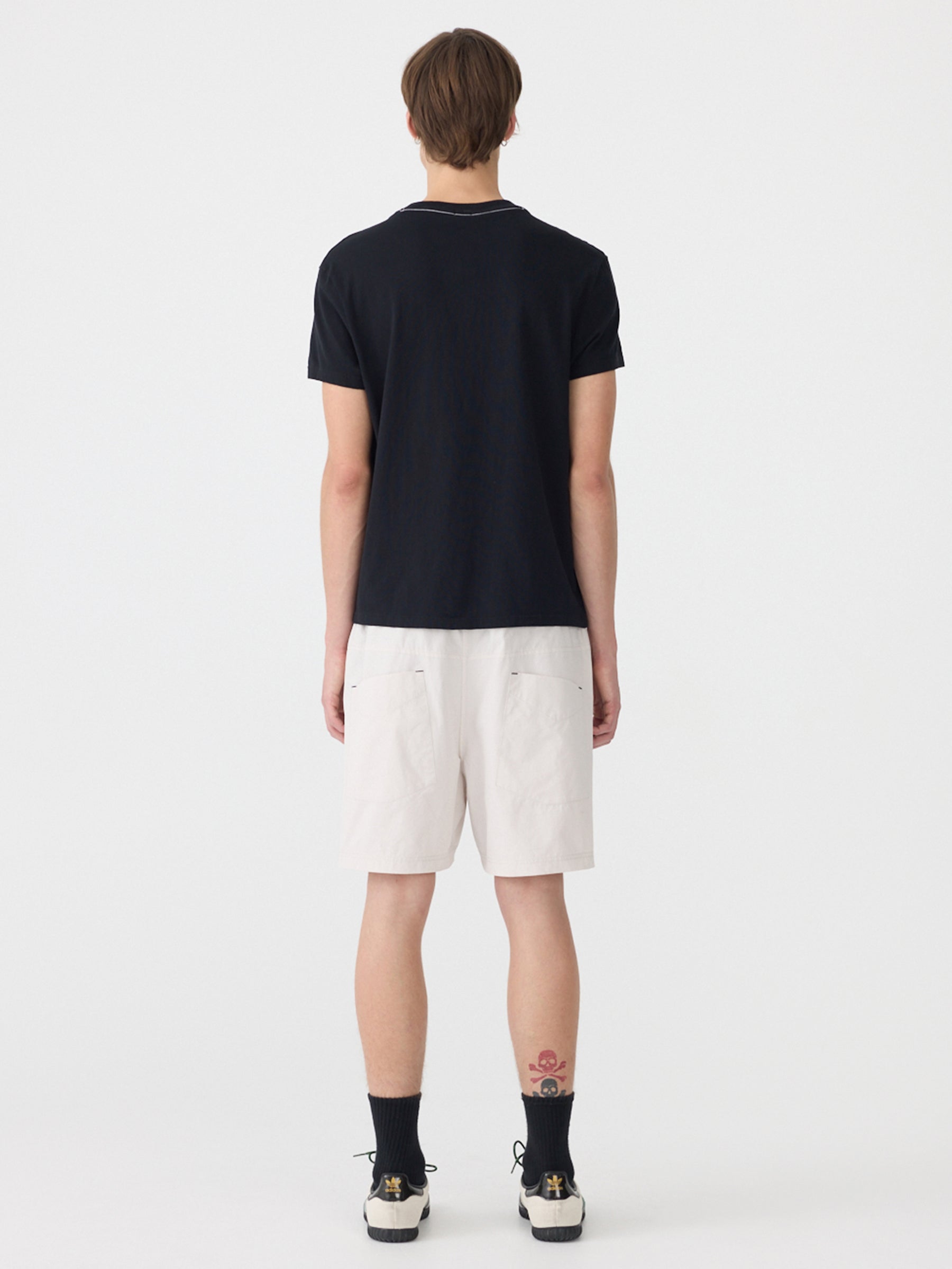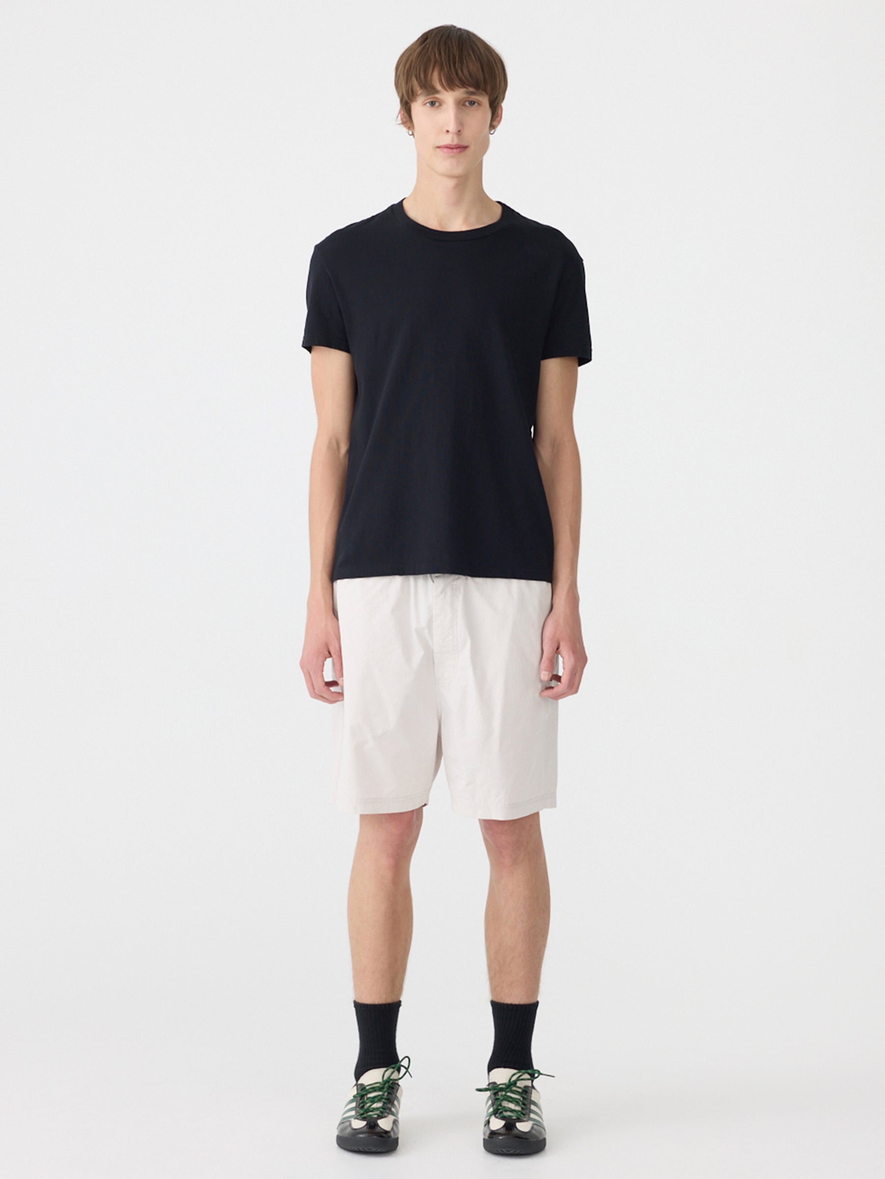 exchange or credit onlyRelaxed fit pull-on short featuring button and zip closure, with an elasticated waistband for ease. Designed with side entry pockets finished with envelope stitch detailing, a back yoke, and back patch pockets. Crafted from lightweight compact cotton with a naturally crushed look and soft hand feel.