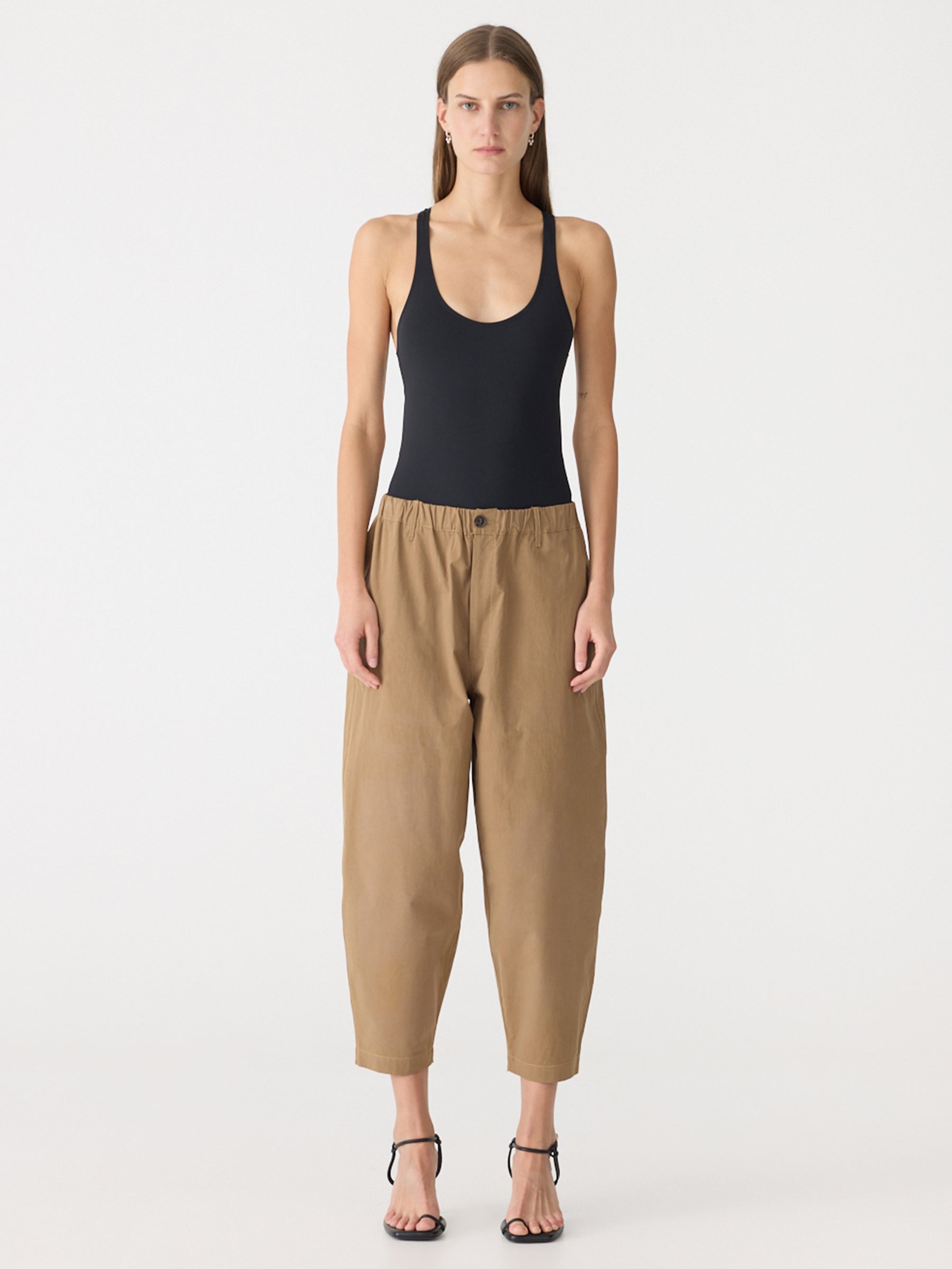 Boasting an amplified relaxed silhouette, the Crushed Cotton Summer Pant is crafted from responsibly sourced organic cotton. Boasting a pull-on design, the final garment is refined by a tapered silhouette, elasticated waistband, side and back pockets and zip fly with button detail.
