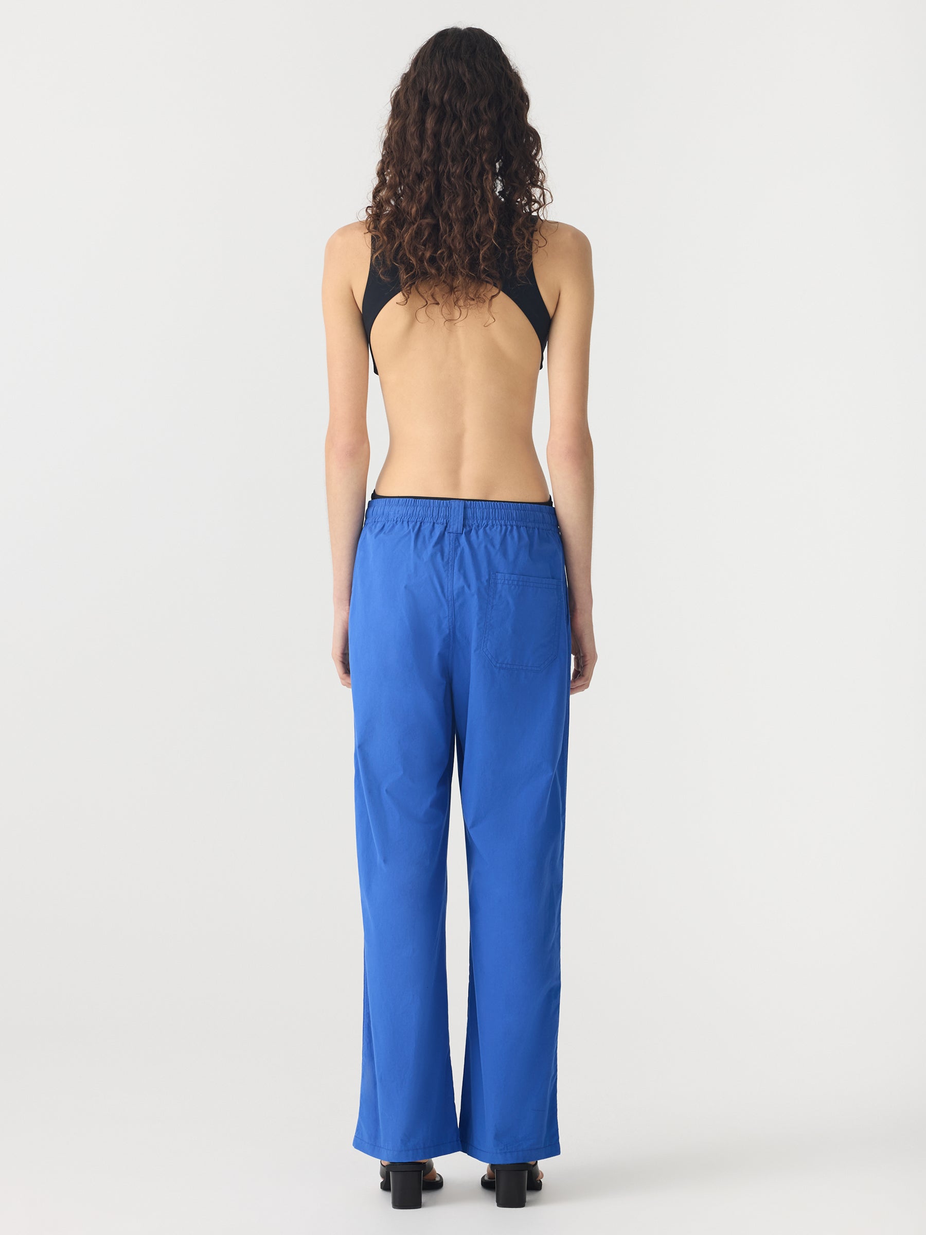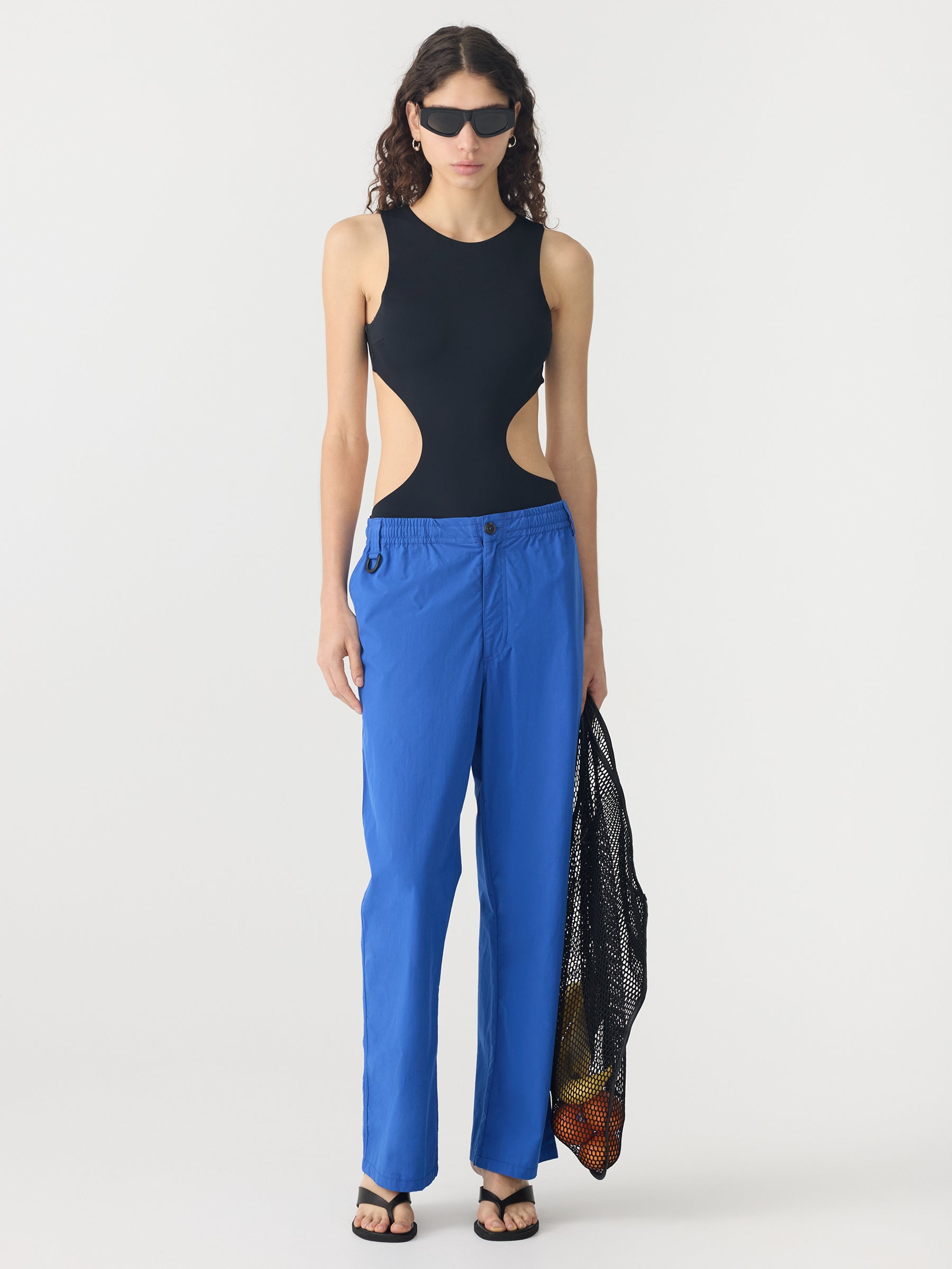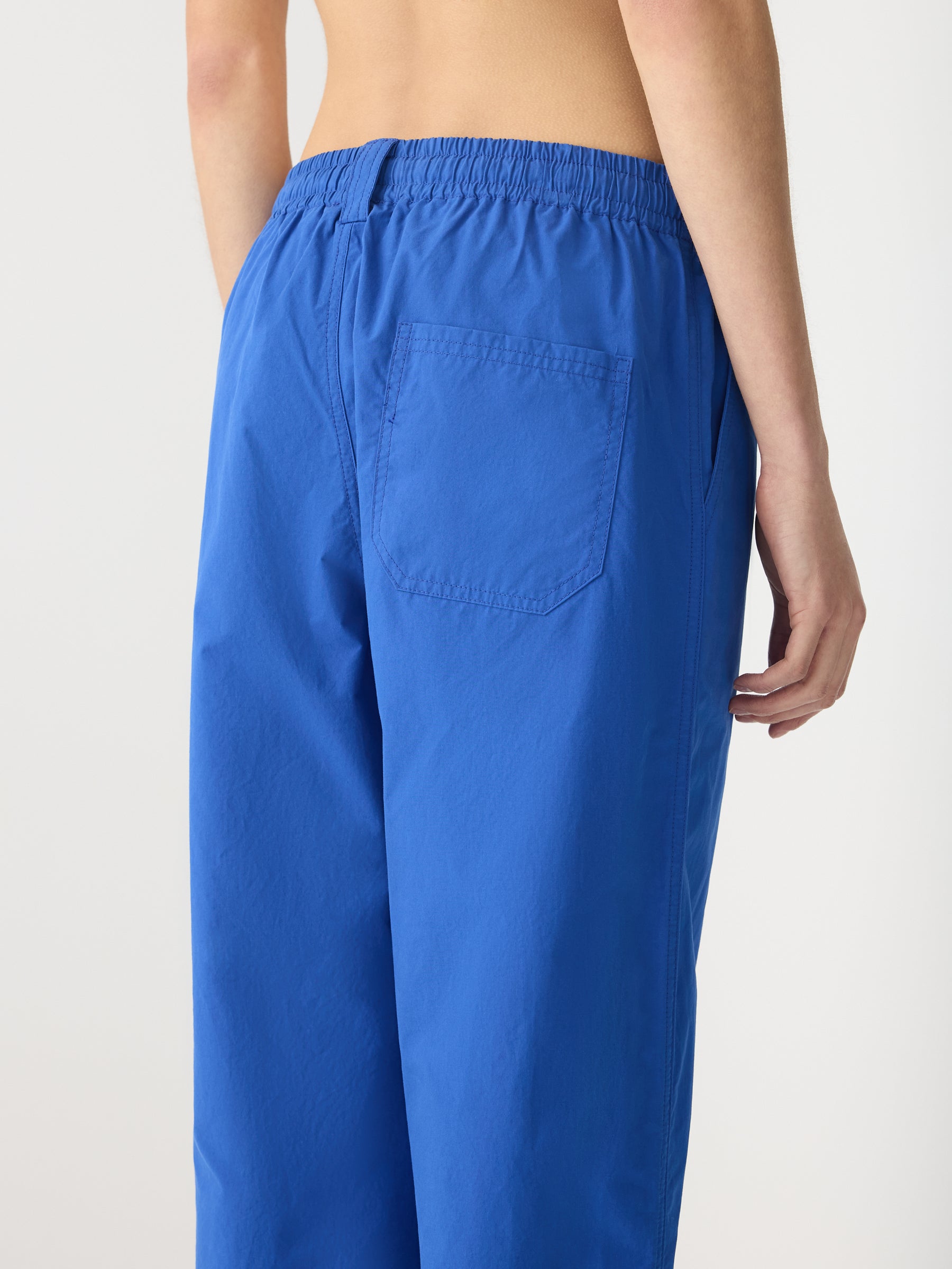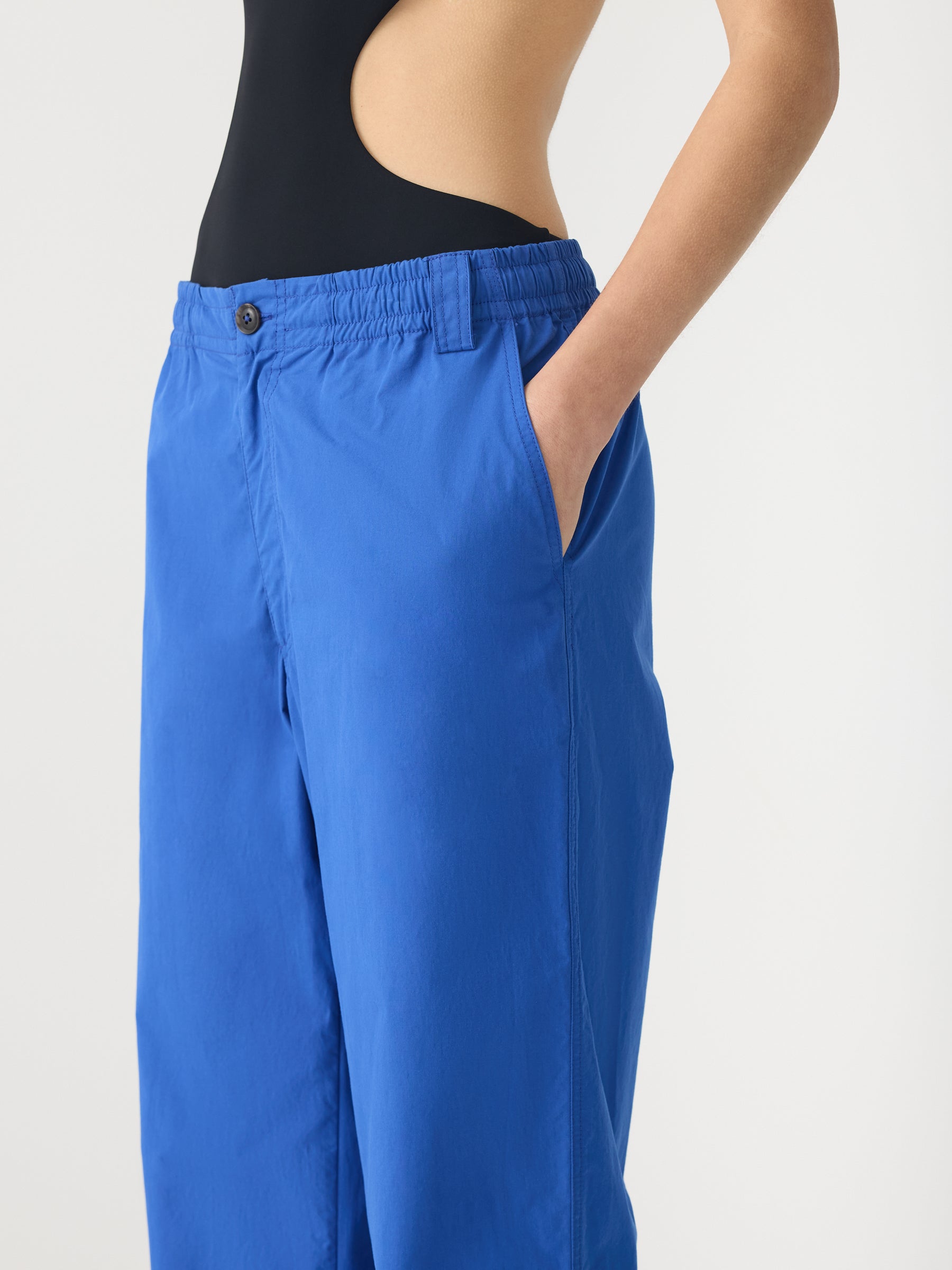 Crafted from lightweight compact cotton with a natural crushed texture, the Relaxed Pull On Pant offers an easy silhouette with subtle utility detailing. Designed with an elasticated waistband and wide belt loops, finished with slanted side pockets, a back patch pocket and a functional carabiner at the front belt loop.