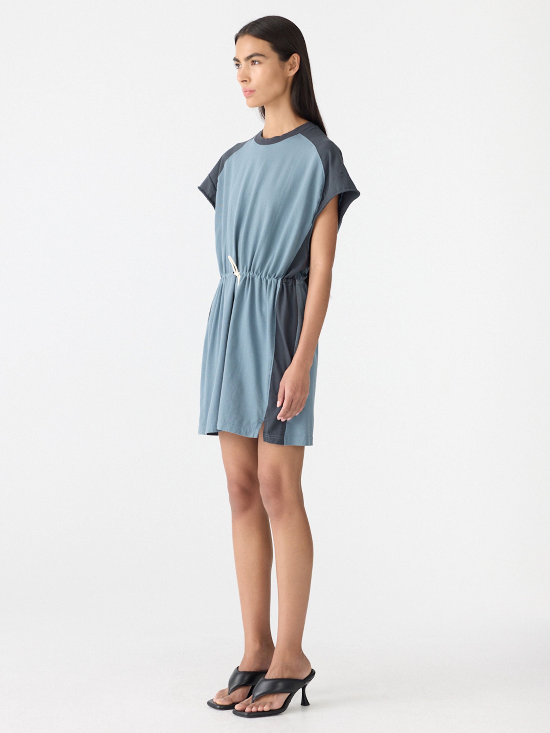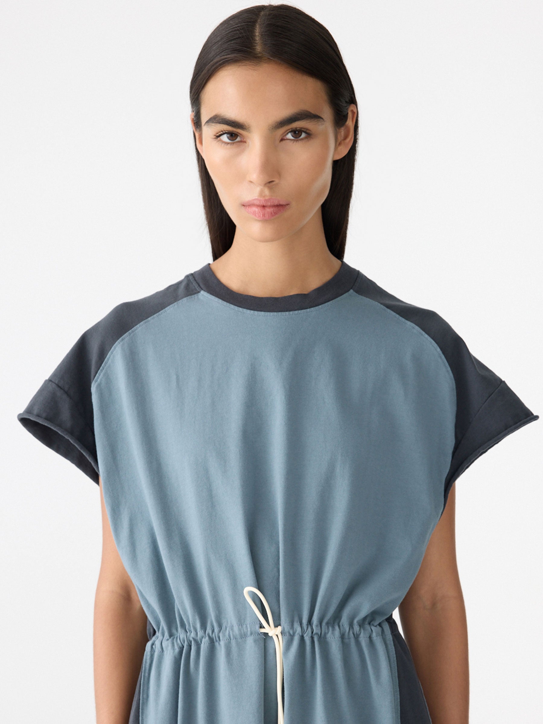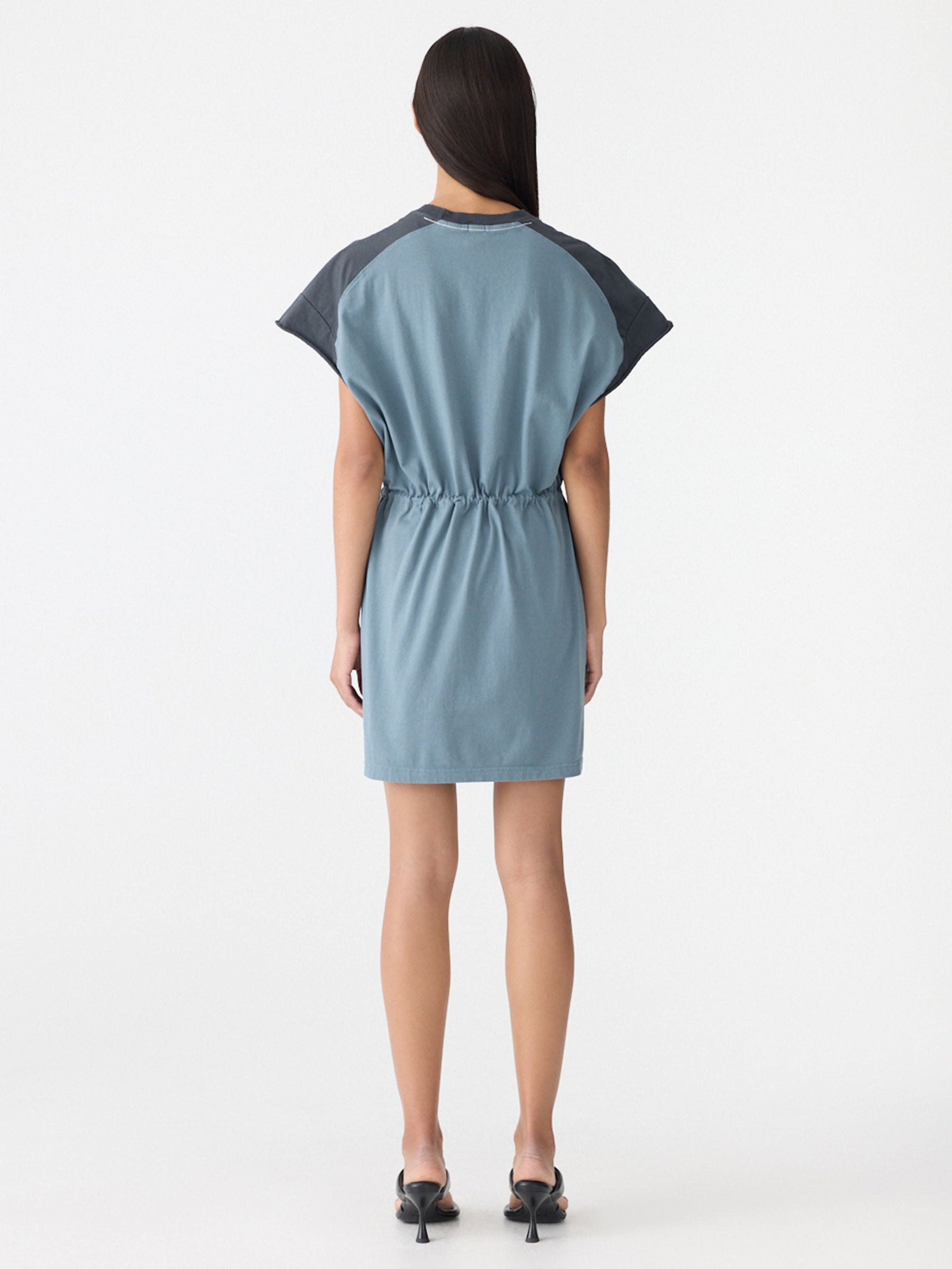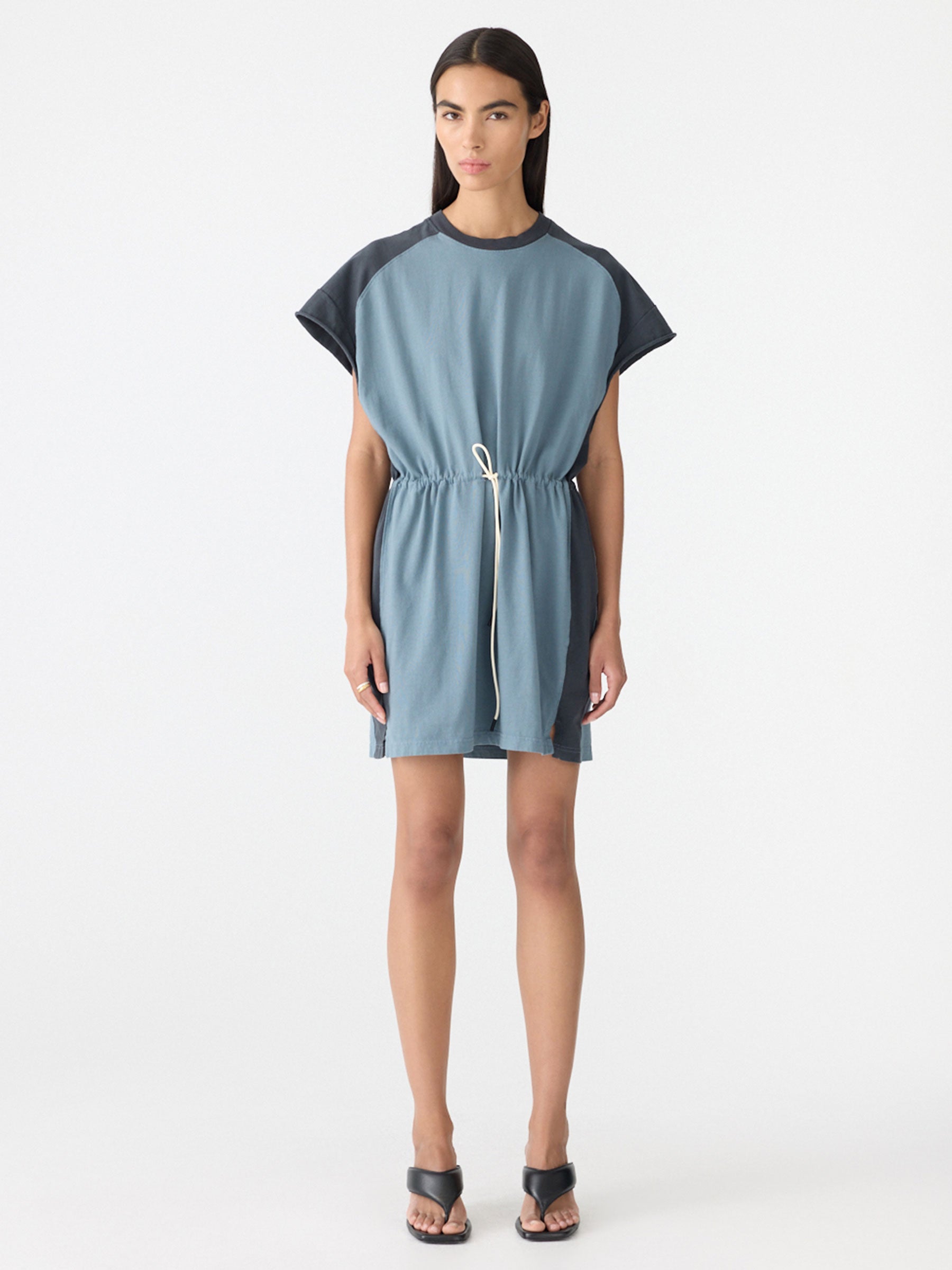 Credit or Exchange Only black fridayMid weight Elasticated Waist Tank Dress in organic cotton, featuring contrast panels on the sides, shoulders and back yoke. Designed with a raw sleeve hem and elasticated waist, finished with a clean body hem.