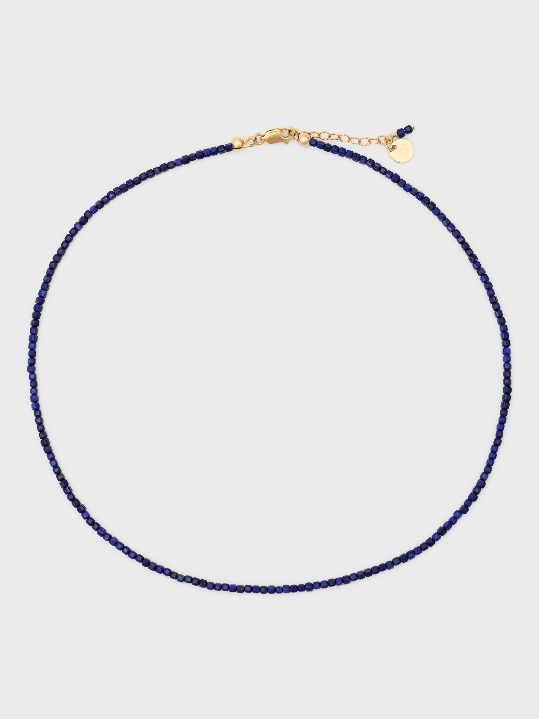 Hand-beaded in faceted Lapis, this necklace showcases naturally varied tones of deep and soft blues, highlighting the unique character of each bead. Finished with a 14k gold-filled clasp closure and crafted using ethically sourced materials. Subtle irregularities in colour and texture celebrate the natural form of the stone.
