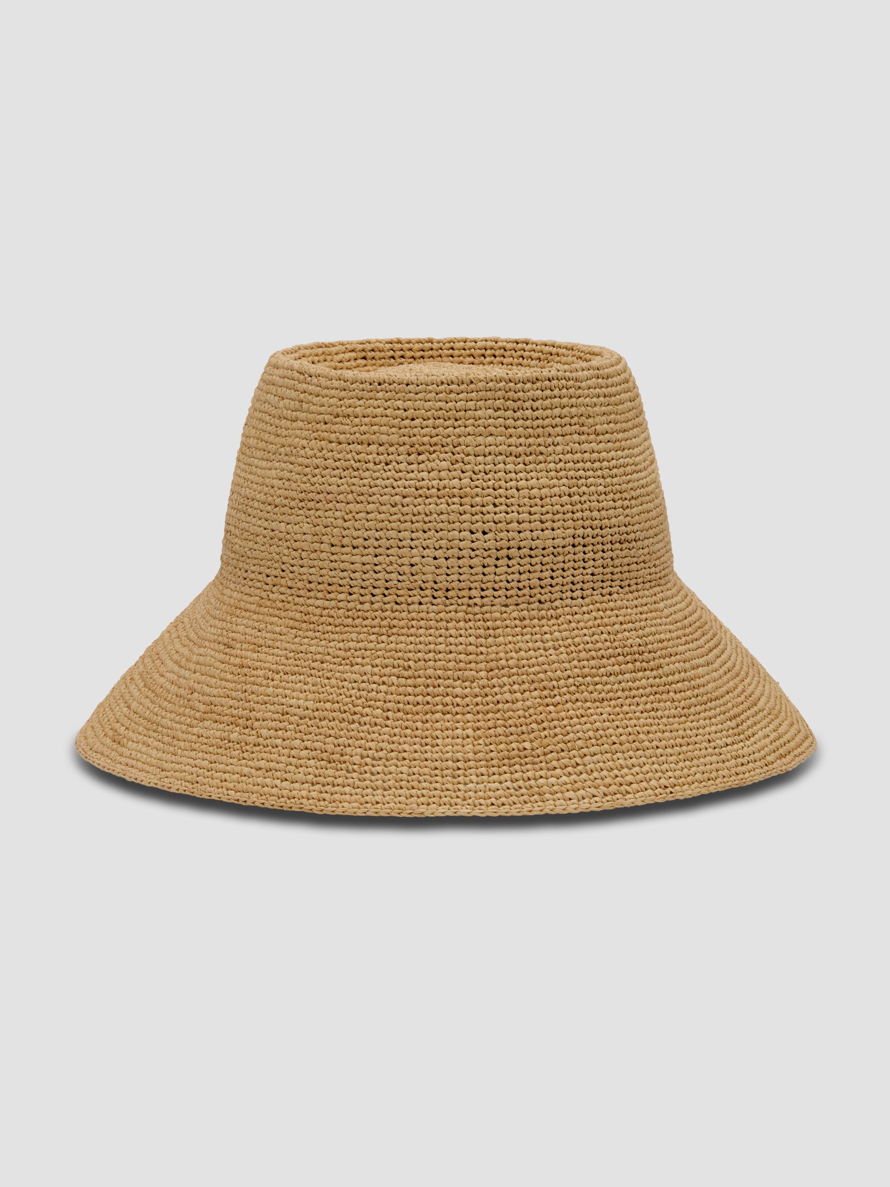 The Felix Hat by Janessa Leoné is crafted from 100% raffia straw, featuring a short-brimmed bucket silhouette that balances structure with a soft, flexible shape. Designed for effortless wear and sun protection, it embodies understated luxury and natural texture.