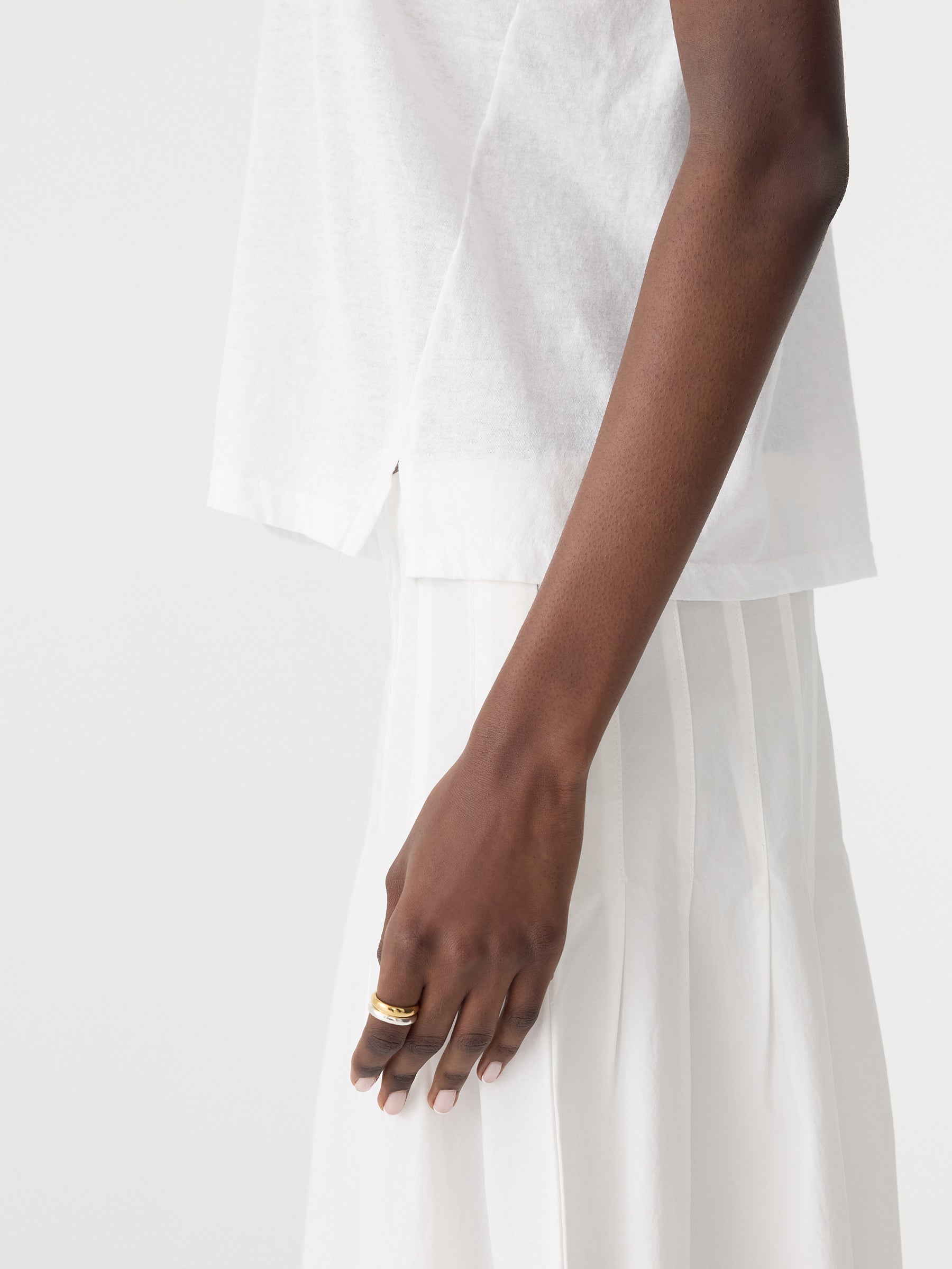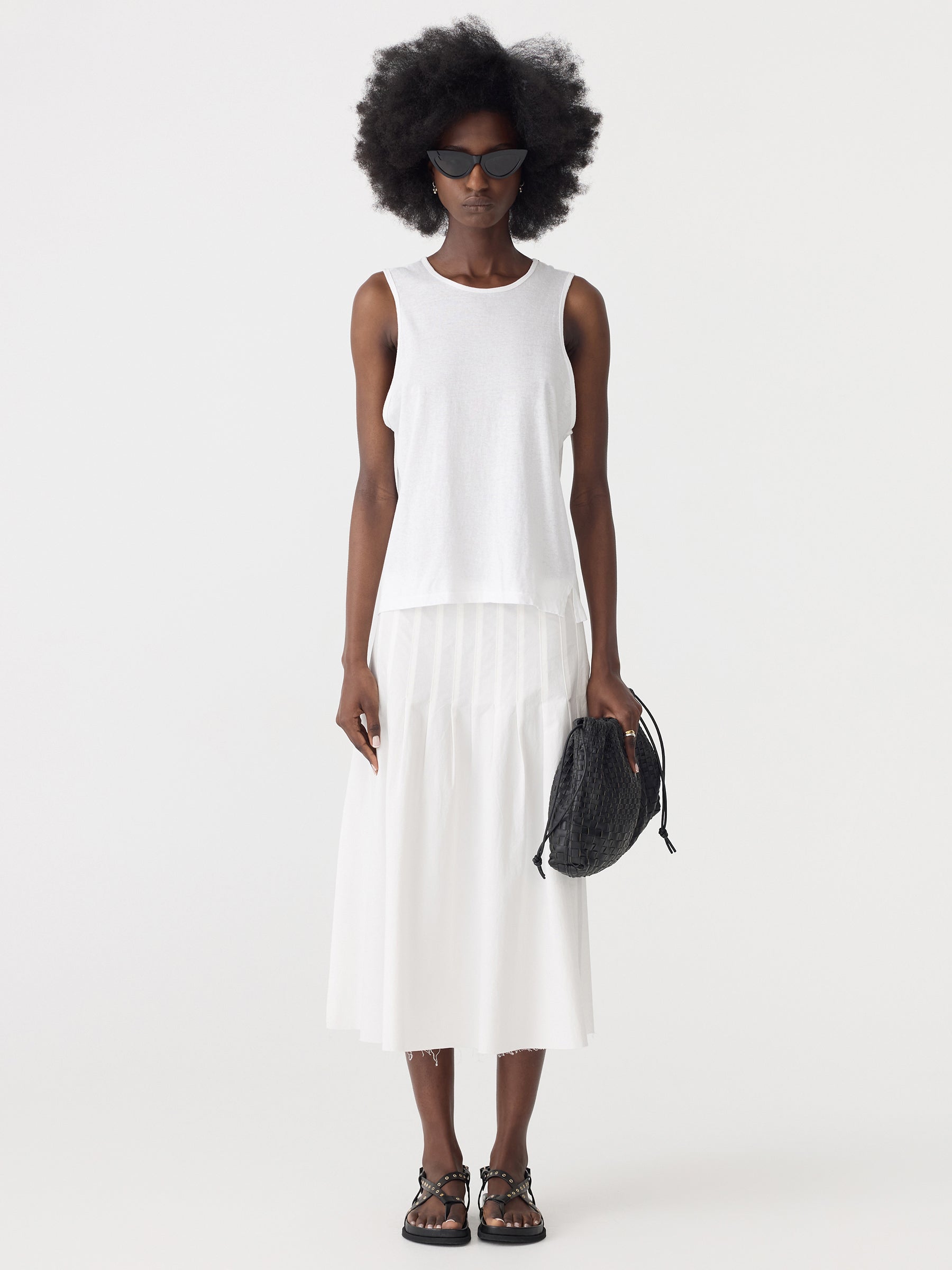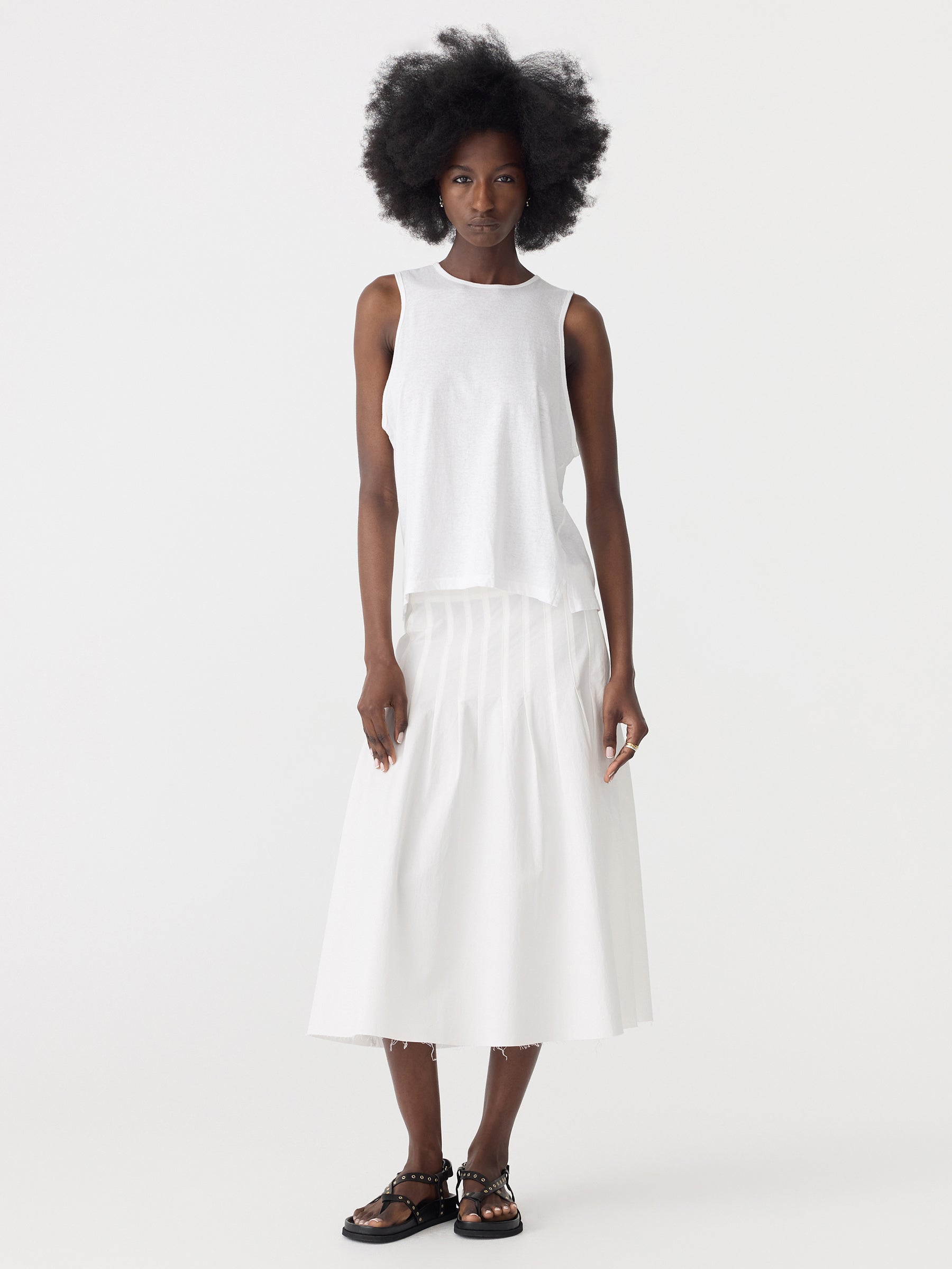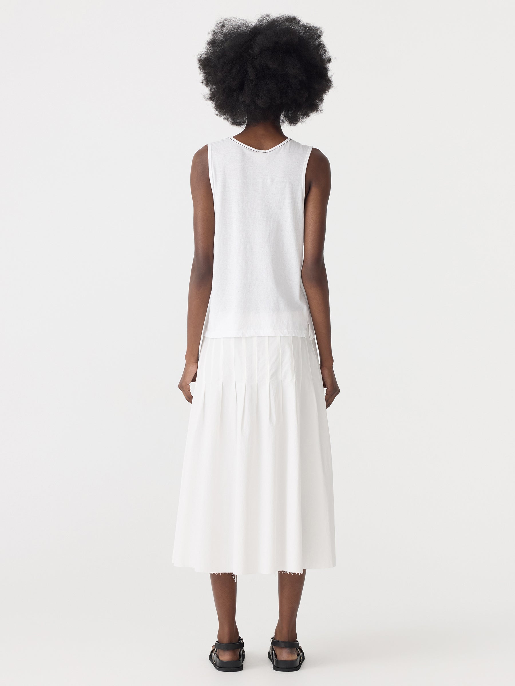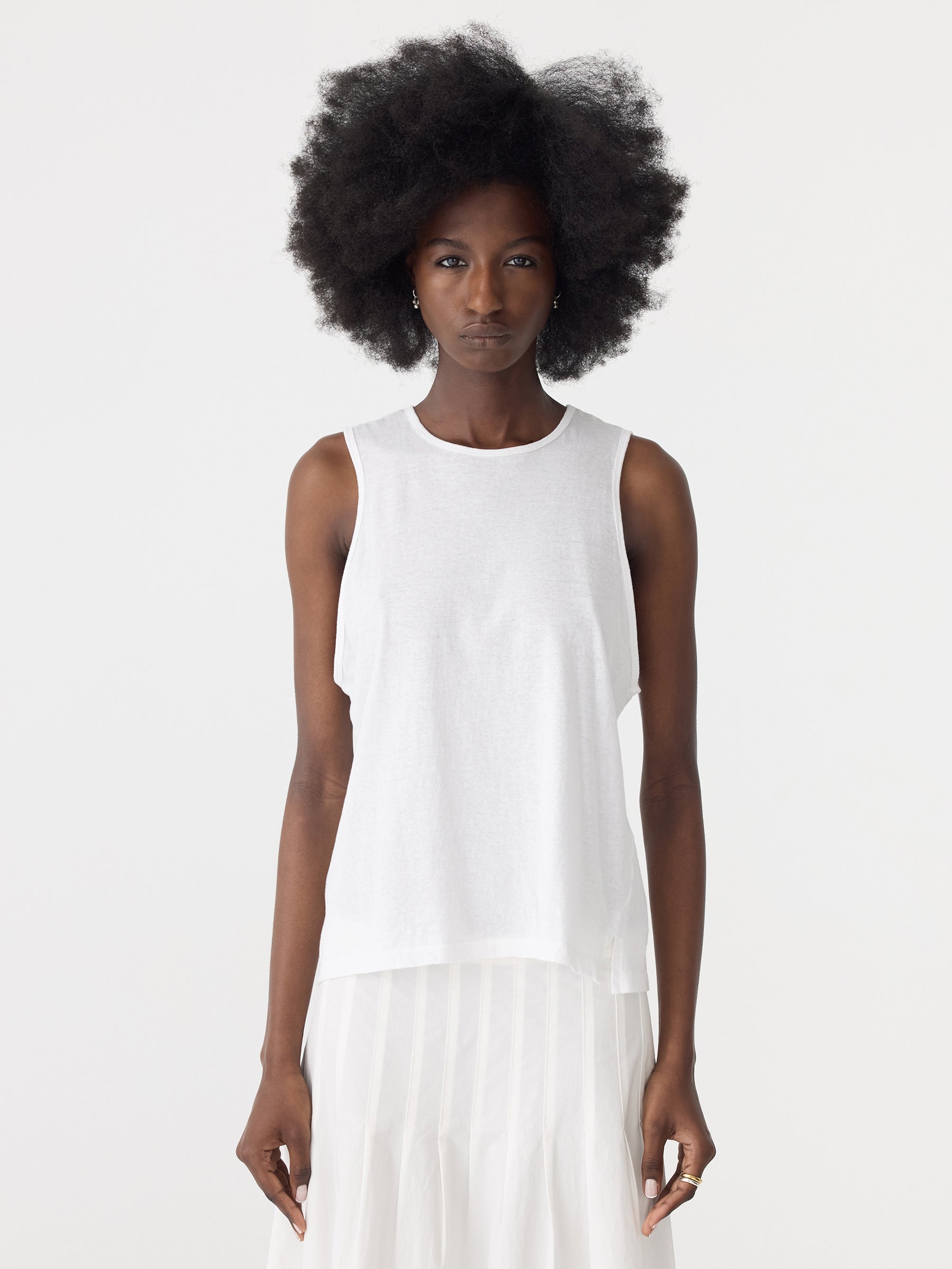 Crafted from organic cotton single jersey knitted in Australia, the Fine Bind Athletic Tank is designed with a classic straight silhouette. Featuring fine binds at the armholes and neckline, side hem splits for ease and finished with contrast chainstitch detail at the back.