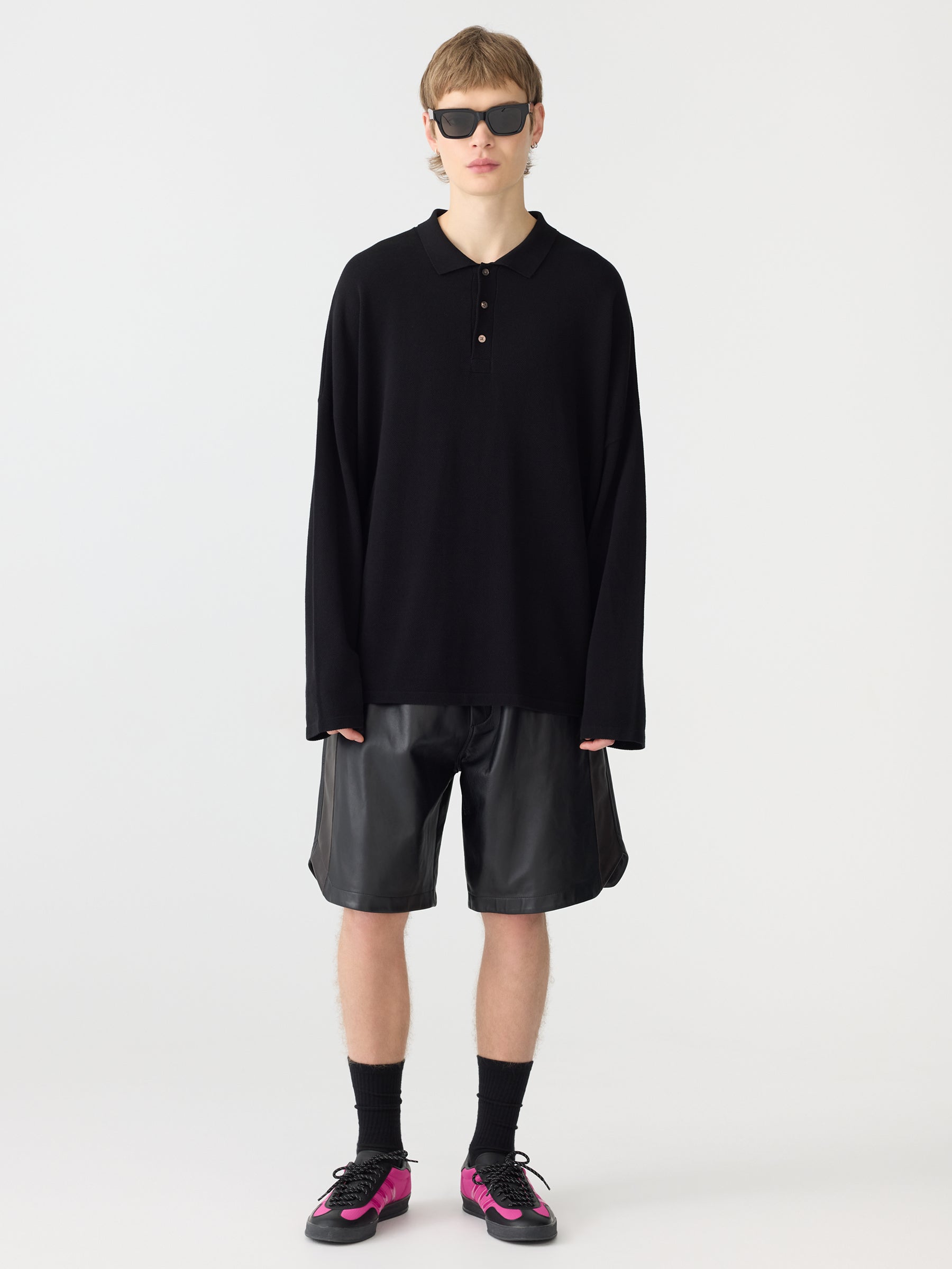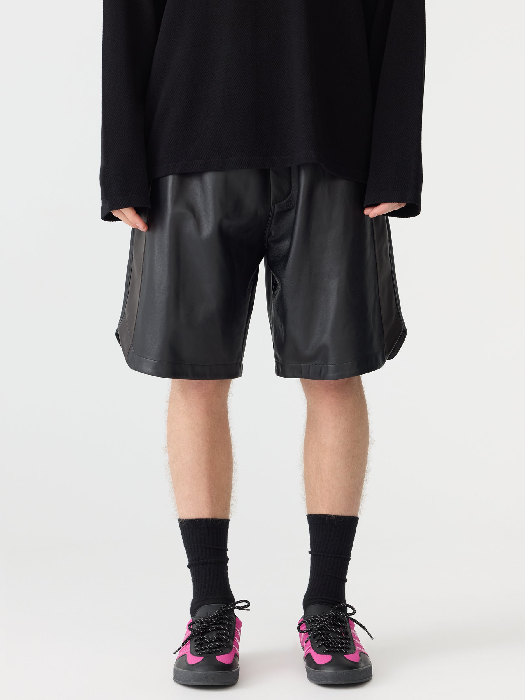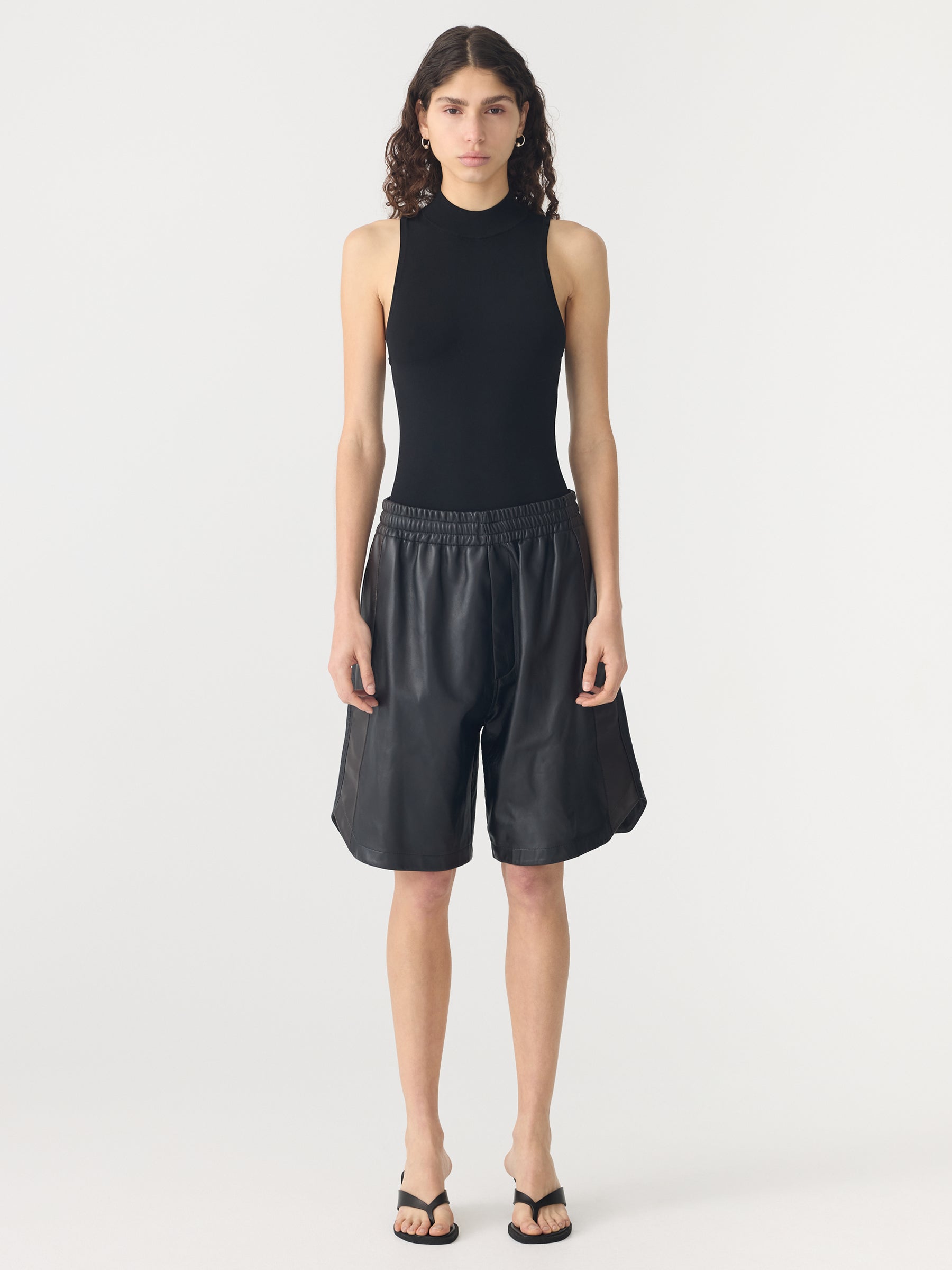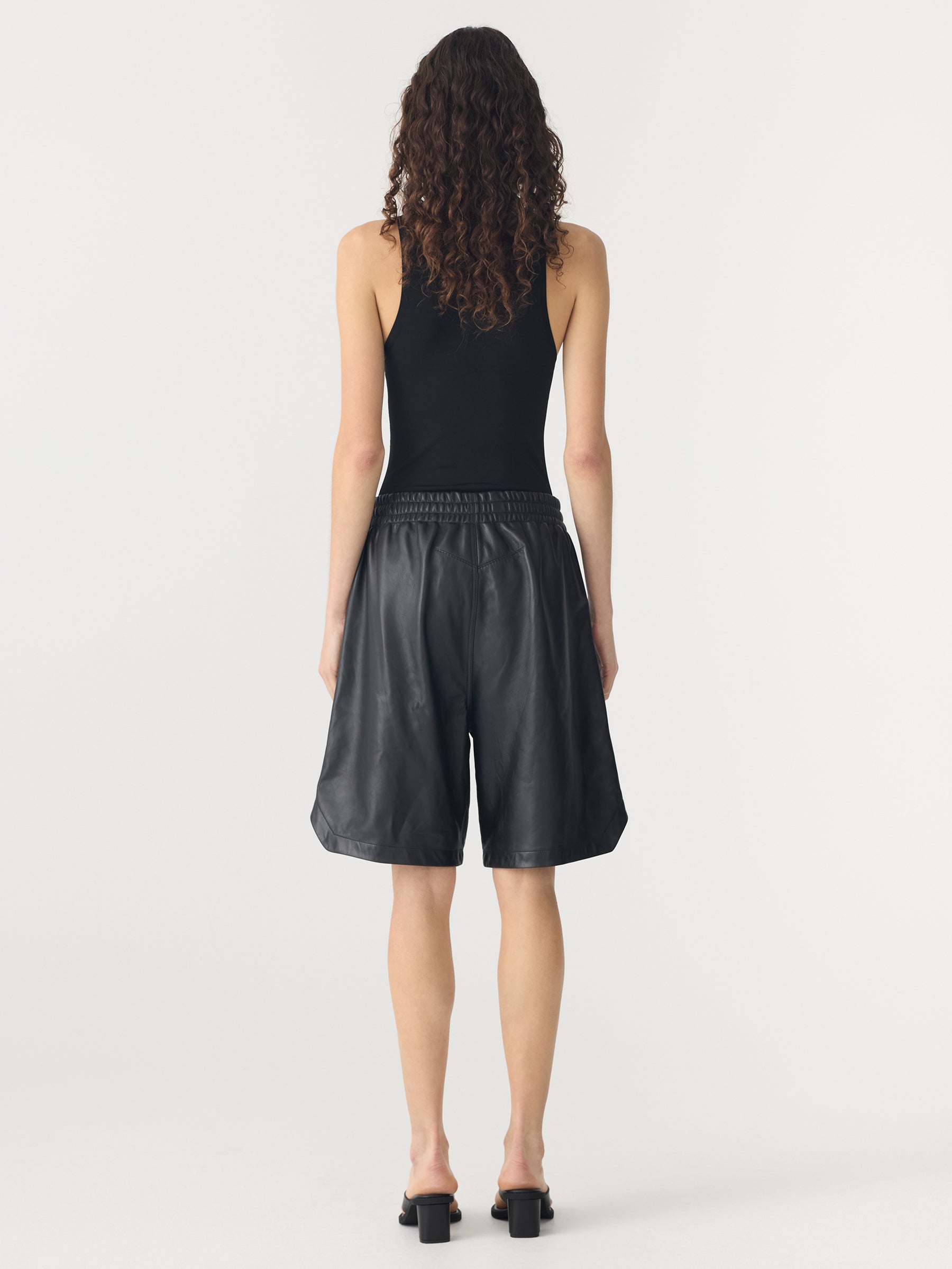 Basketball-inspired short crafted from smooth leather, designed with a relaxed fit and elasticated waistband. Finished with side entry pockets and subtle panel detailing for ease of movement. Leather offers a structured yet supple hand feel with a natural drape.