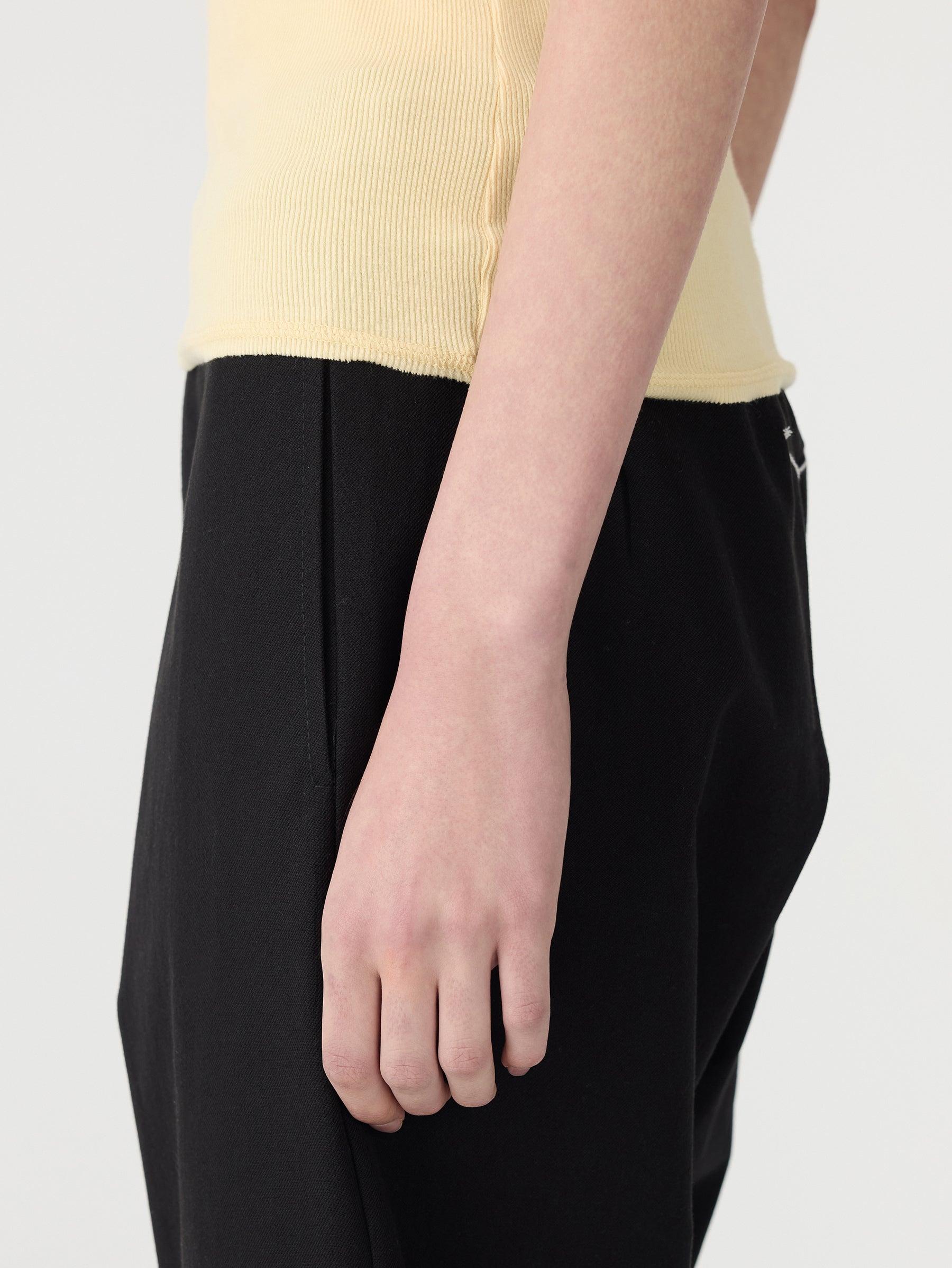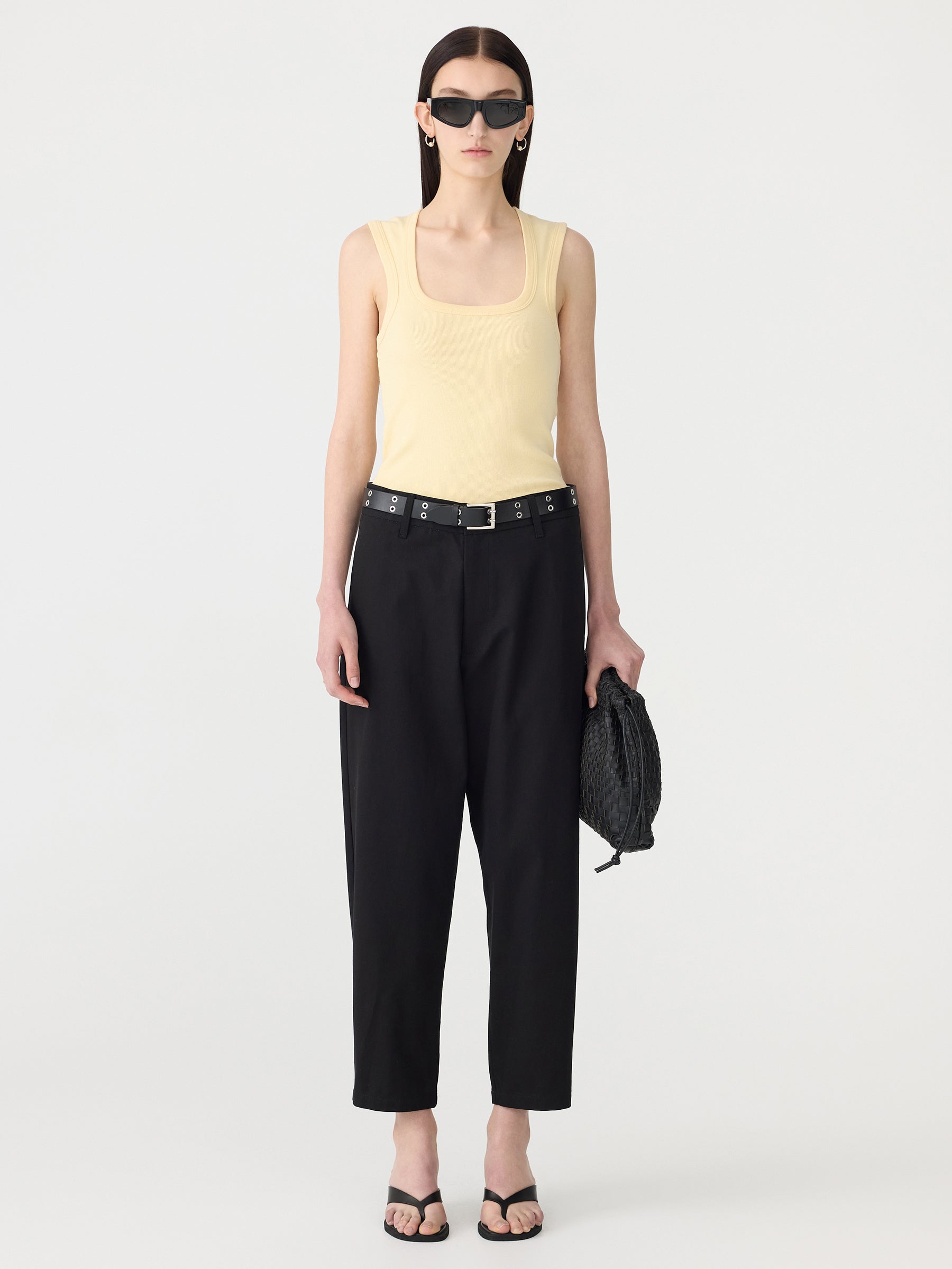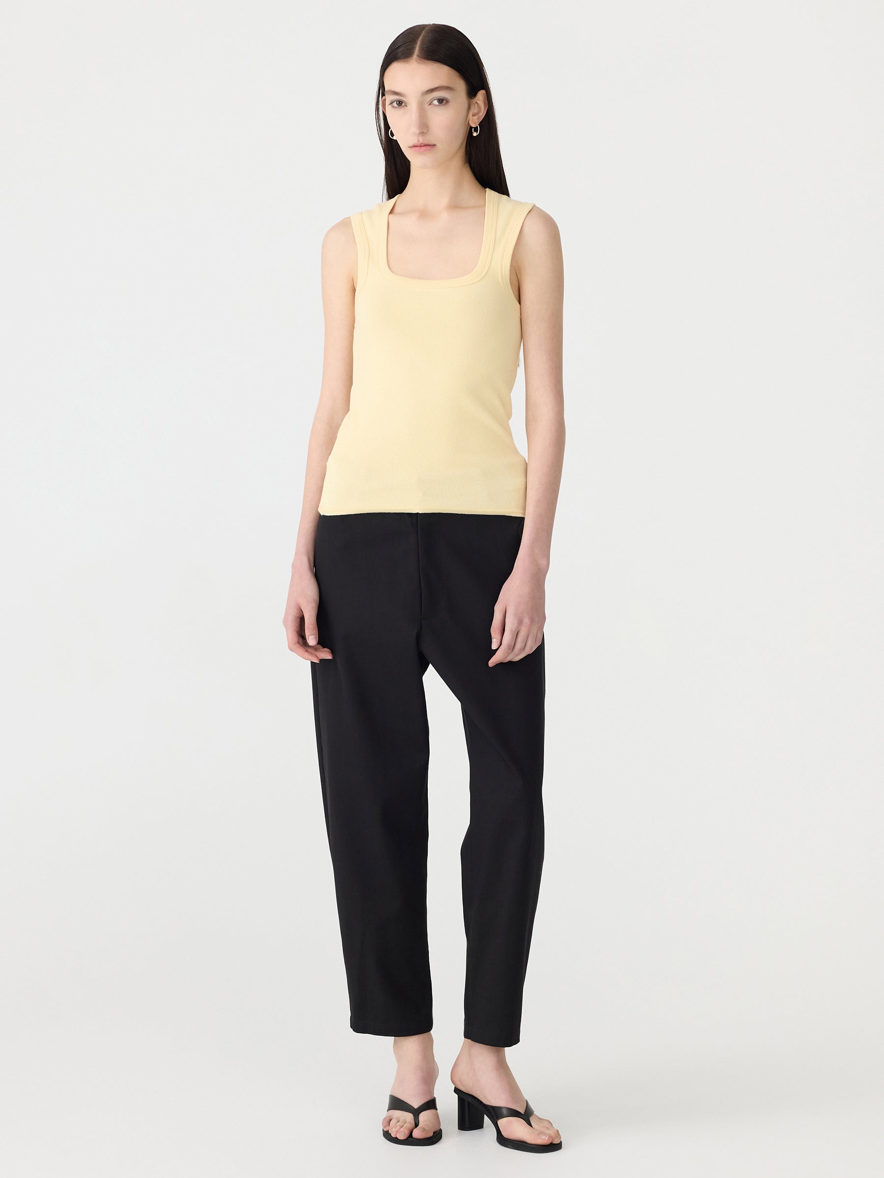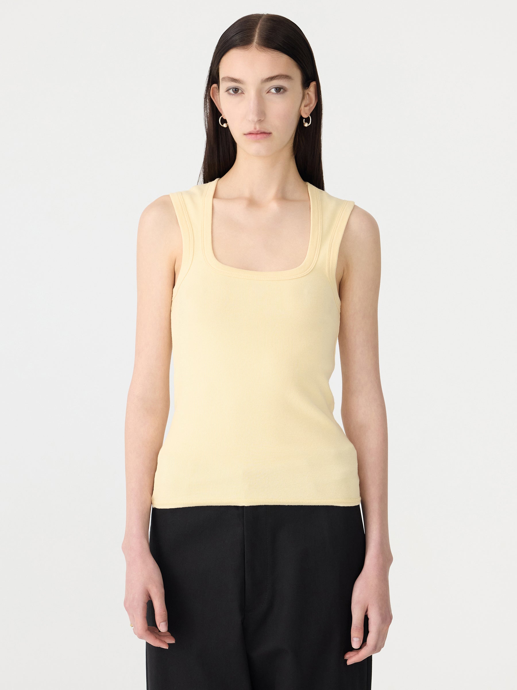 Credit or Exchange OnlyA new classic crafted in a premium organic cotton elastane rib, the Low Scooped Rib Tank is designed as a foundational wardrobe element. The garment boasts a slim-fit design, sleeveless silhouette and square scooped neckline with wide straps. Finished with a raw body hem finished with cover-stitch detail. Framed by armholes and neckline in organic cotton rib bind. Distinguished by signature Bassike contrast topstitching at back.