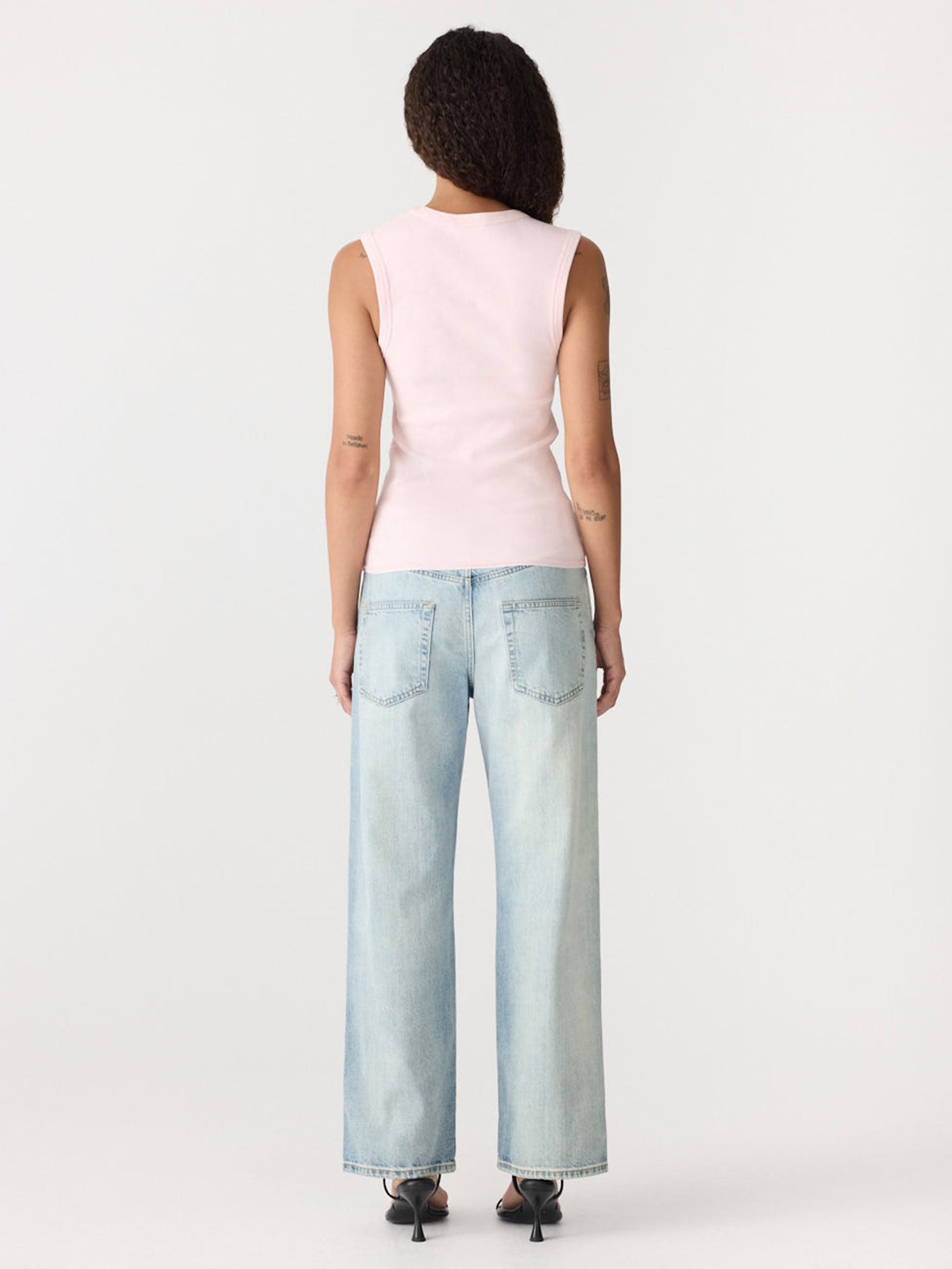 A new classic crafted in a premium organic cotton elastane rib, the Low Scooped Rib Tank is designed as a foundational wardrobe element. The garment boasts a slim-fit design, sleeveless silhouette and square scooped neckline with wide straps. Finished with a raw body hem finished with cover-stitch detail. Framed by armholes and neckline in organic cotton rib bind. Distinguished by signature Bassike contrast topstitching at back.