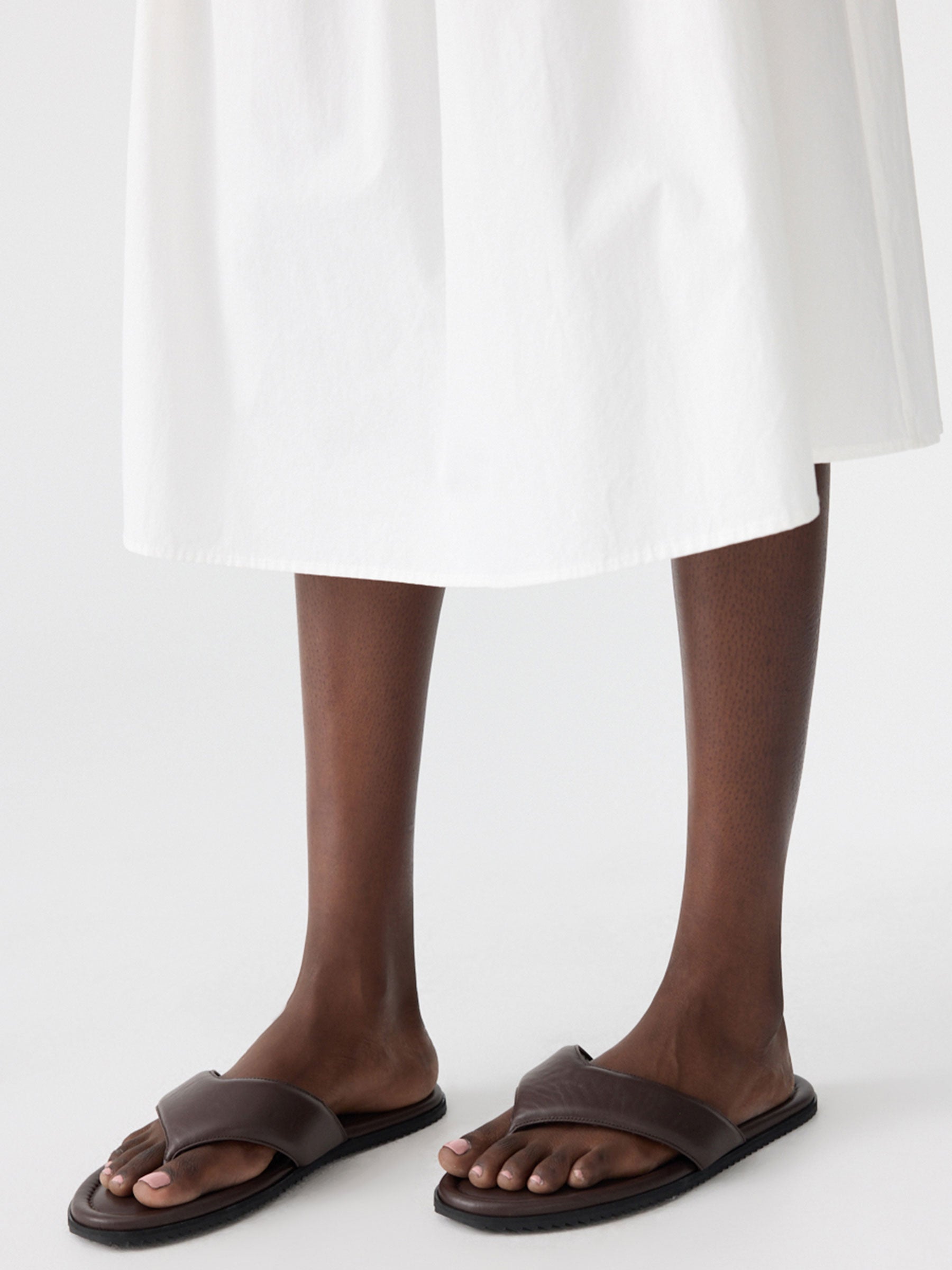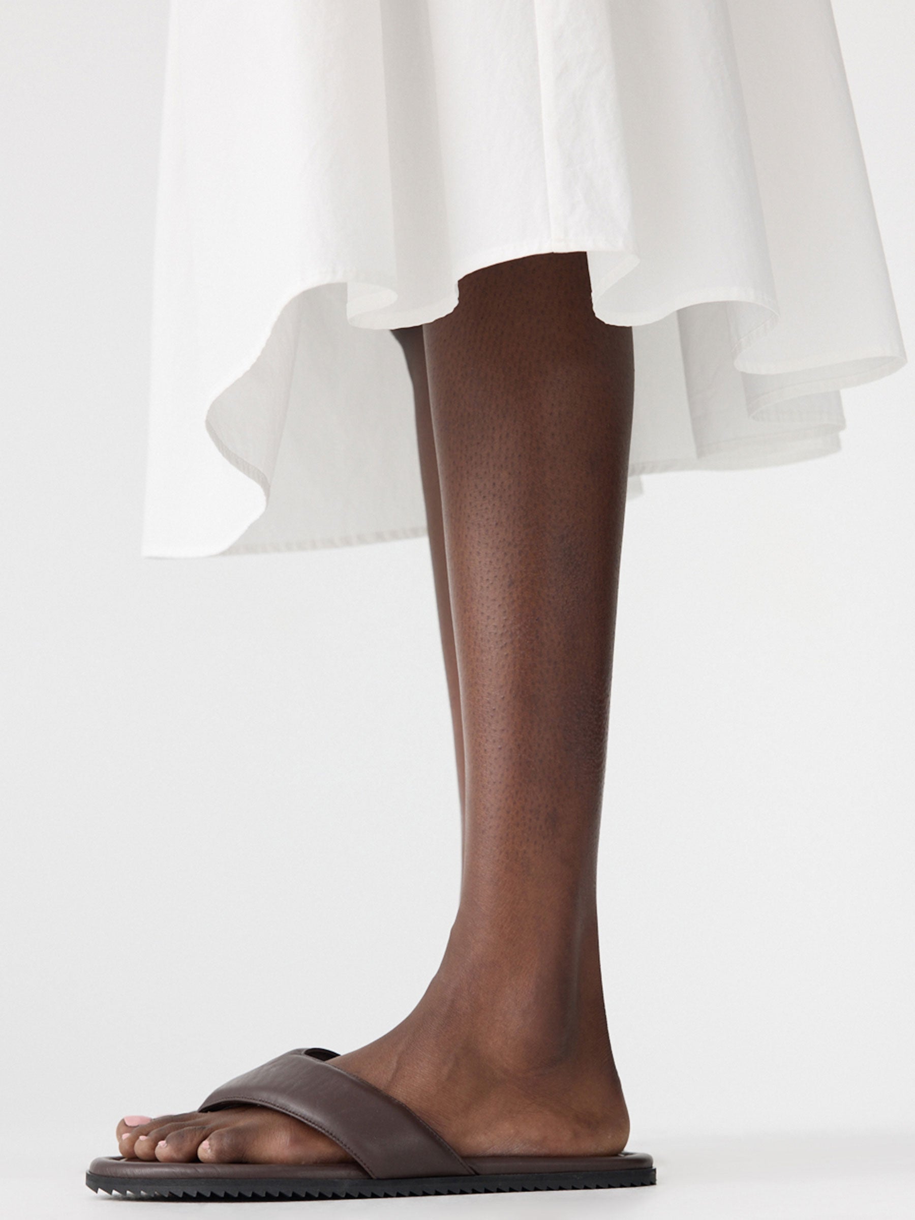 A refined slide crafted with a padded sole and soft padded upper for comfort. Detailed with fine edge pin-stitching across the upper and thick cotton stitching along the sole. Designed for a lightweight feel and effortless wear.