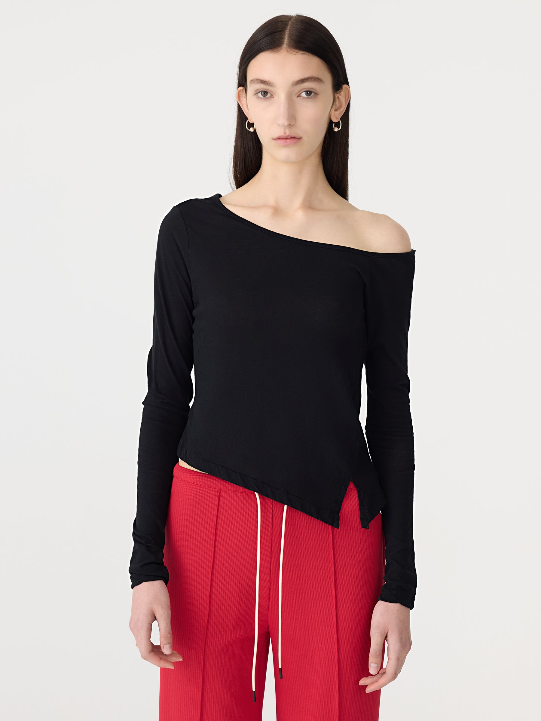 exchange onlyAn elevated take on signature dressing, the Off Shoulder Jersey Long Sleeve Top is designed for a slim fit with an off-shoulder neckline. Crafted from organic cotton single jersey knitted in Australia, this long sleeve style features an asymmetric hem with side splits and internal hang tape at the shoulder for ease of hanging.