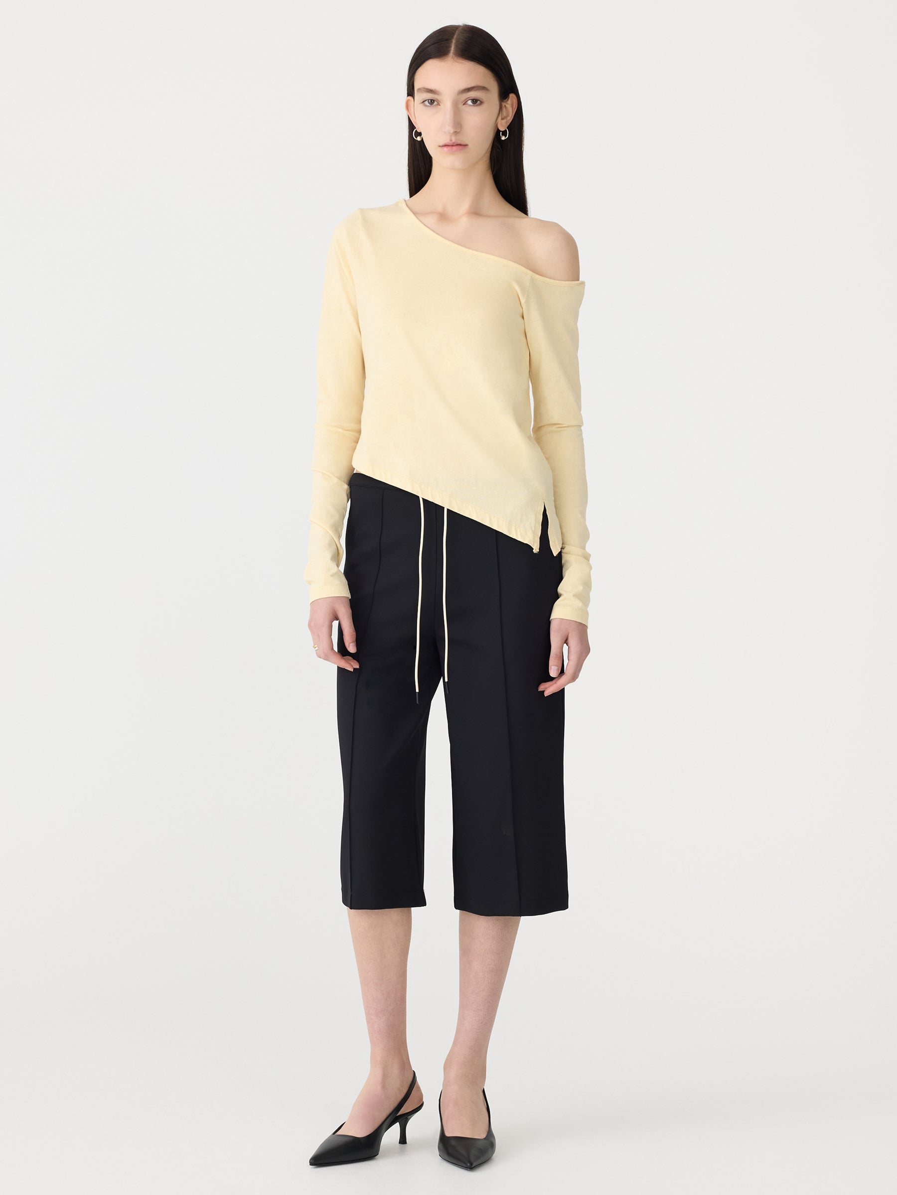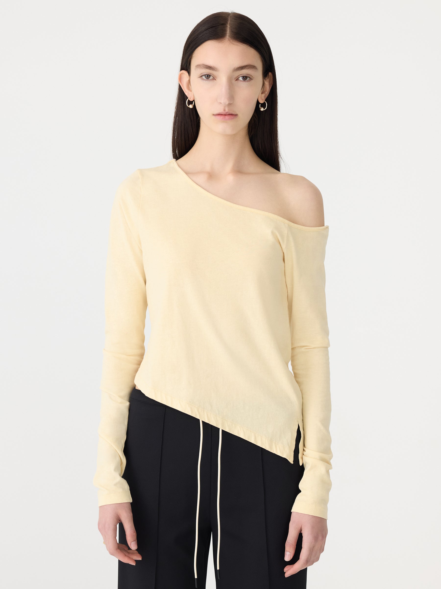 An elevated take on signature dressing, the Off Shoulder Jersey Long Sleeve Top is designed for a slim fit with an off-shoulder neckline. Crafted from organic cotton single jersey knitted in Australia, this long sleeve style features an asymmetric hem with side splits and internal hang tape at the shoulder for ease of hanging.
