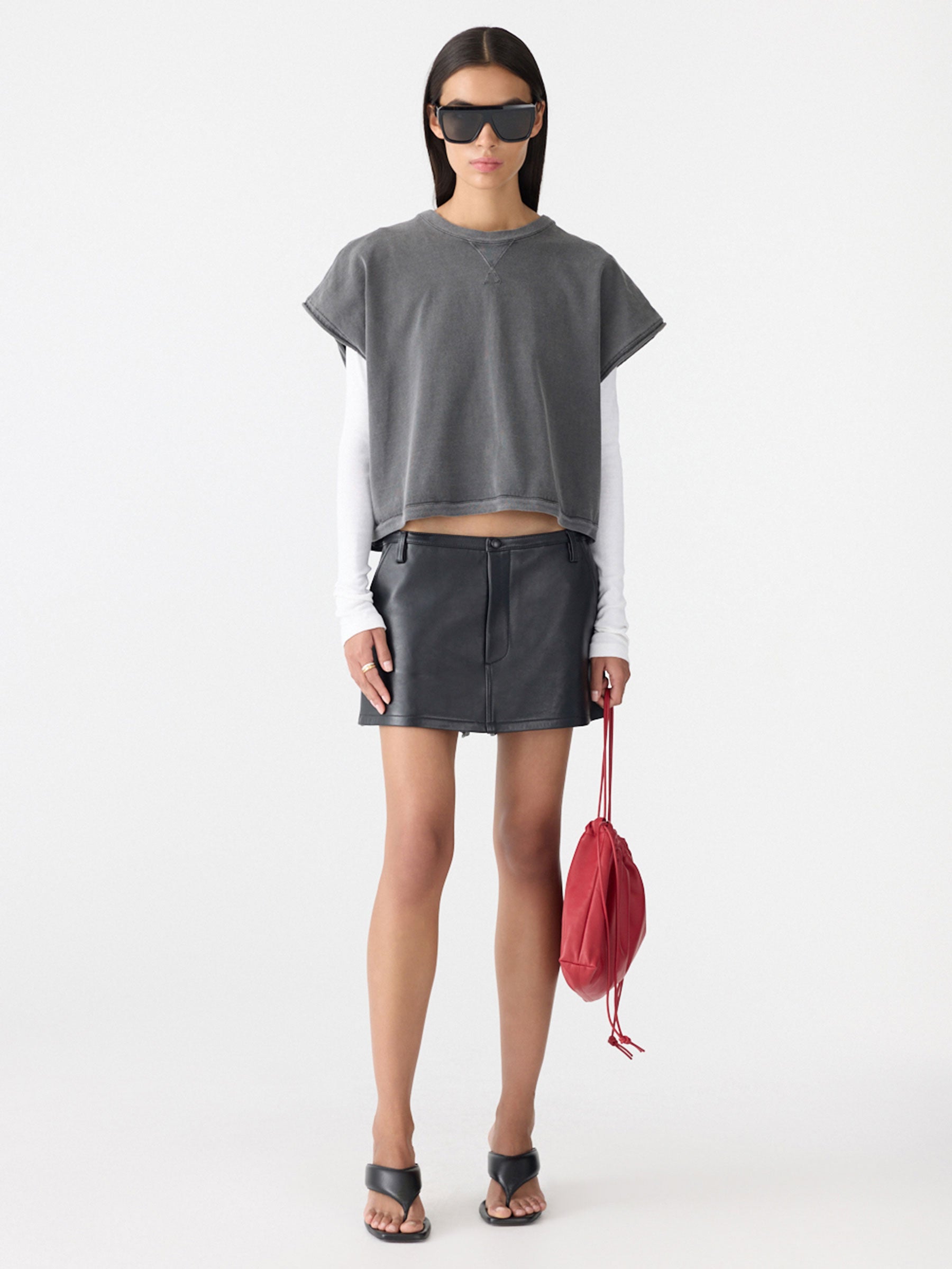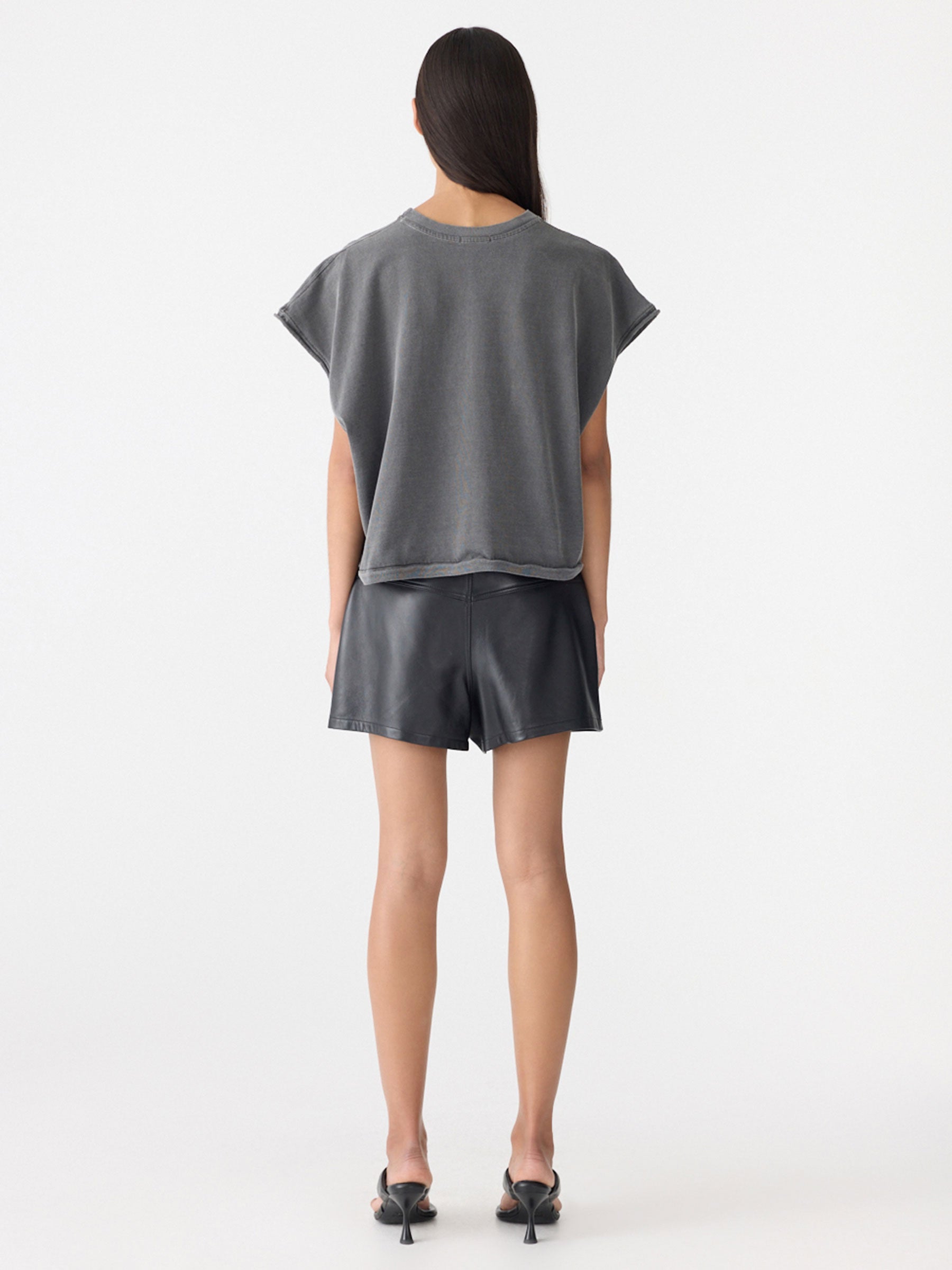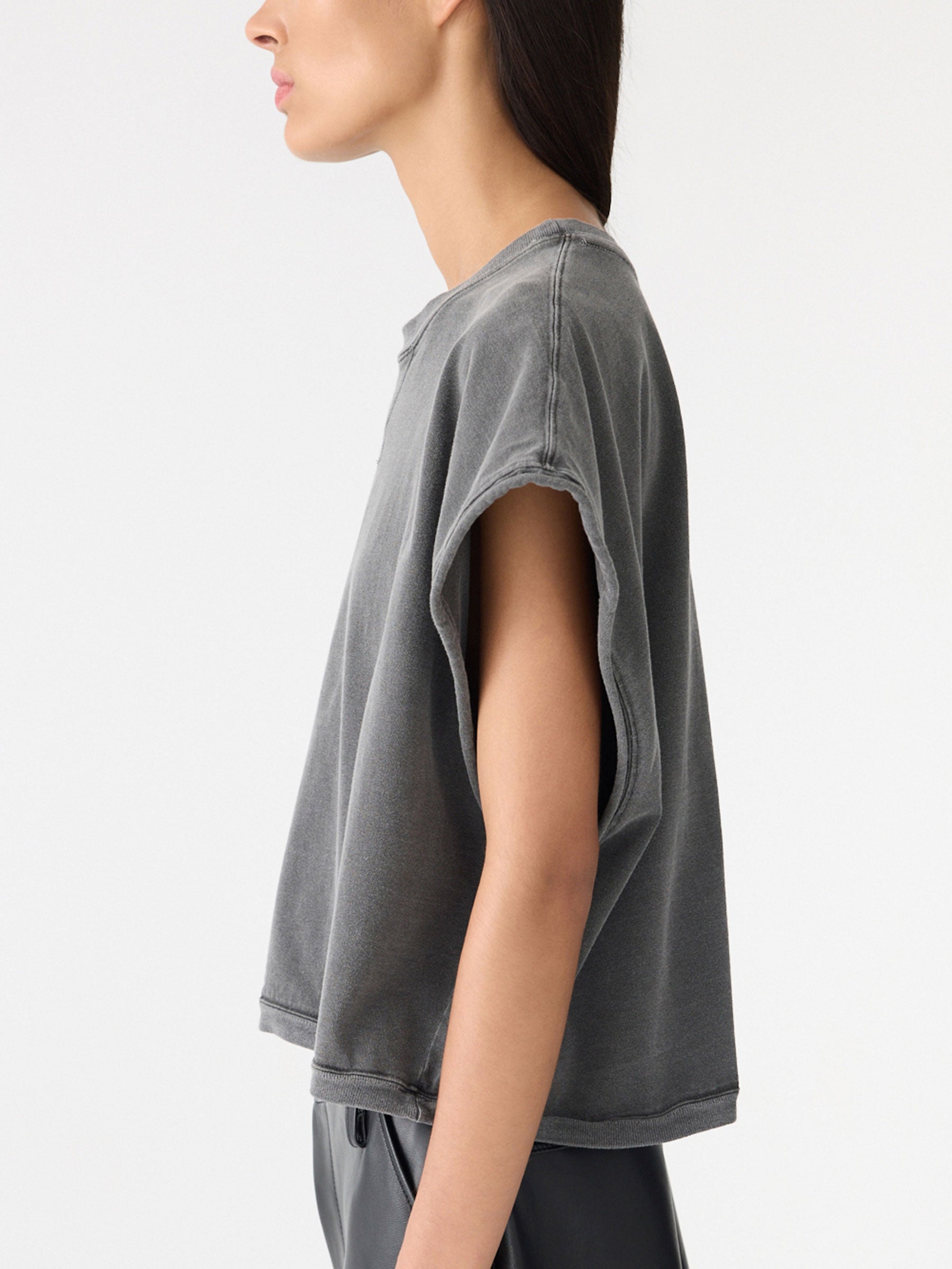 Credit or Exchange Only black fridayThe Pigment Boxy Cut Off Tank is crafted from locally hand-pigment-dyed cotton for a soft, lived-in feel. Designed in a slouch fit, it features raw-cut sleeves and a centre front rib V insert with cover-stitch detailing.
