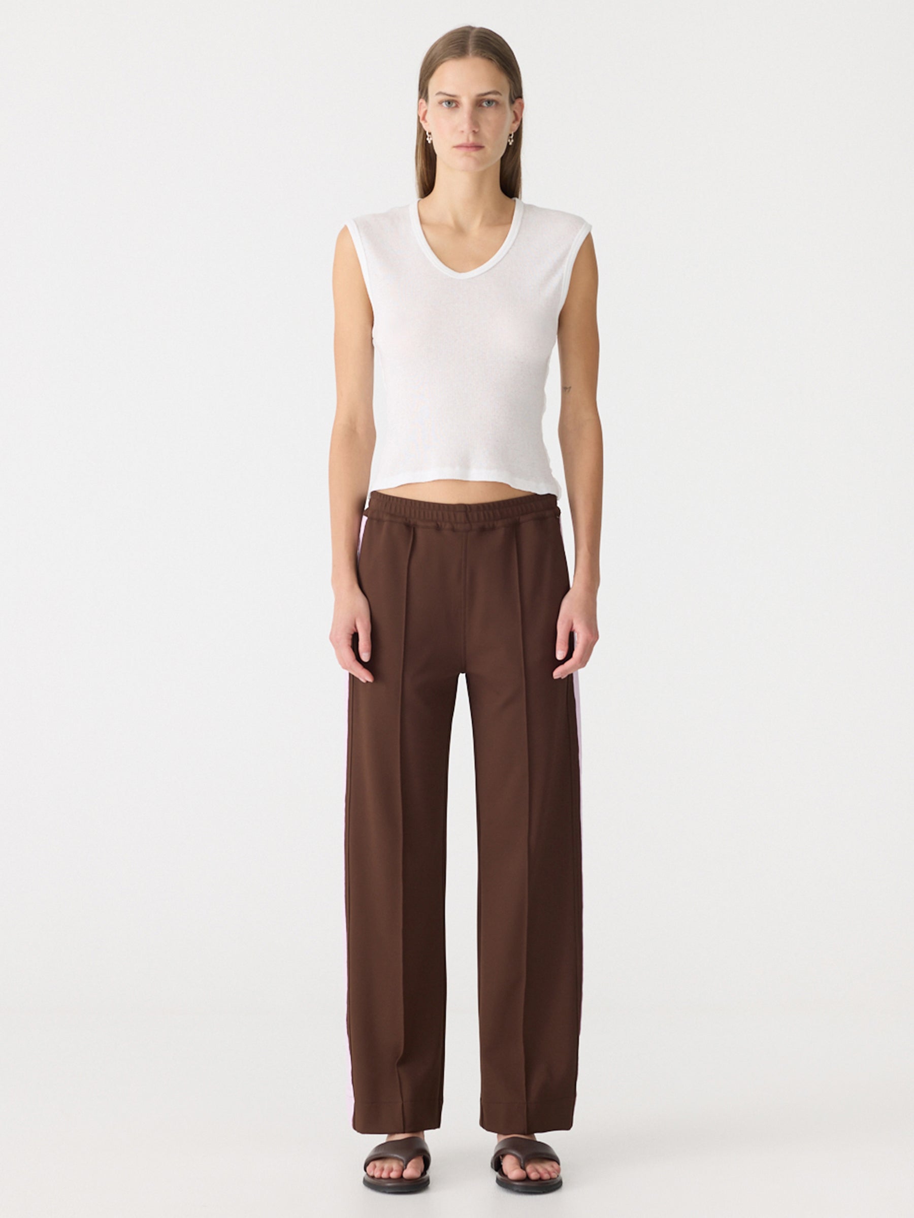Crafted from a premium nylon-elastane blend, the Pique Stripe Detail Pant is designed for a regular fit with a slightly wide leg. A signature athletic style, this pull-on pant features contrast side panel detailing, inseam side entry pockets and pintuck stitching down the front. Finished with Bassike’s signature contrast topstitching at the centre back.