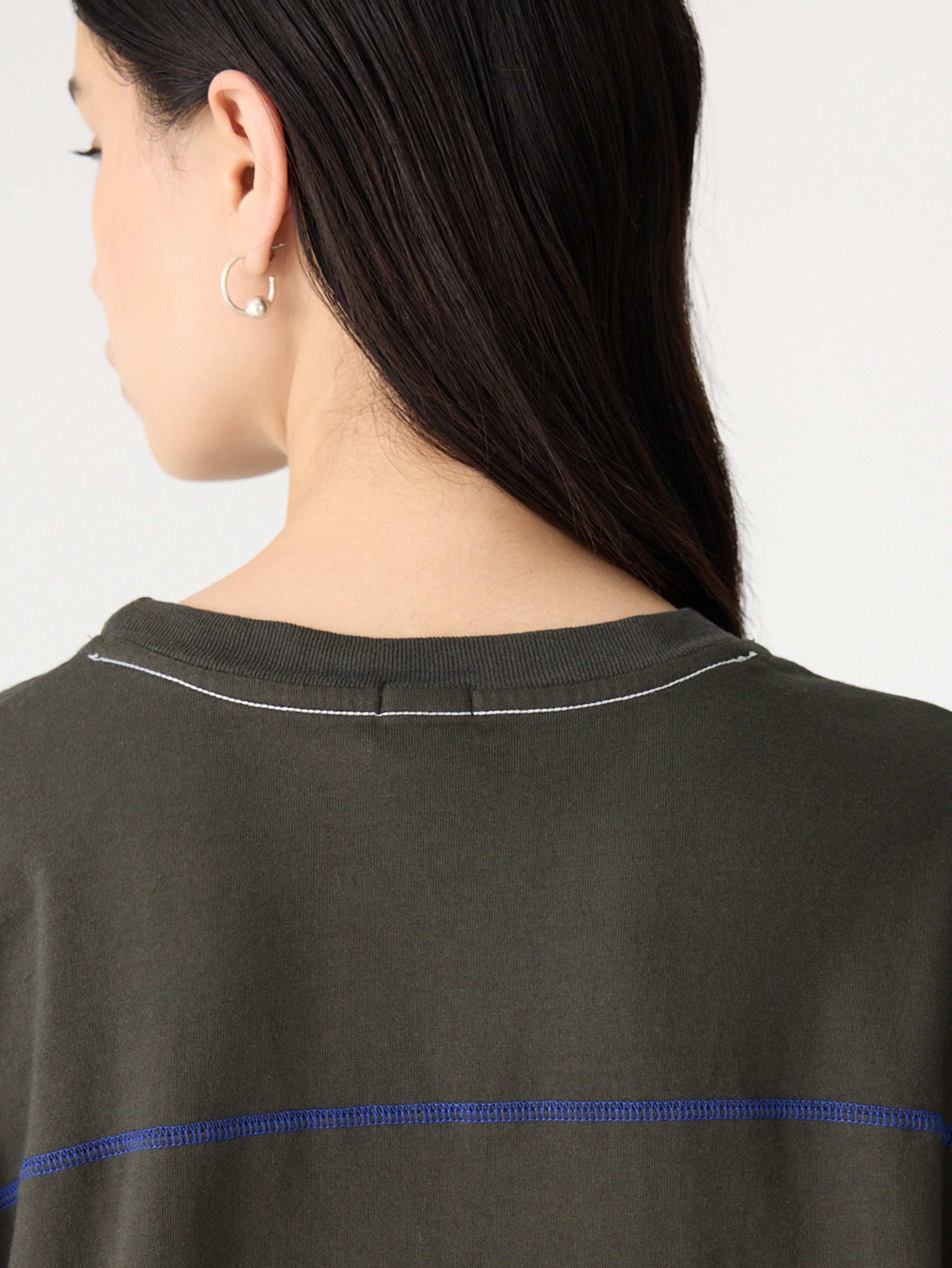 - Contrast cobalt cover stitching