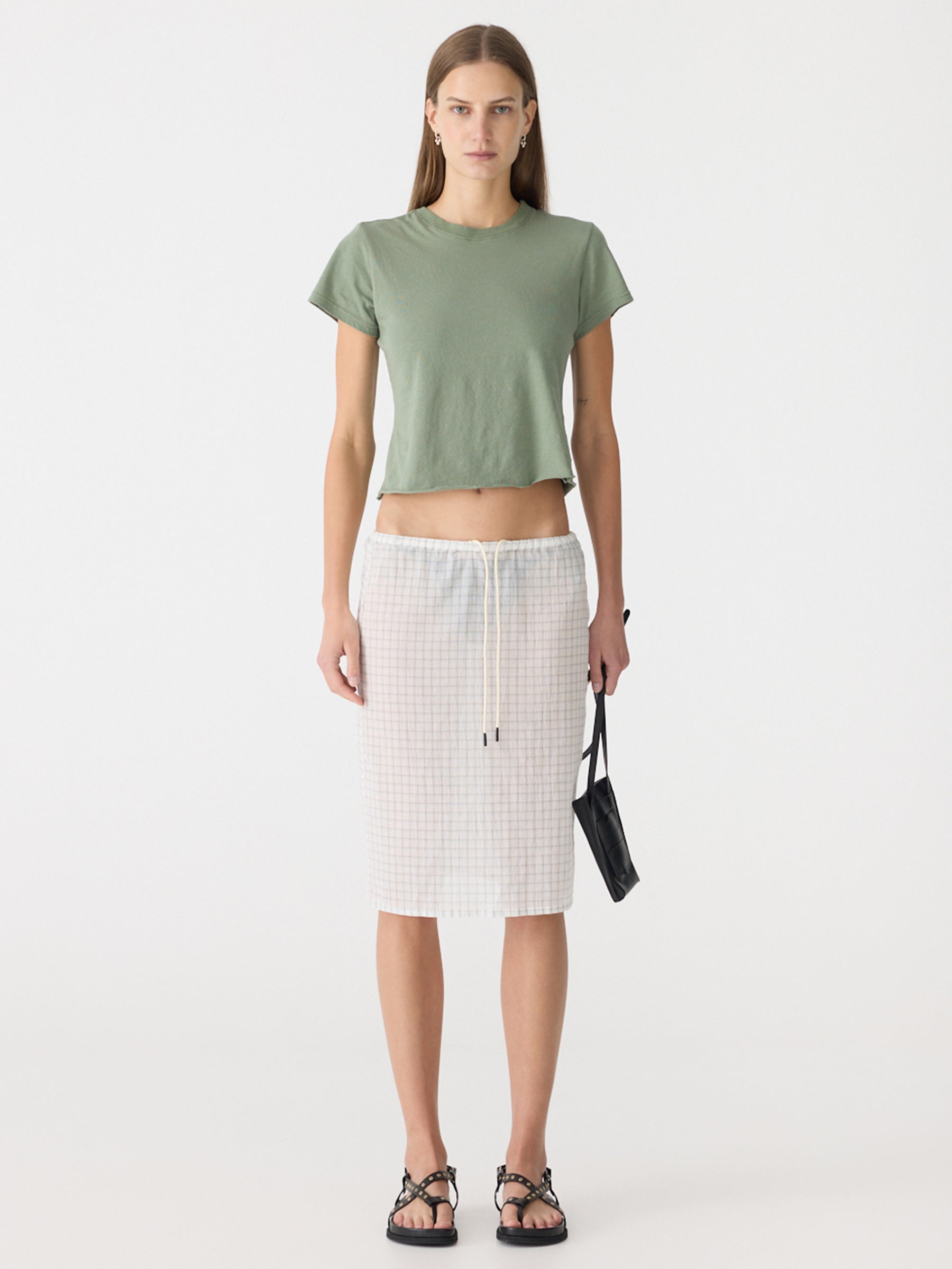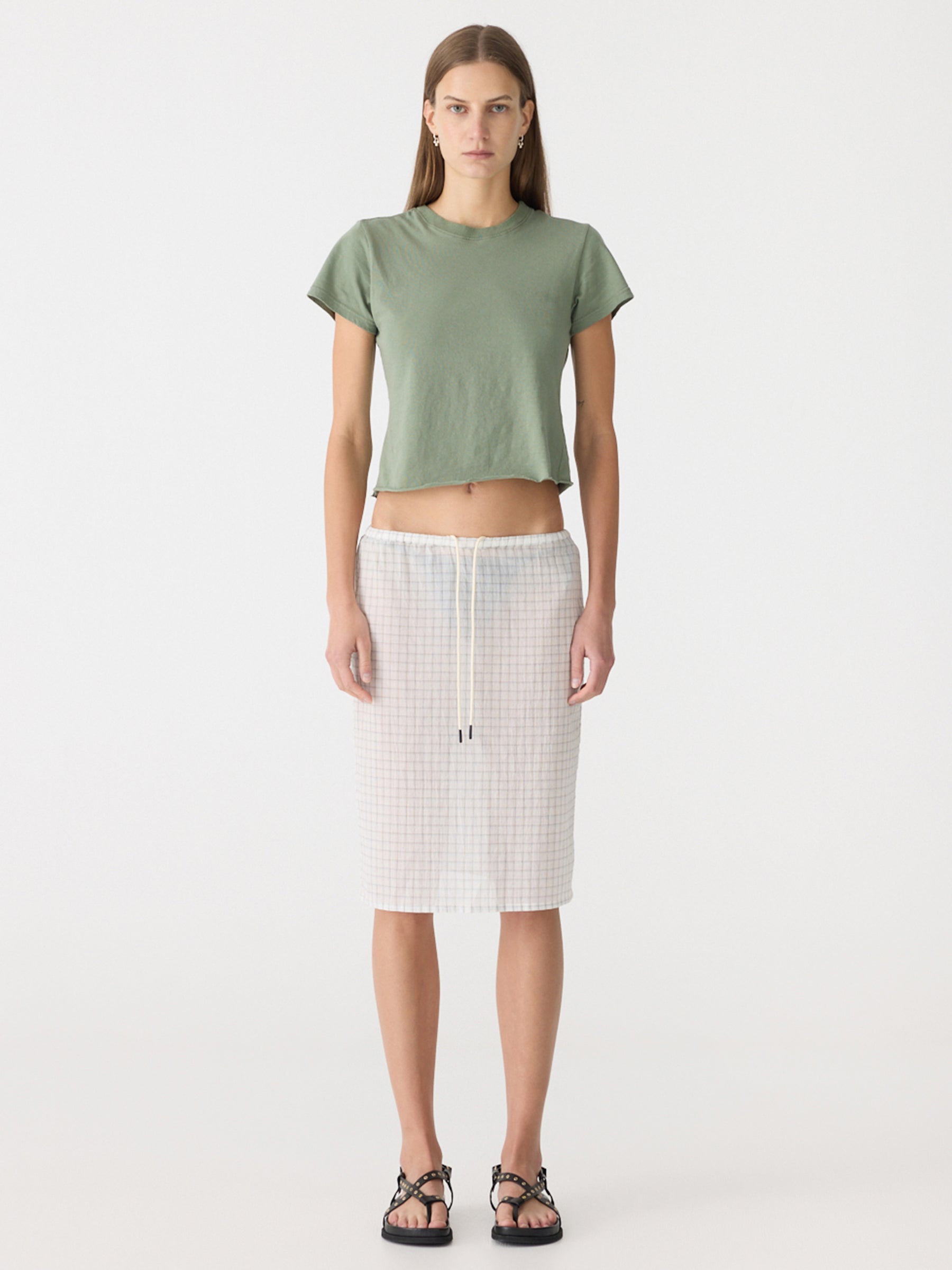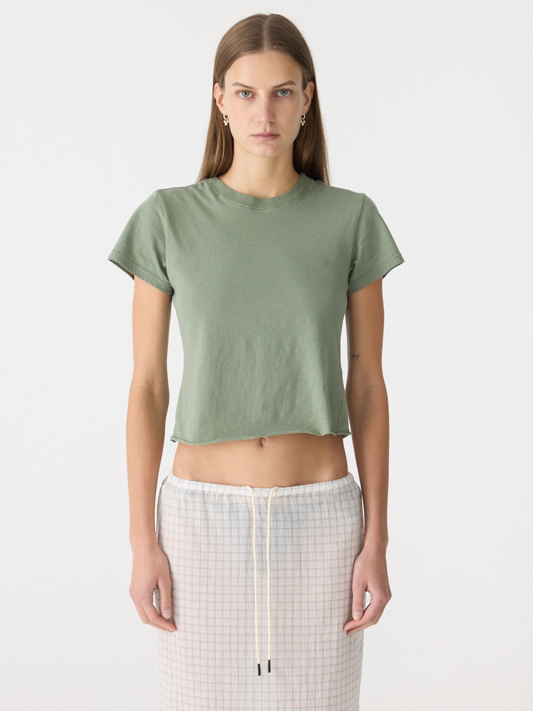 black fridayDesigned as a high rotation staple, the Raw Edge Baby T-Shirt is crafted from light-weight organic cotton single jersey for a slim fit shape. The final garment boasts a classic crew neck in organic cotton rib, cap sleeves and a cropped silhouette. Refined by a raw edge hem and signature contrast Bassike stitch detail. Easy for everyday wear.