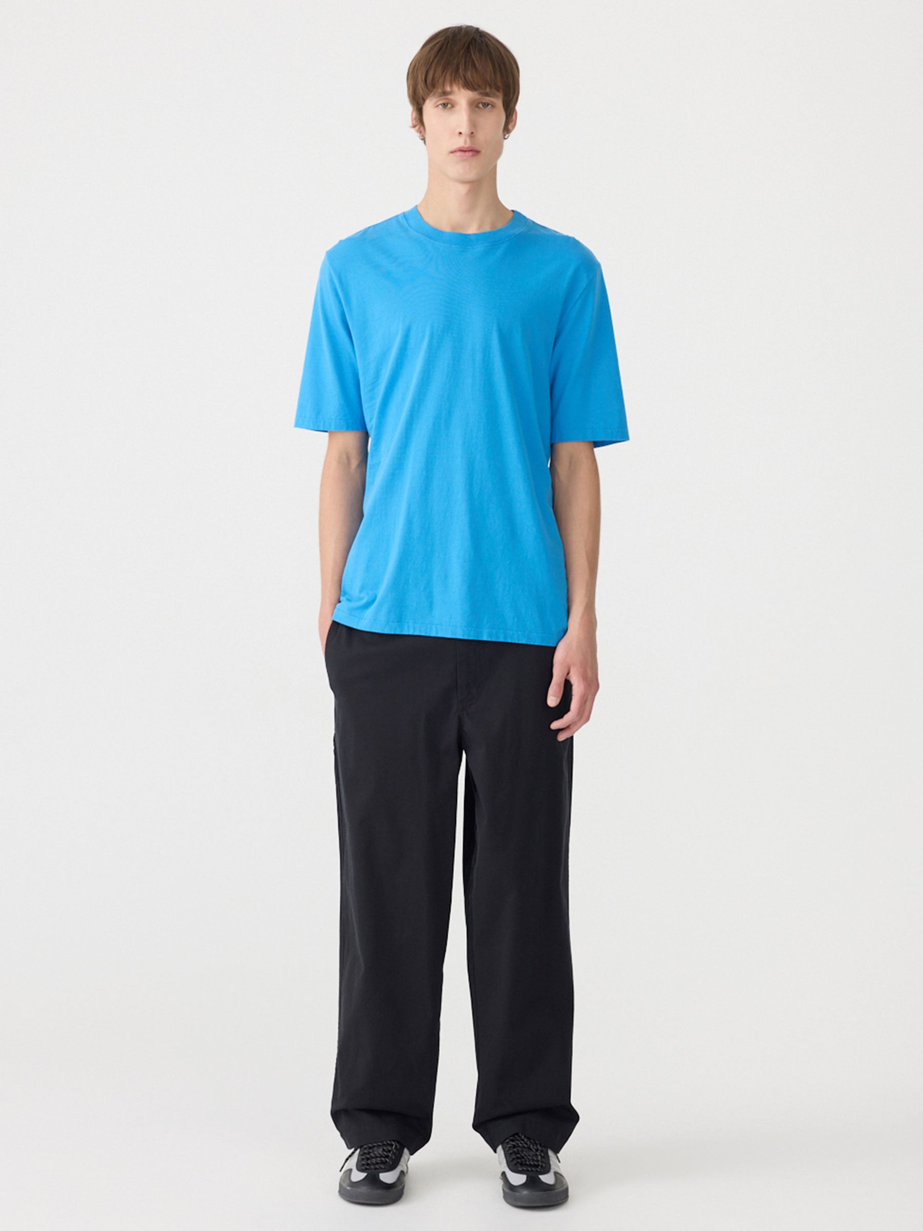 Crafted from lightweight organic cotton single jersey, with a softly textured grain, the Regular Fit Short Sleeve T-Shirt is designed for everyday dressing. This lightweight style features a classic scoop neckline and twisted side seams for an asymmetric fit. Complete with signature contrast topstitch detailing on back neck.