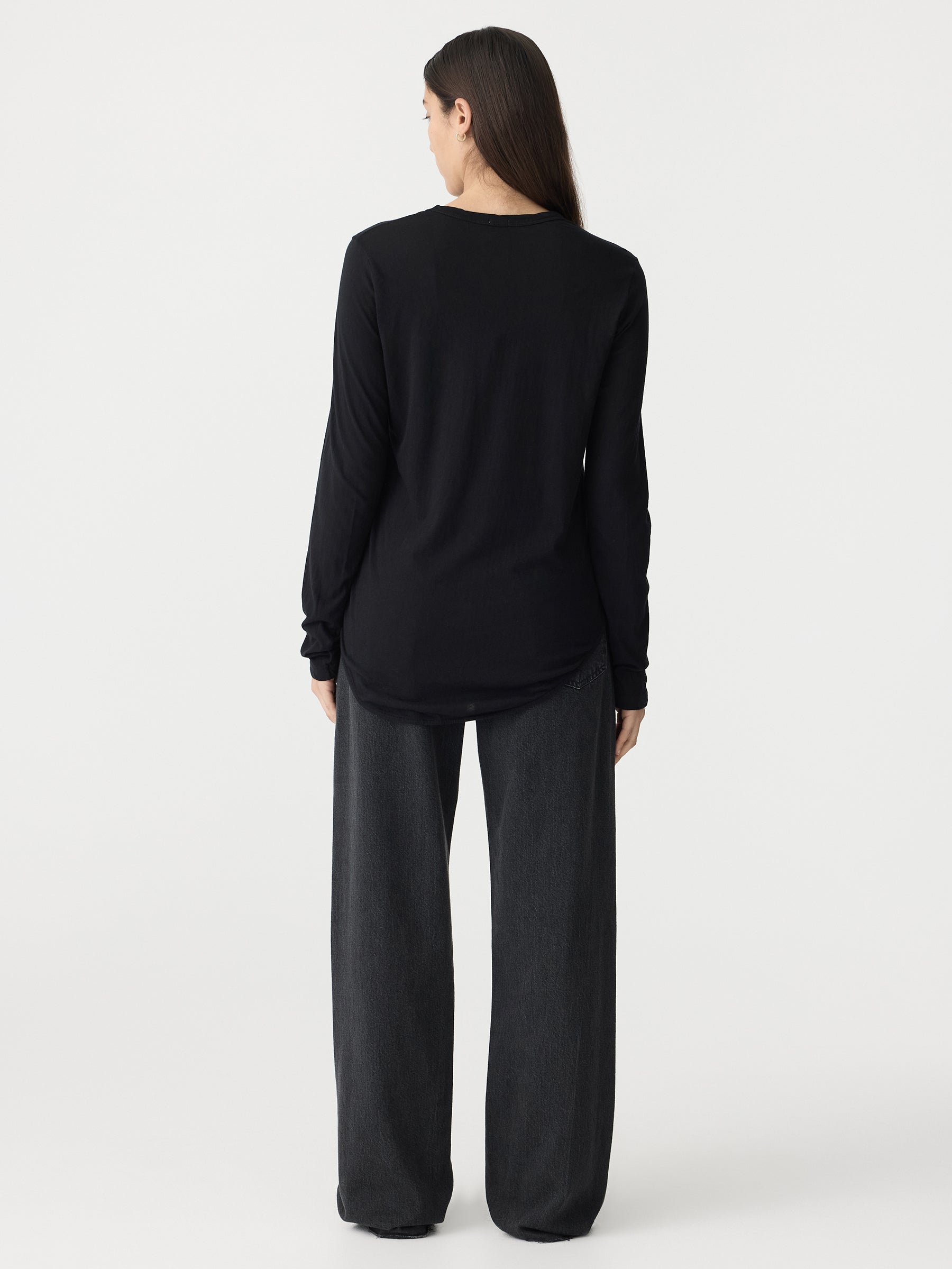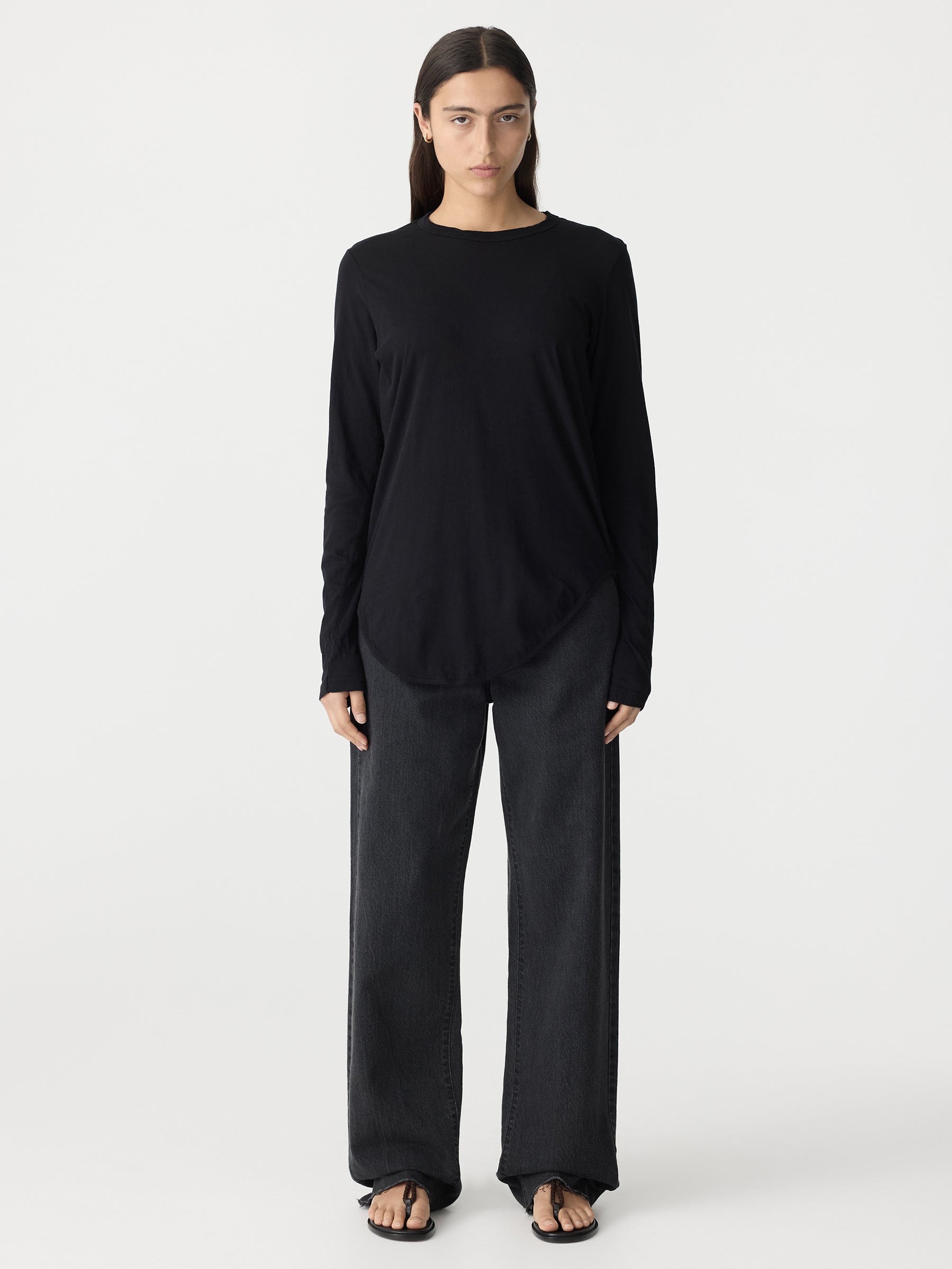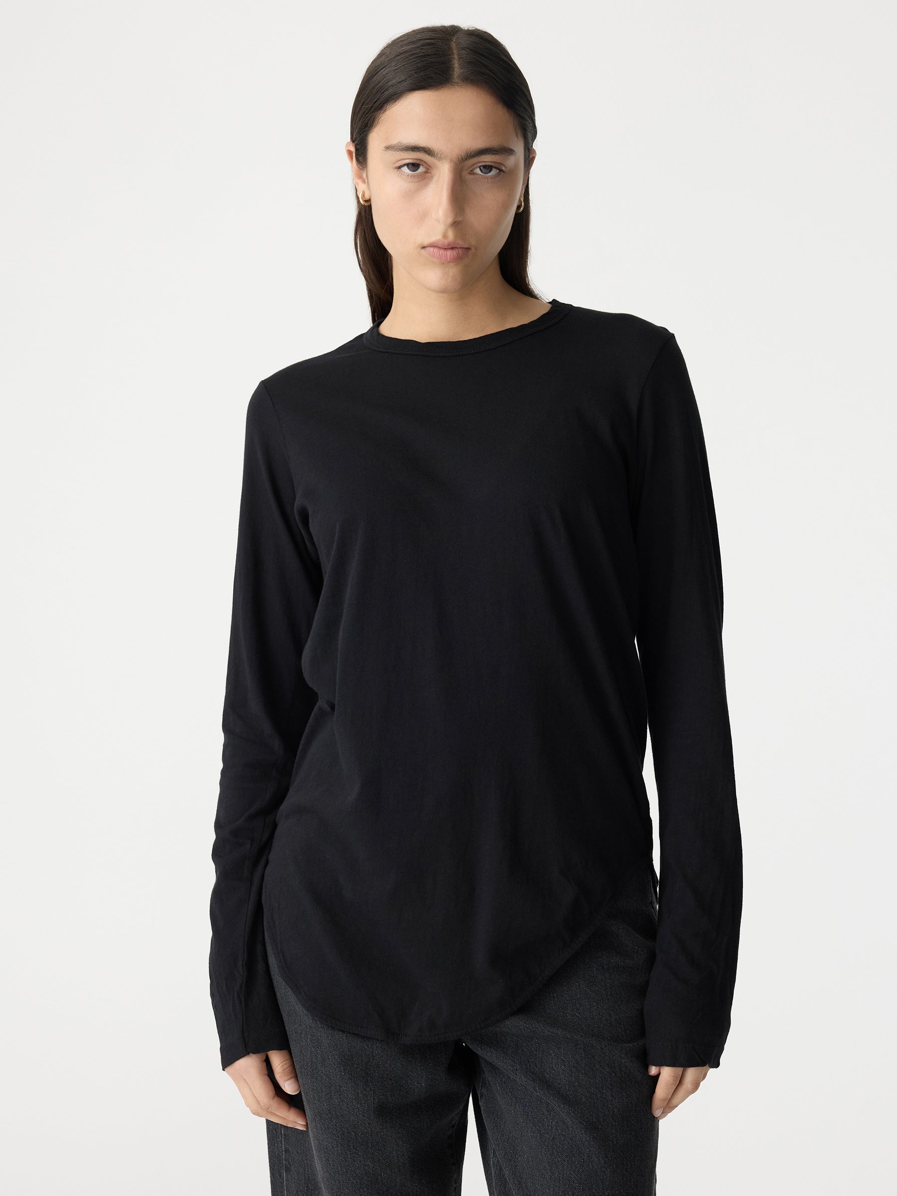 Credit or Exchange Only black fridayCrafted from an organic cotton jersey, the Regular Scoop Hem Long Sleeve T-Shirt is designed for a slim fit. Features a wide heritage band on neckline with curved longer hem at front and back. Complete with twisted side seams for an asymmetric fit.