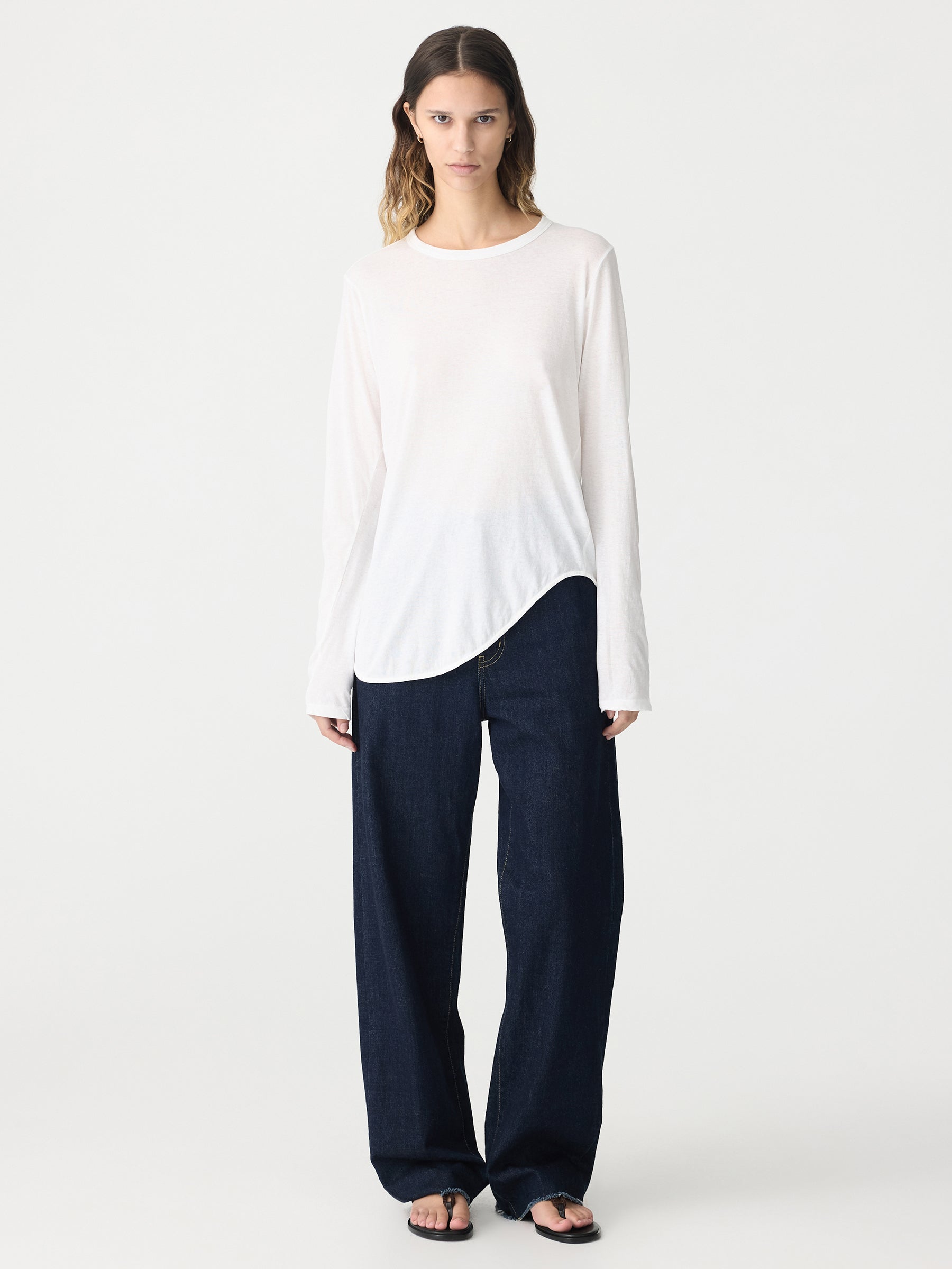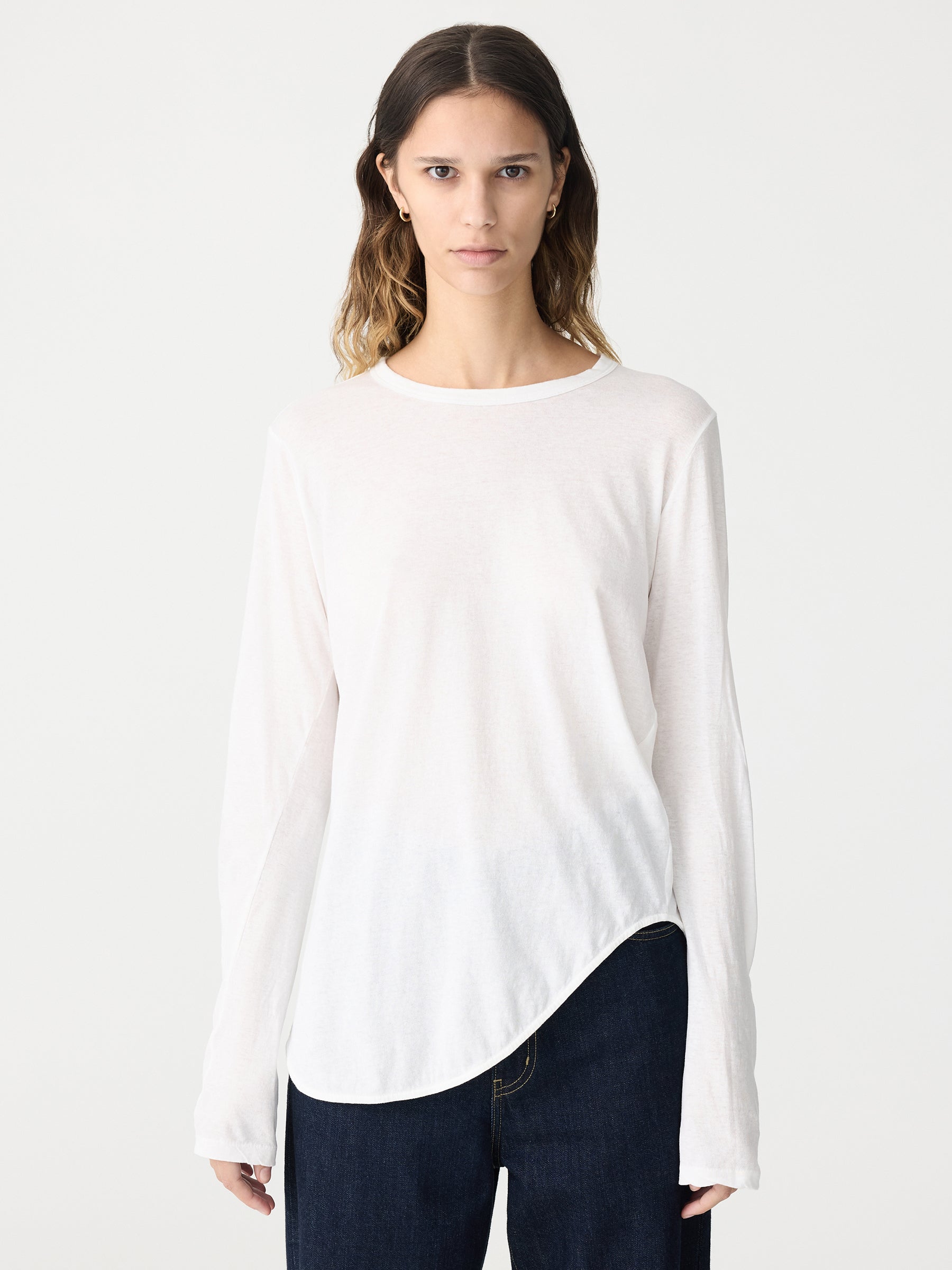 Credit or Exchange Only black fridayCrafted from an organic cotton jersey, the Regular Scoop Hem Long Sleeve T-Shirt is designed for a slim fit. Features a wide heritage band on neckline with curved longer hem at front and back. Complete with twisted side seams for an asymmetric fit.