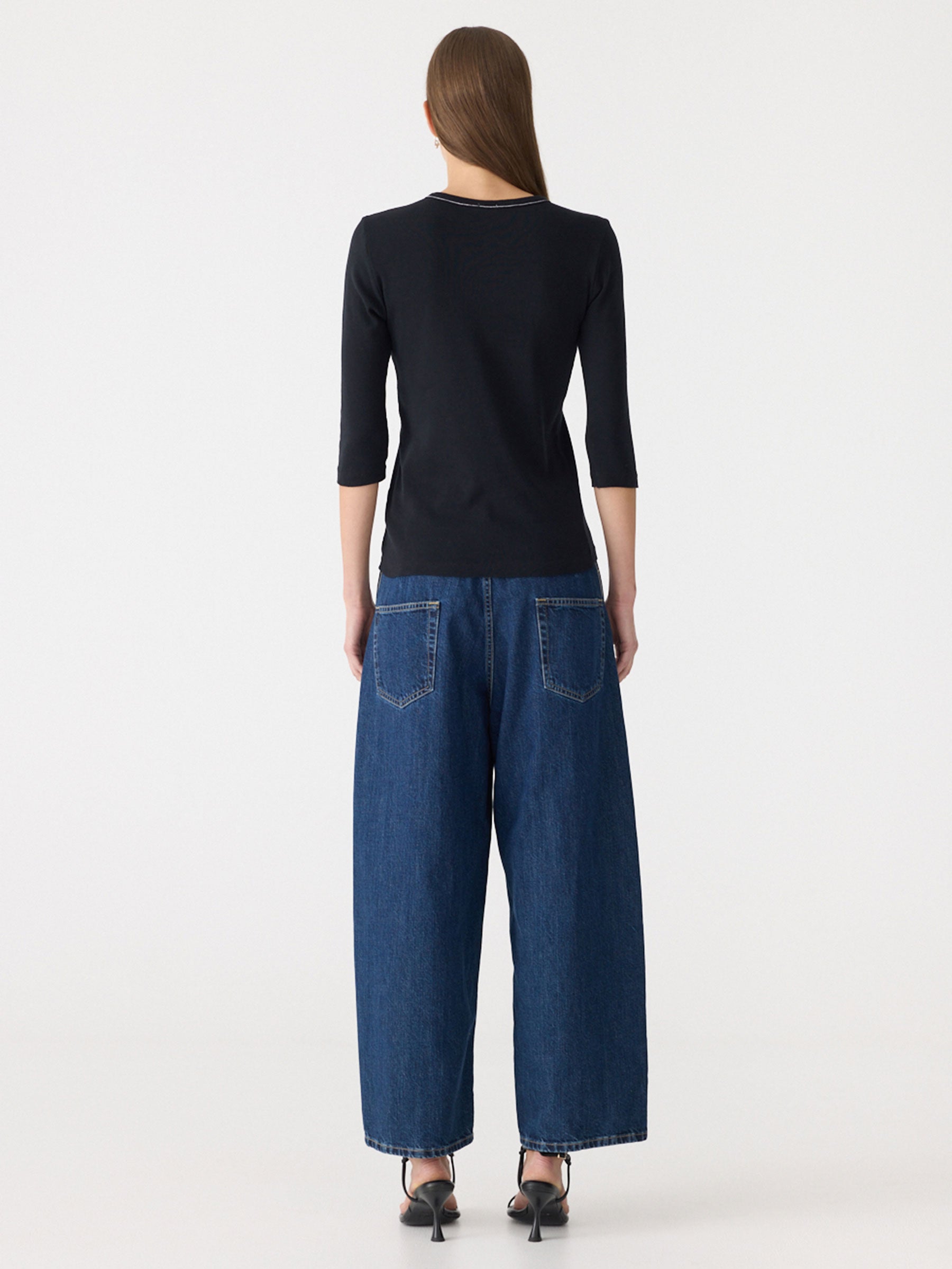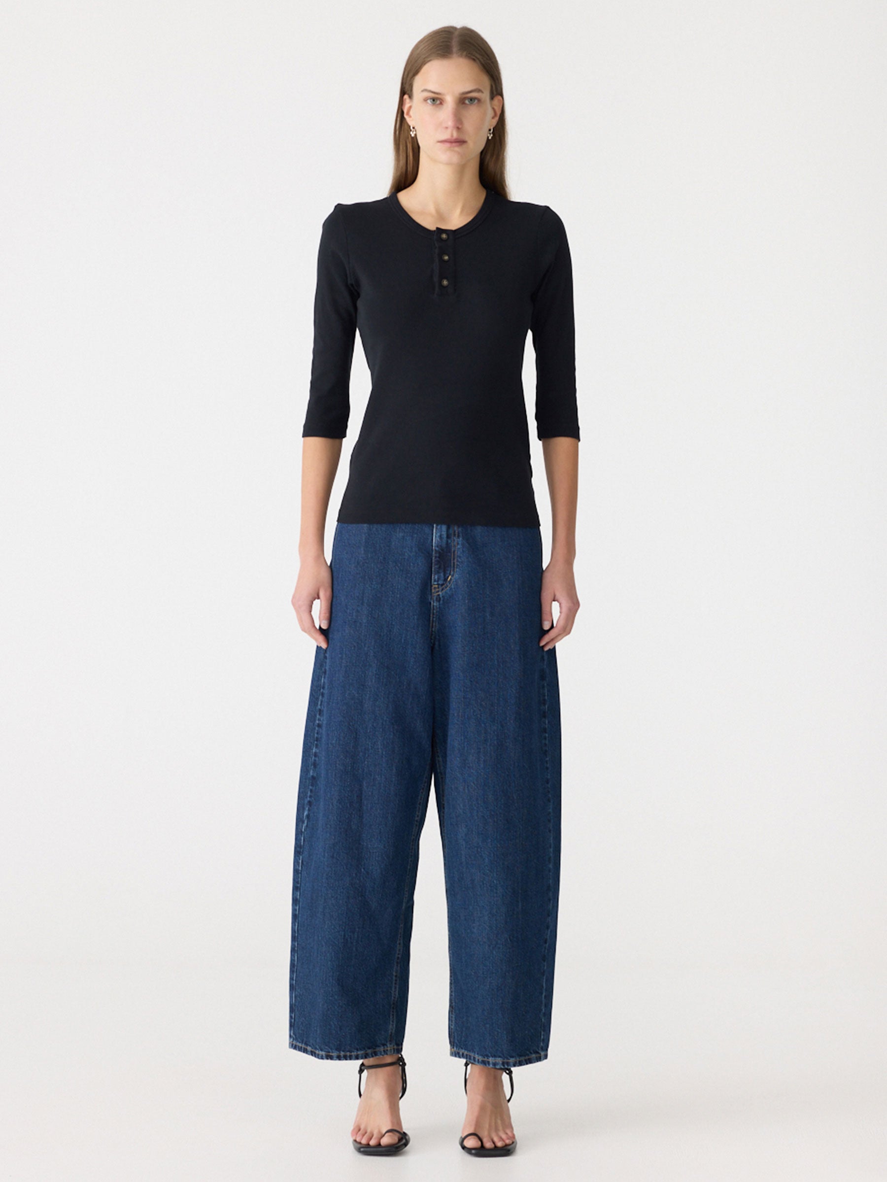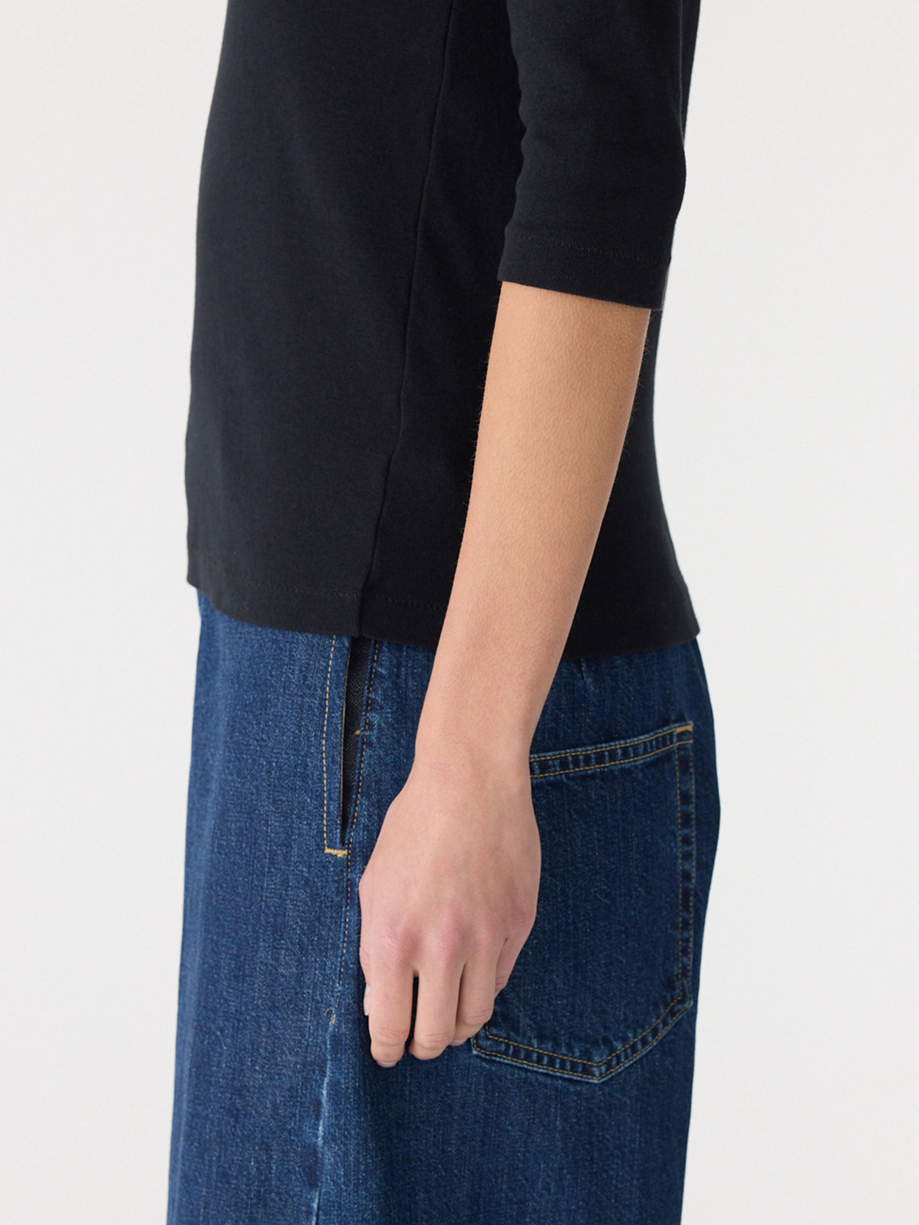 Credit or Exchange Only black fridayA slim fit sleeve placket t-shirt made from organic cotton superfine rib. Featuring 3/4 sleeves, a fine neck bind and front placket with button details. Designed and made in Australia.