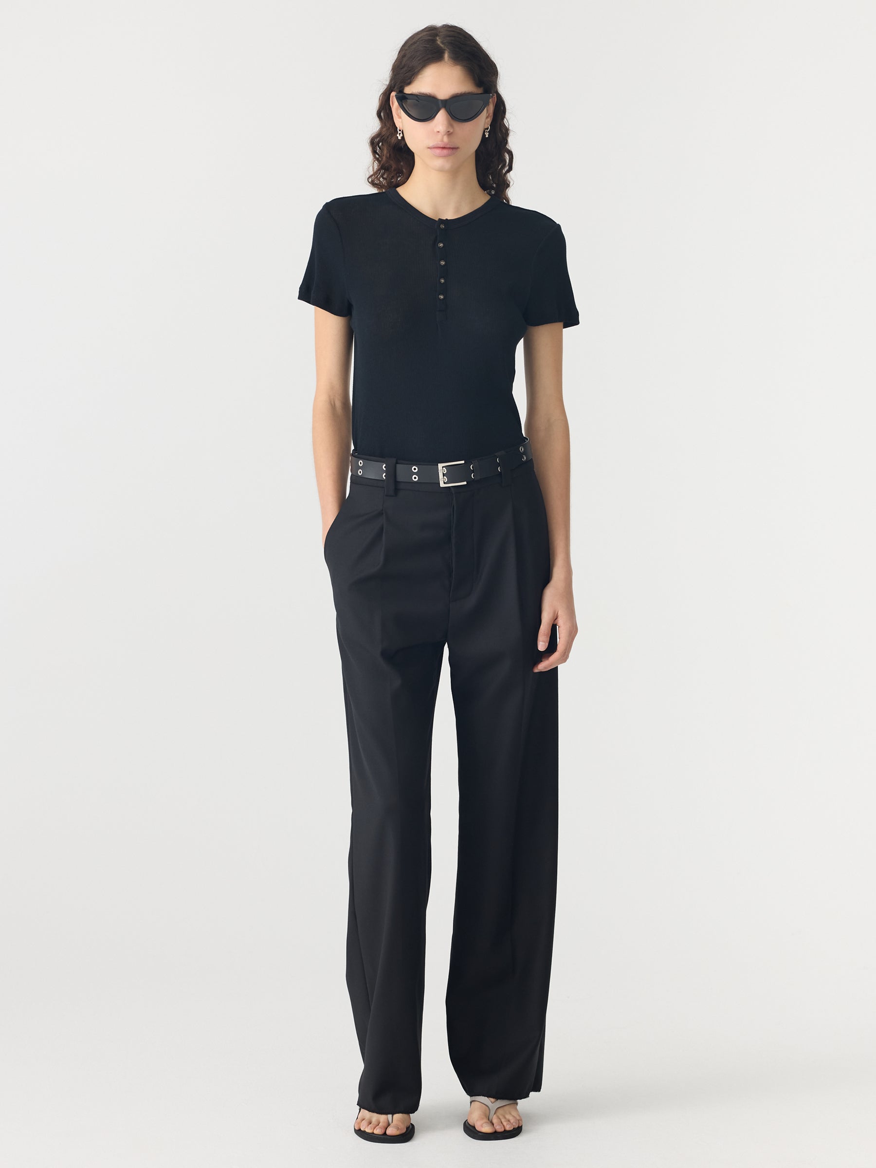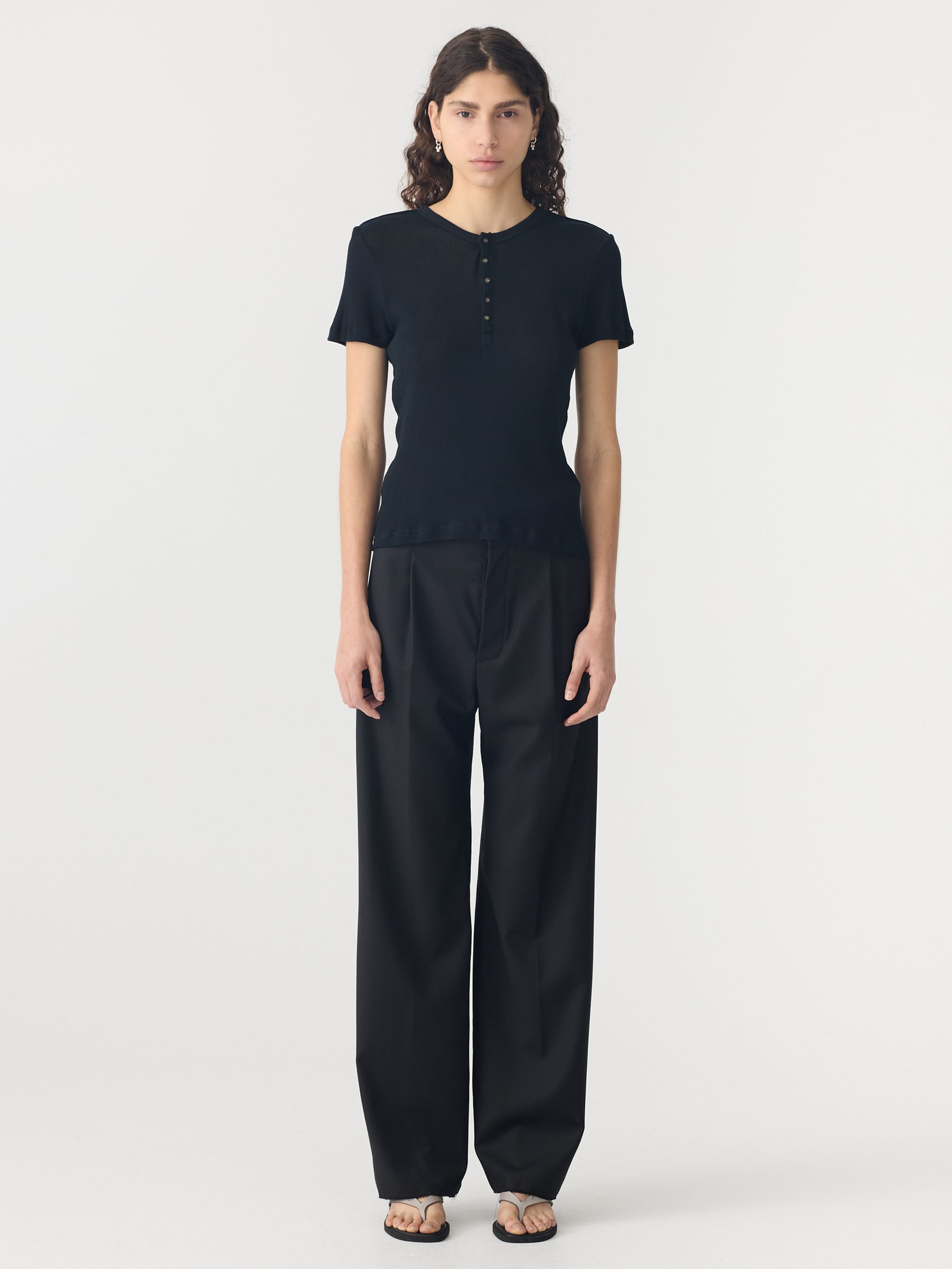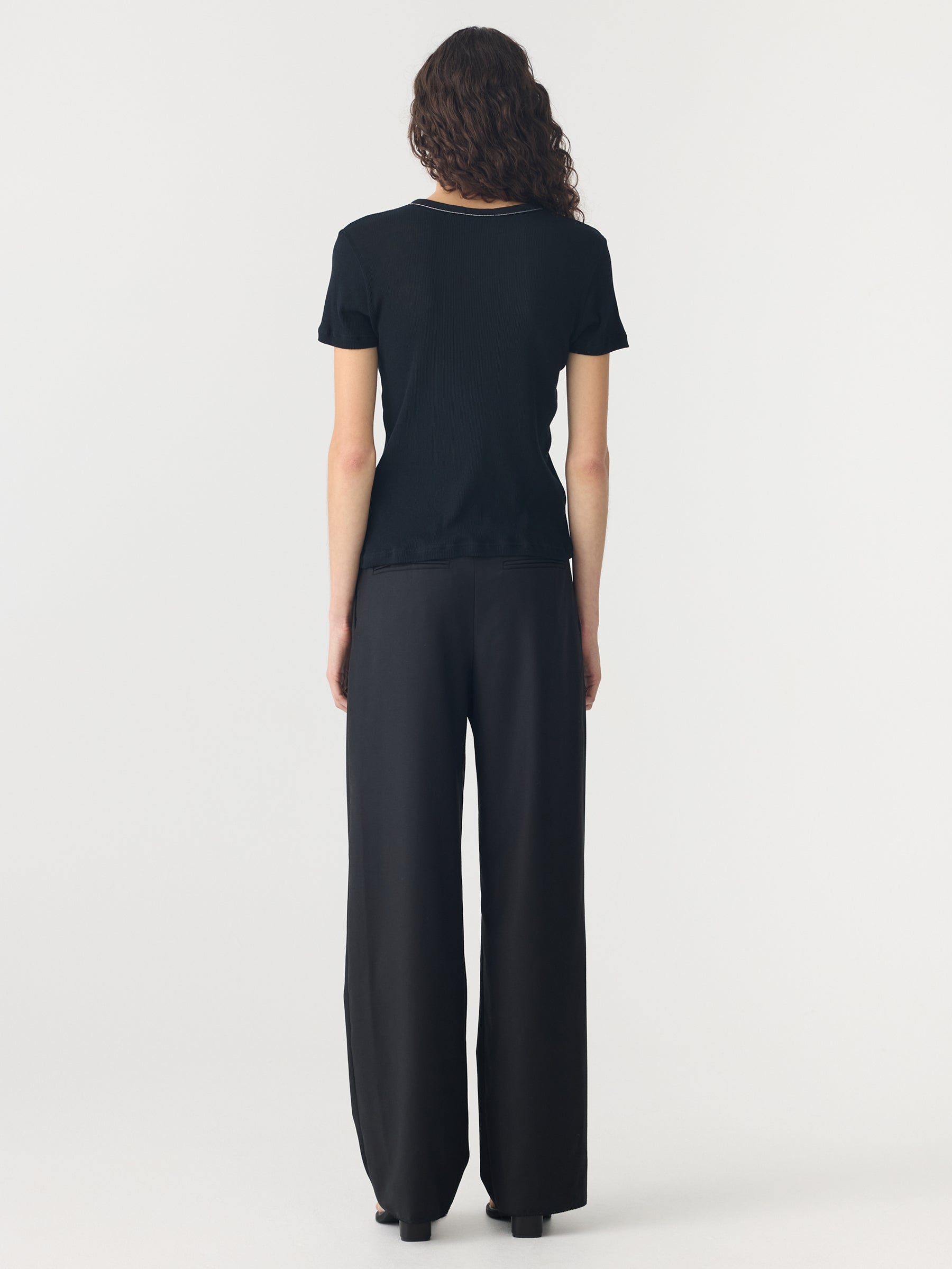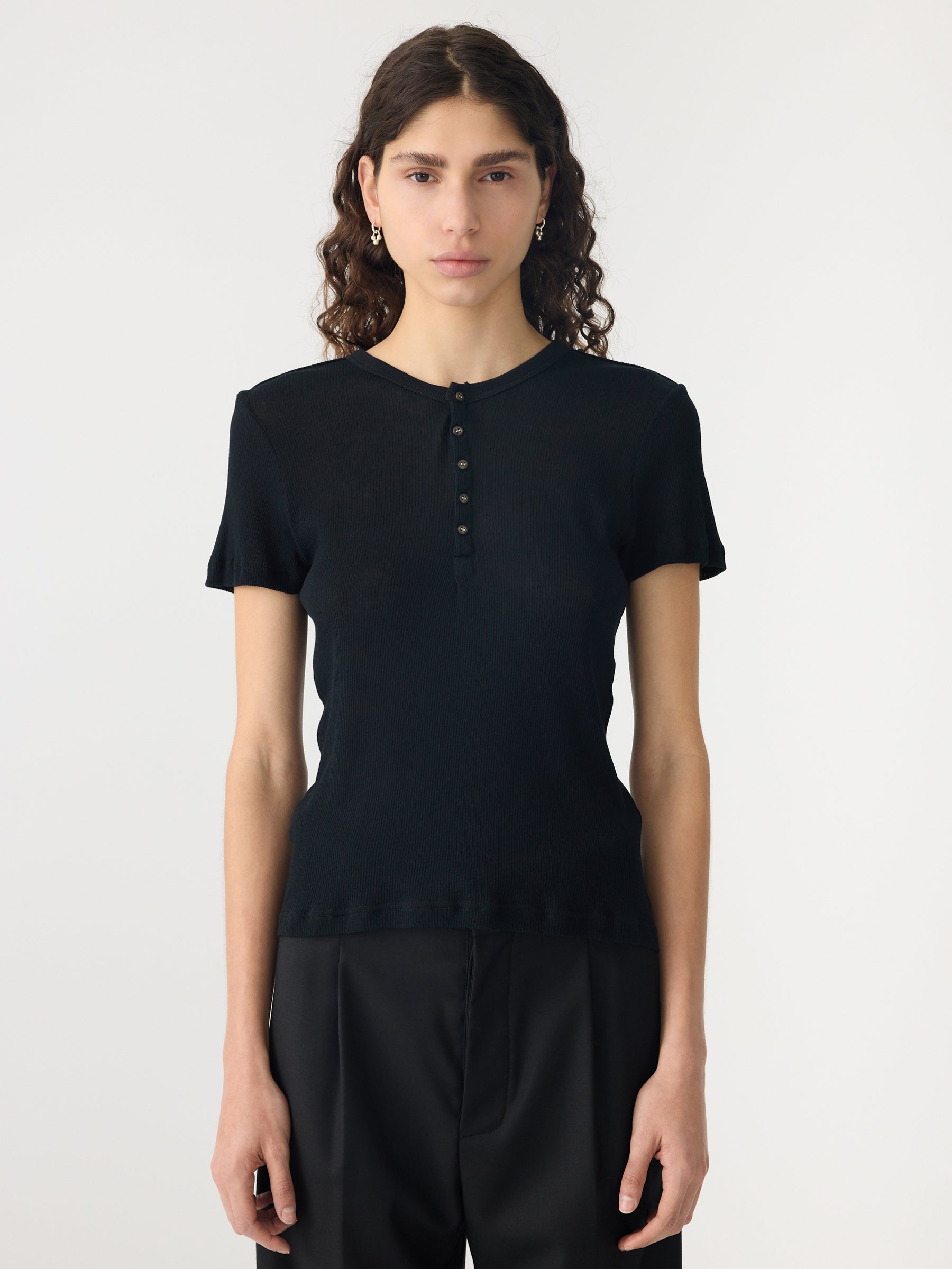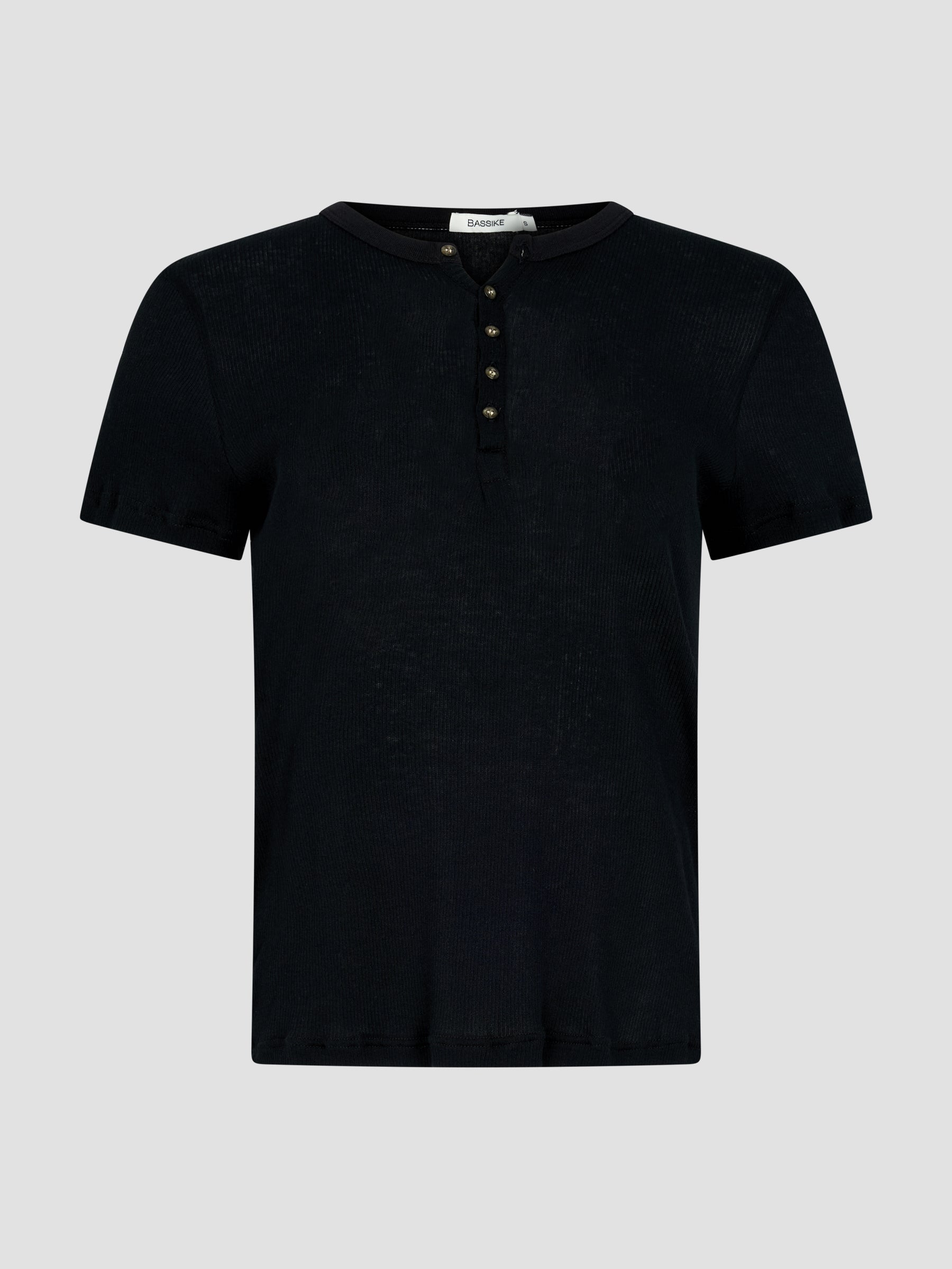 Credit or Exchange Only black fridayA new signature style, the Sheer Rib Placket Short Sleeve T-Shirt is designed for a slim fit in an organic sheer rib fabrication. This high-rotation staple features a quarter front placket with buttons, a ribbed neckline and finished hems. Complete with Bassike’s signature contrast chainstitch at the back neck.