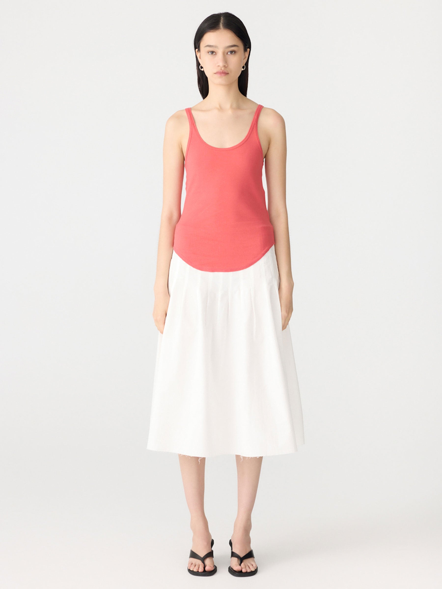 Crafted from 120gsm cotton jersey with a superfine stretch rib finish, the Slim Scoop Rib Tank is designed as a foundational wardrobe element. Boasting a slim fit, the Slim Scoop Rib Tank details a classic scoop neckline with curved bottom hem. Refined by signature Bassike contrast topstitching on back neck.