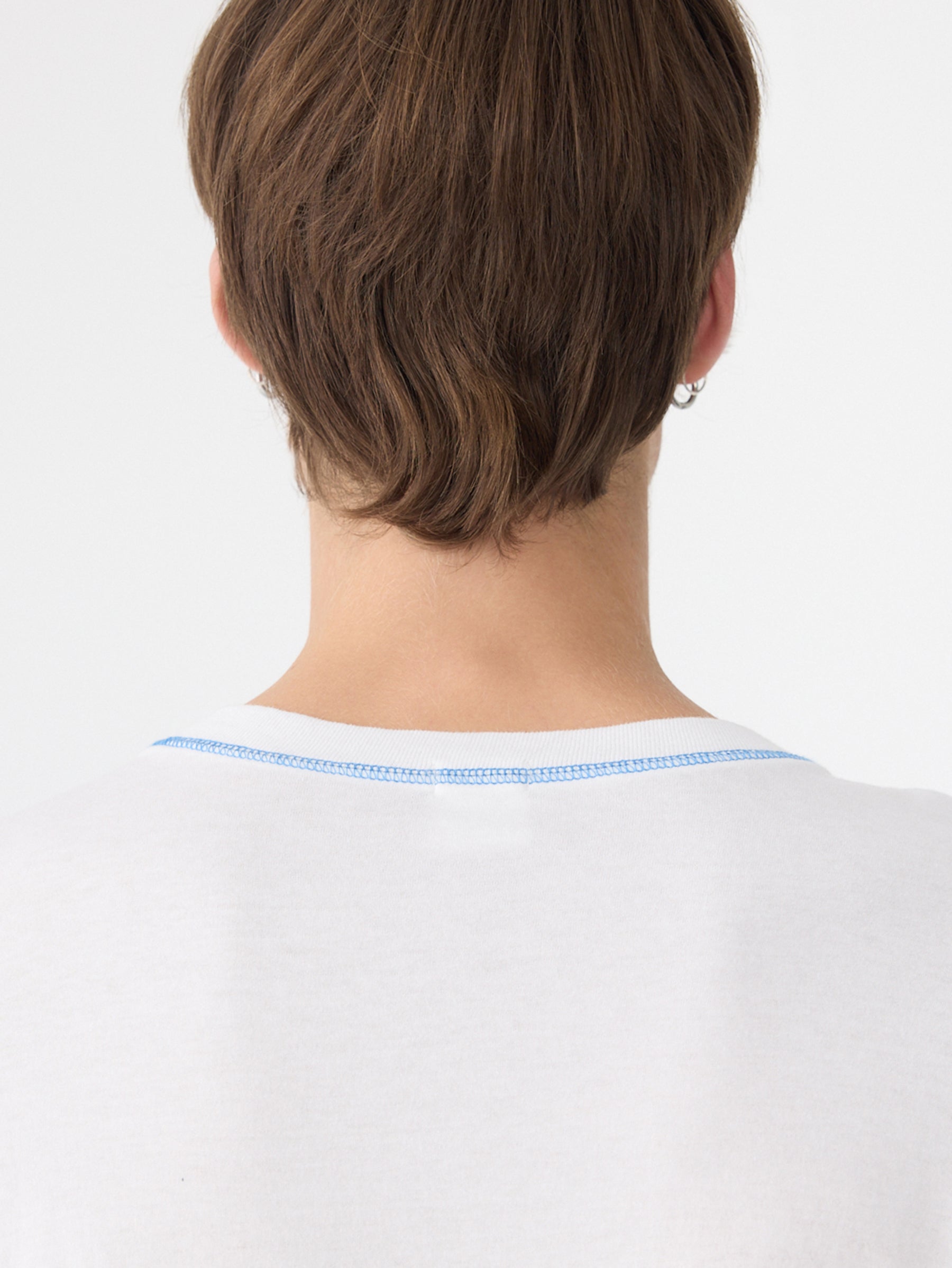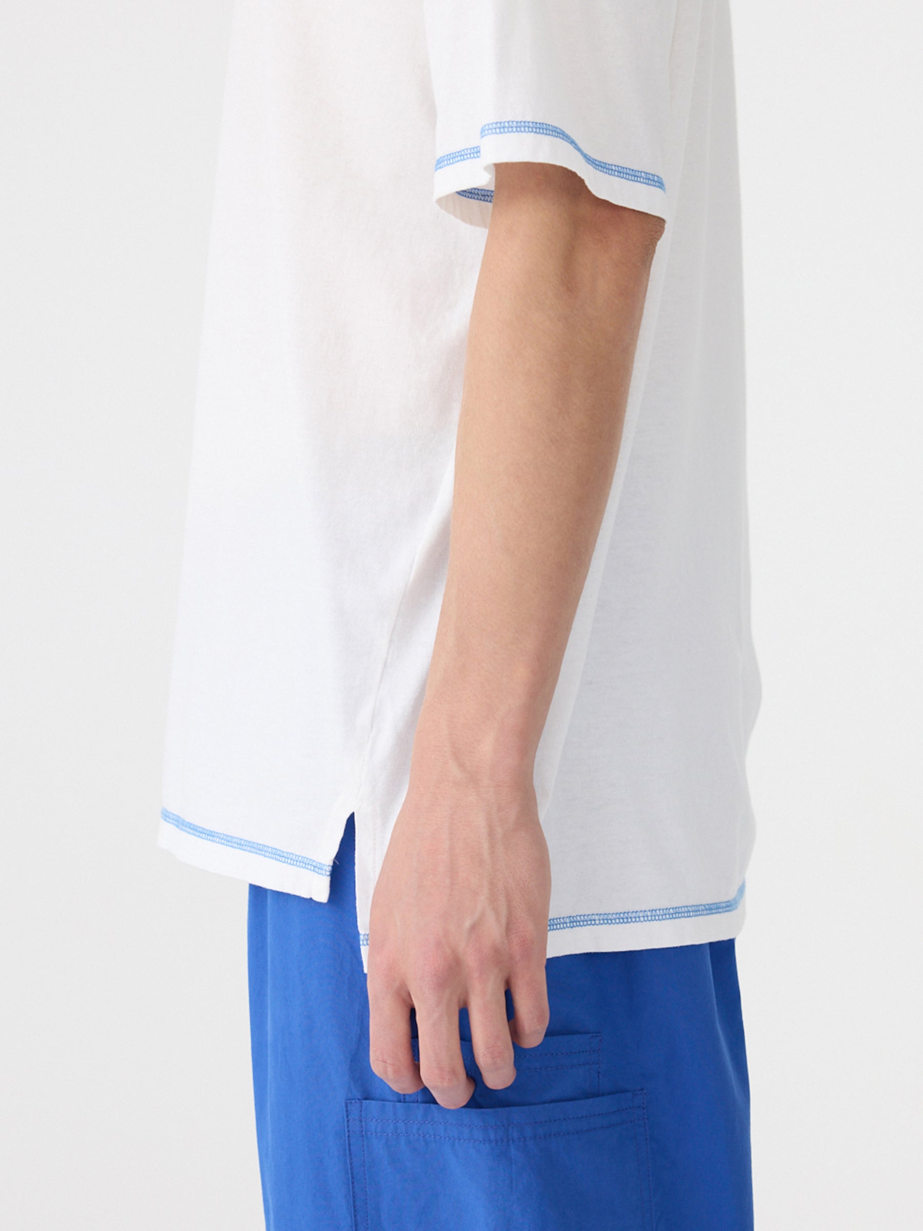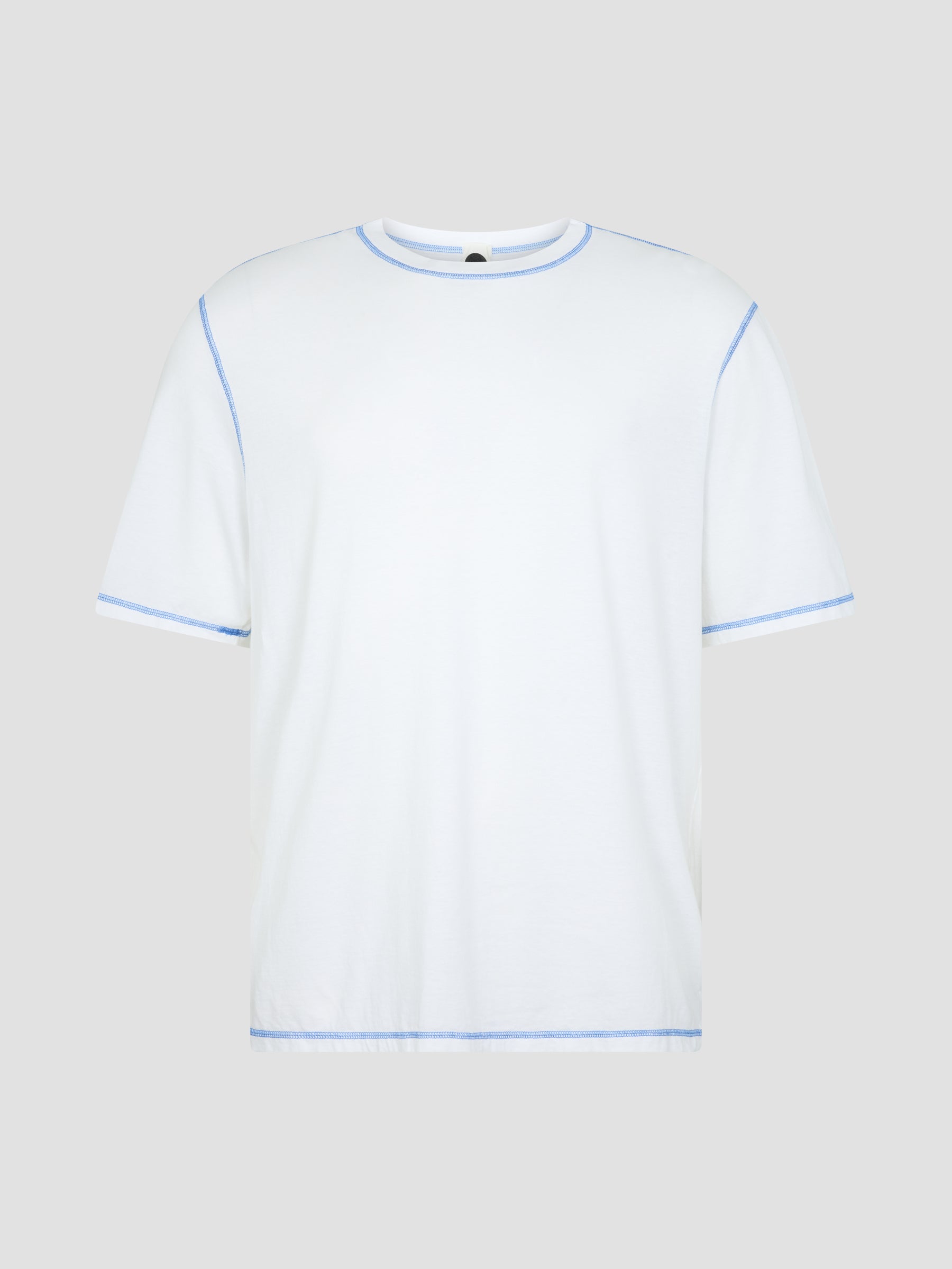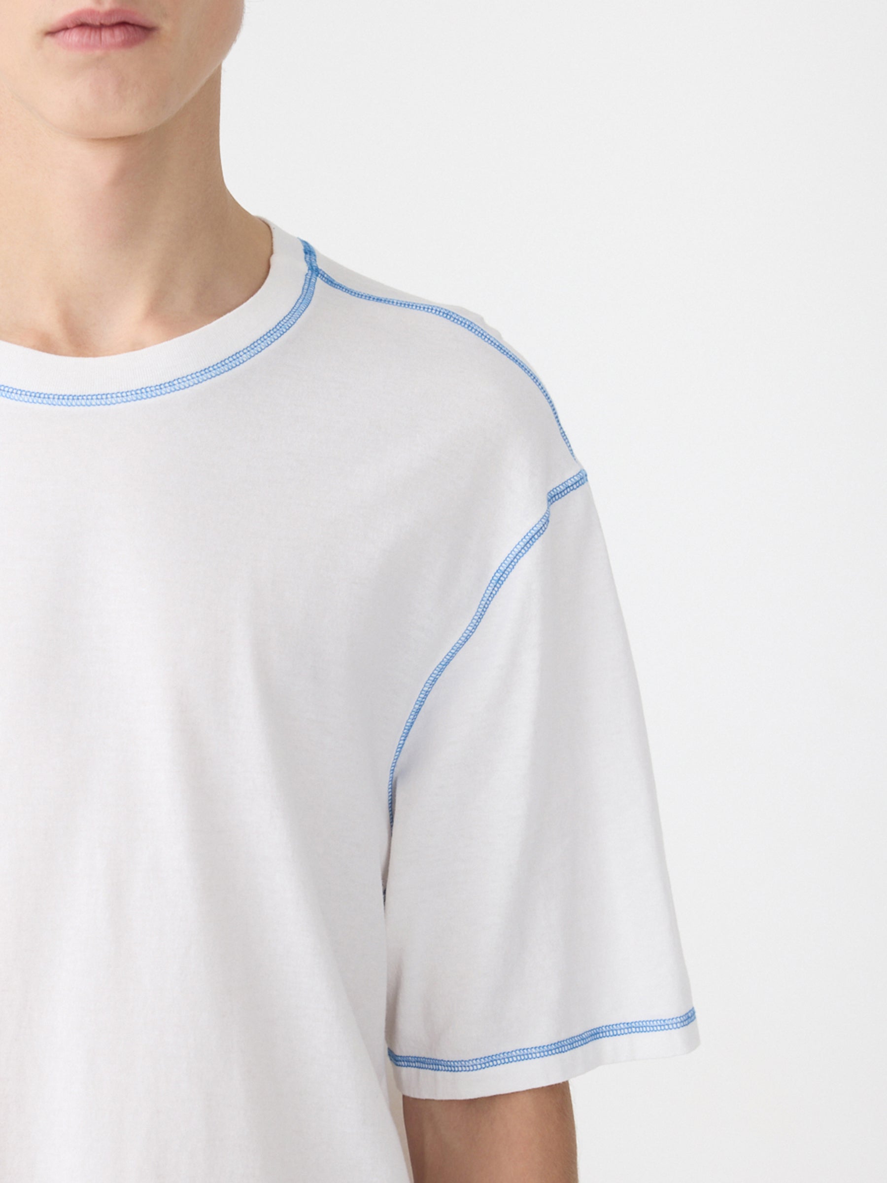 A signature style: reimagined in seasonal hues. Crafted from premium cotton french terry, the Slouch Contrast Stitch T-Shirt is designed for a relaxed fit. This lightweight style boasts a vintage contrast rib neckline, dropped shoulder seams and contrast topstitching. Refined by split side seam detail at body hem.