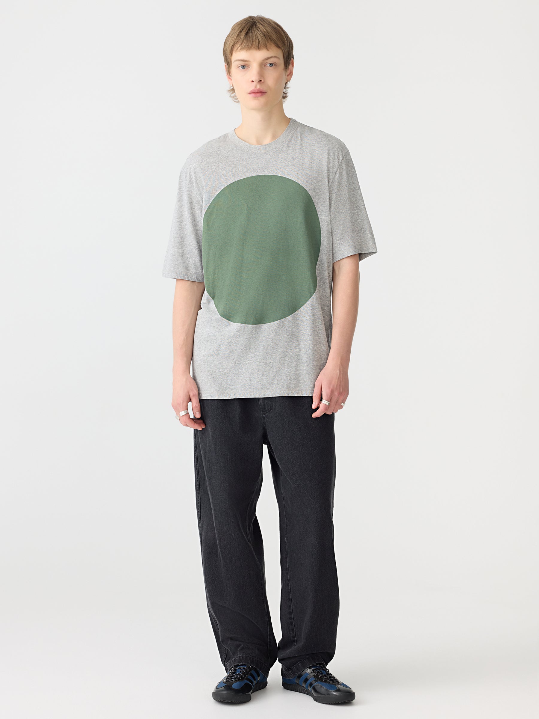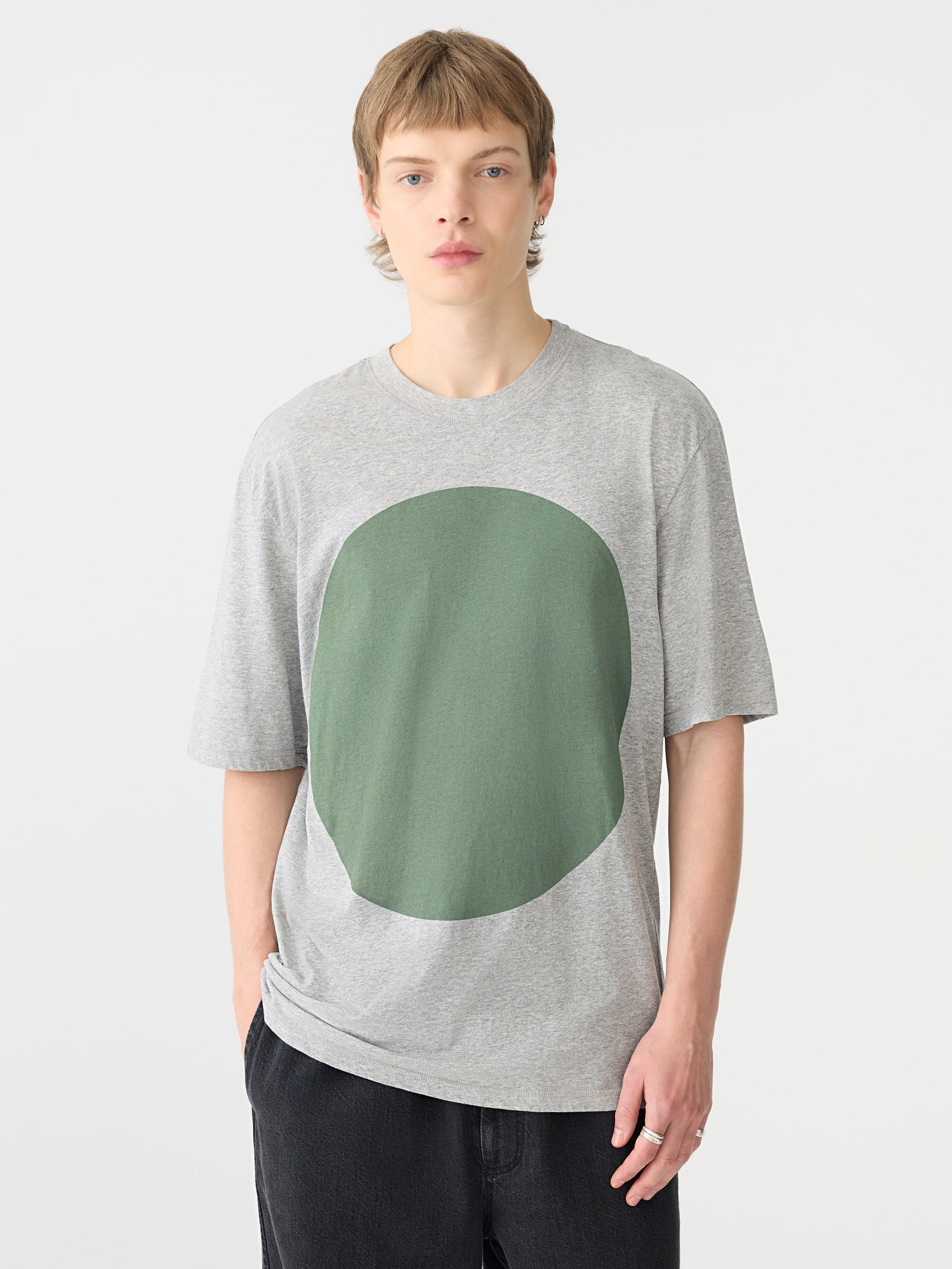 Designed for a relaxed fit, the Slouch Fit Dot T-Shirt is crafted from organic cotton single jersey with a softly textured grain. This midweight style features a classic ribbed crew neckline, side split seams.