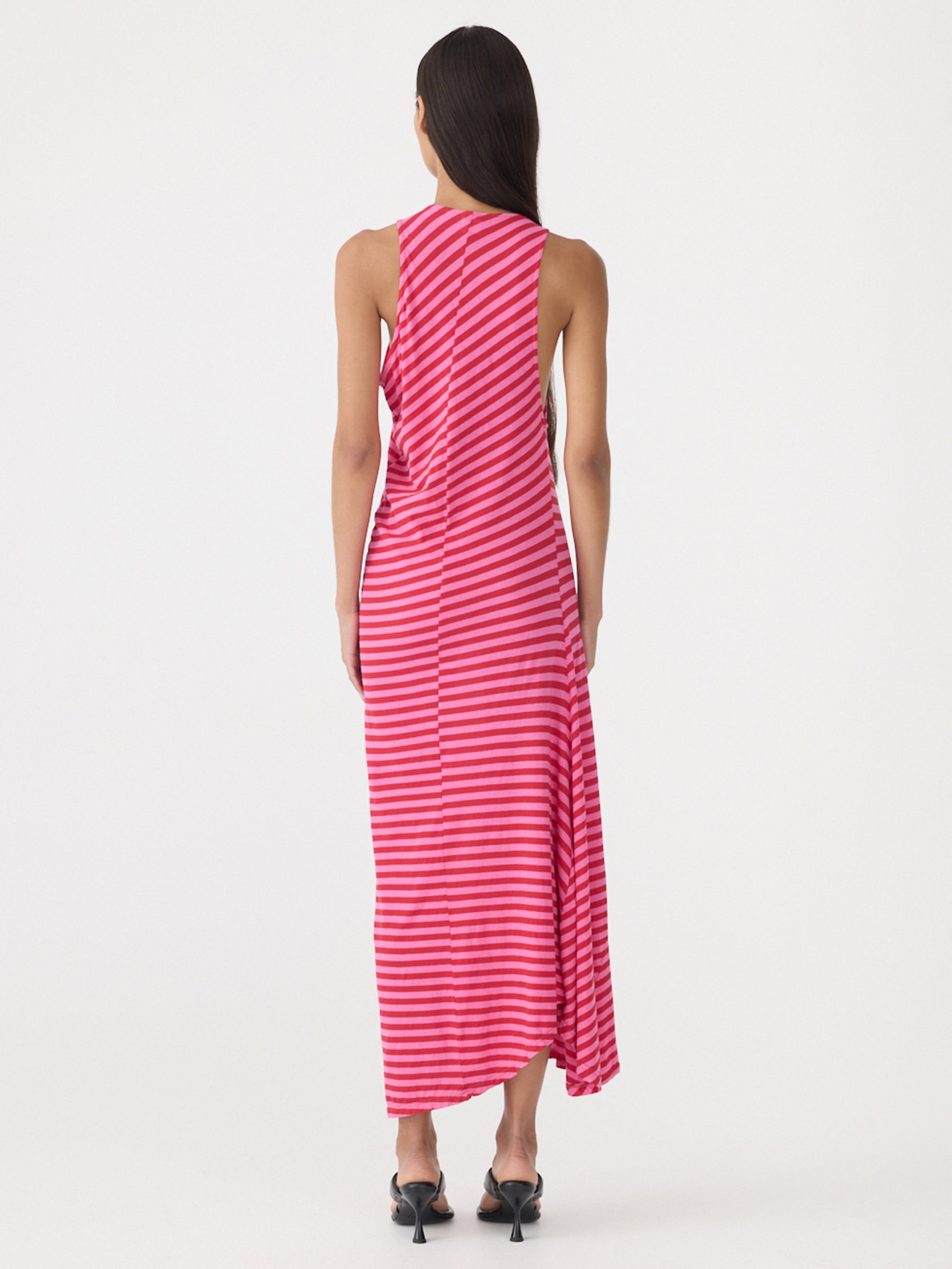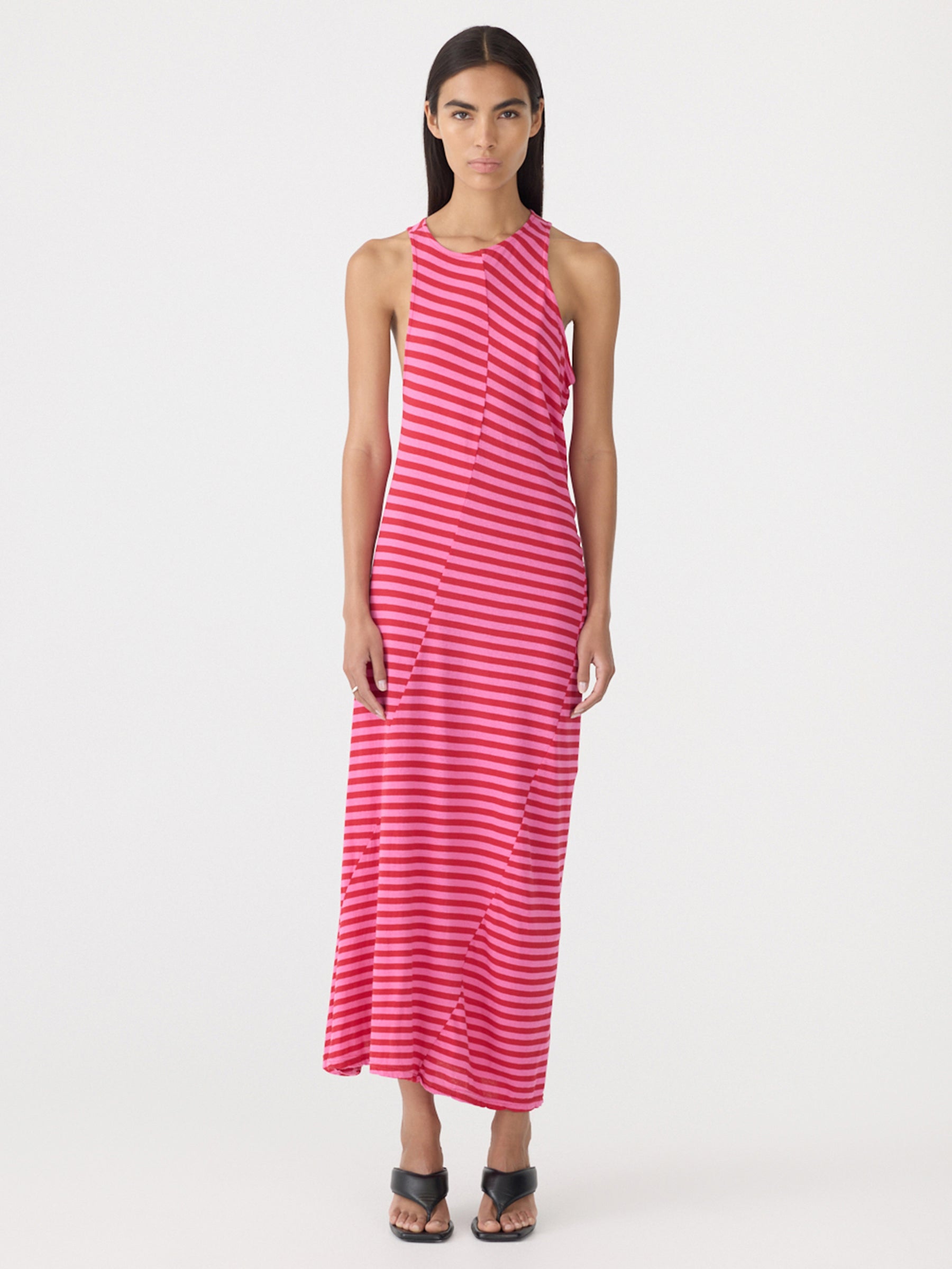 A seasonal essential, the Stripe Asymmetric Tank Dress is crafted from organic cotton stripe for a soft, breathable feel. Designed in a longerline silhouette with a slightly asymmetric hem, the dress features subtle ruching higher on one side and a centre front seam for natural stripe variation.