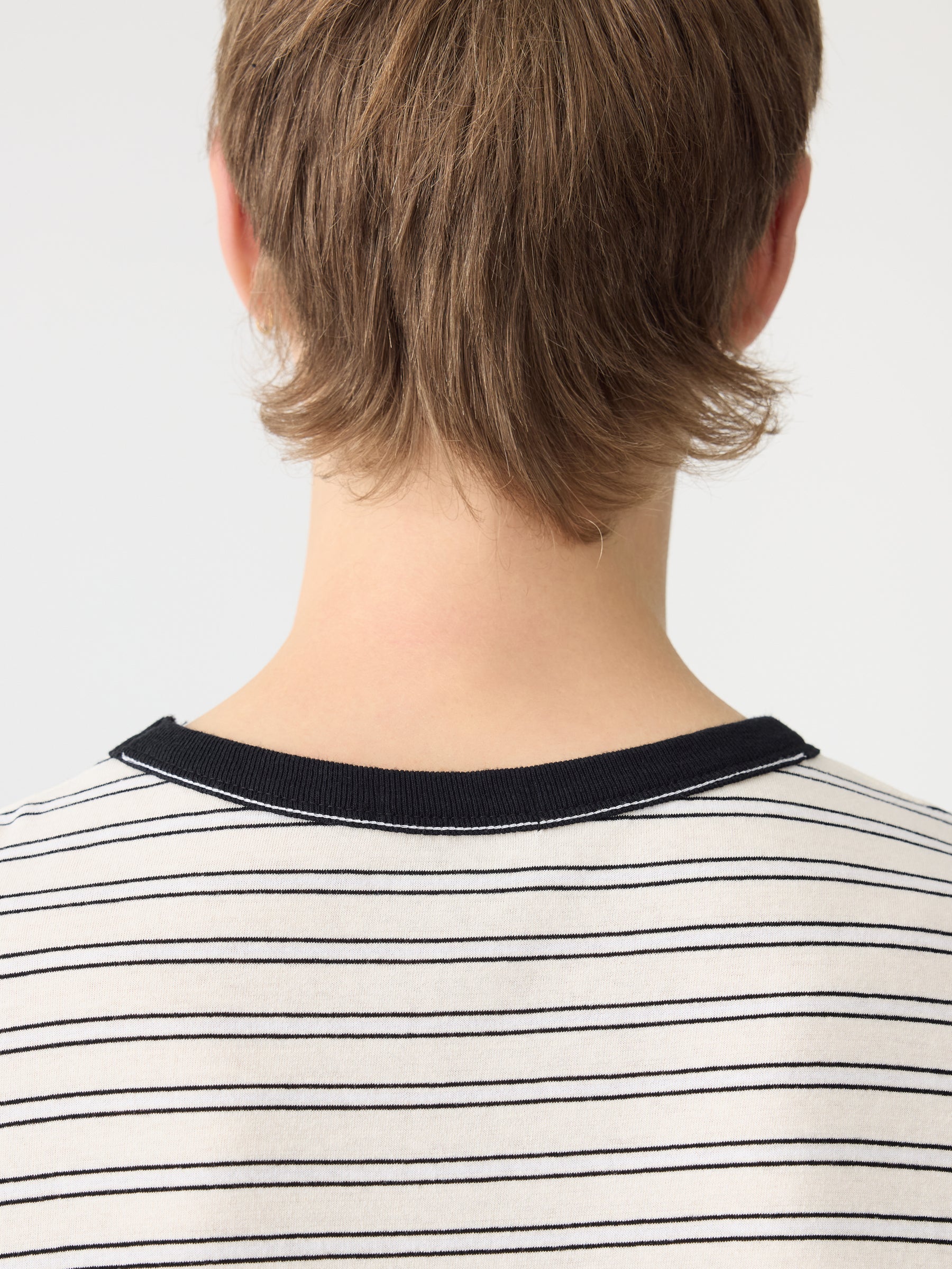 A new foundational staple, the Stripe Boxy Short Sleeve T-Shirt is designed for a relaxed, slouch fit in a boxy silhouette. Crafted from organic cotton single jersey knitted in Australia, this short sleeve style features a contrast ribbed neckline and a finished hem. Complete in a classic organic jersey stripe for everyday wear.