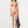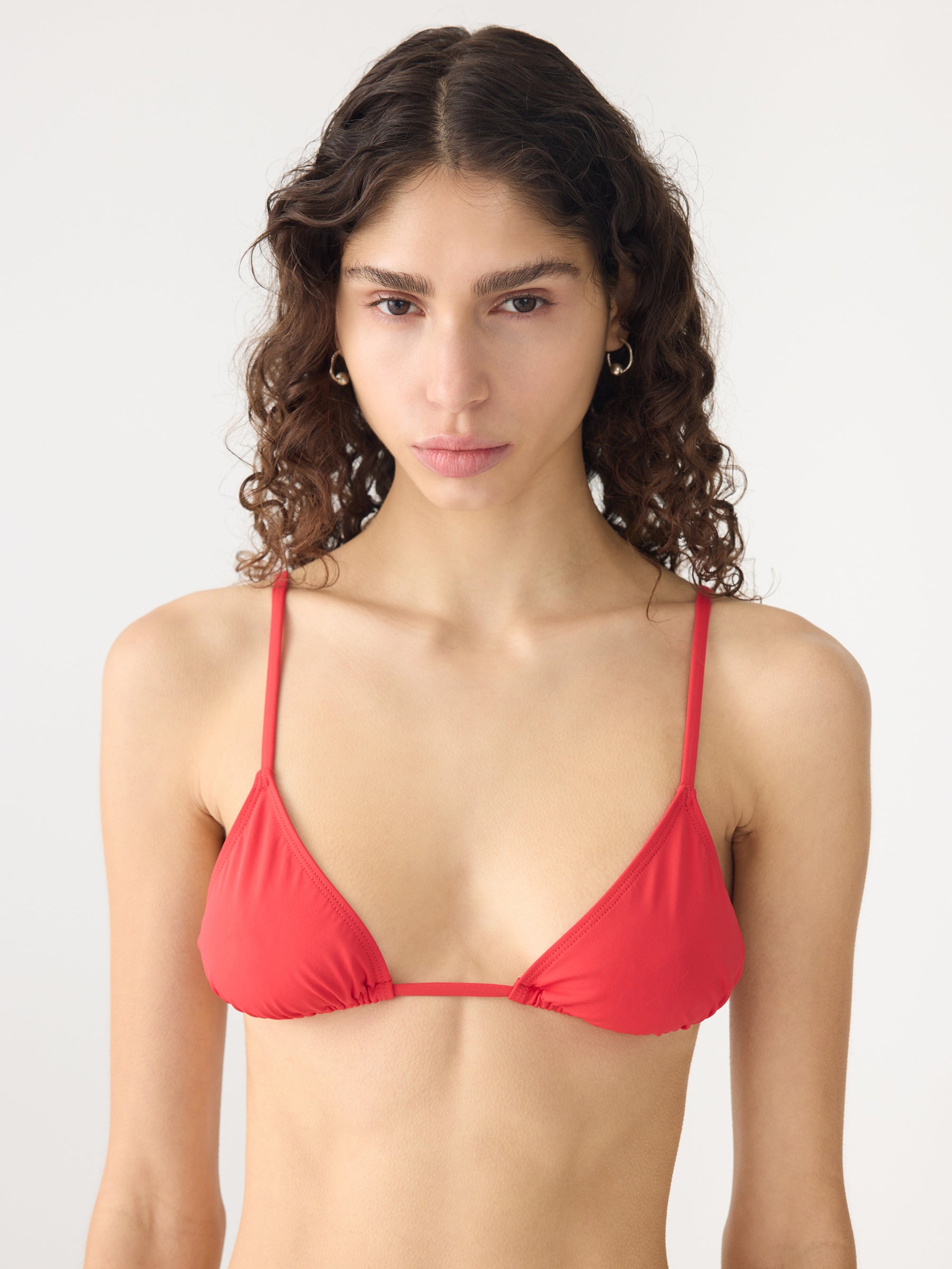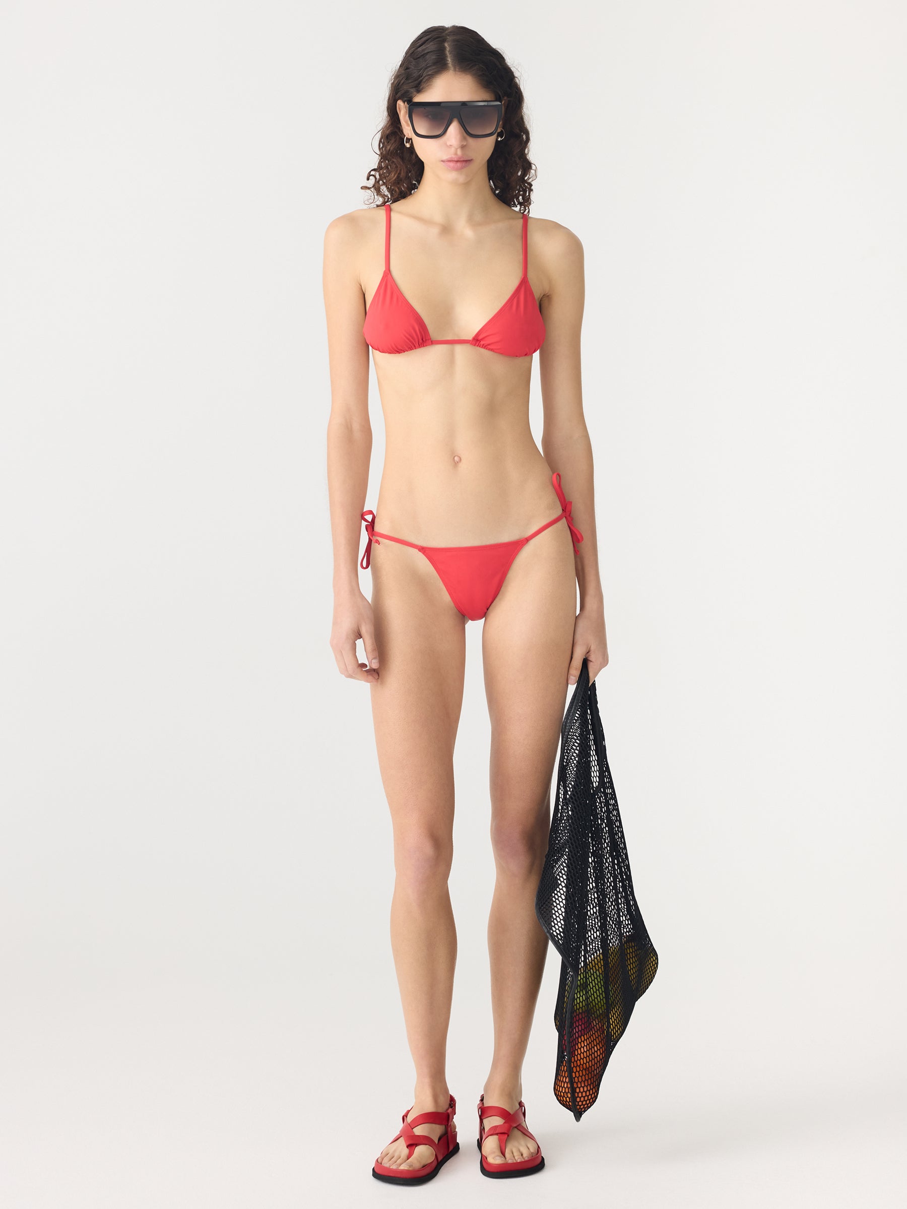 A classic triangle silhouette, features halter neck ties, back ties and adjustable cups for a personalised fit. Crafted in Italy from polyamide yarn, the fabric is OEKO-TEX 100 Class II certified and produced by a mill awarded the national Made Green in Italy sustainability certification.