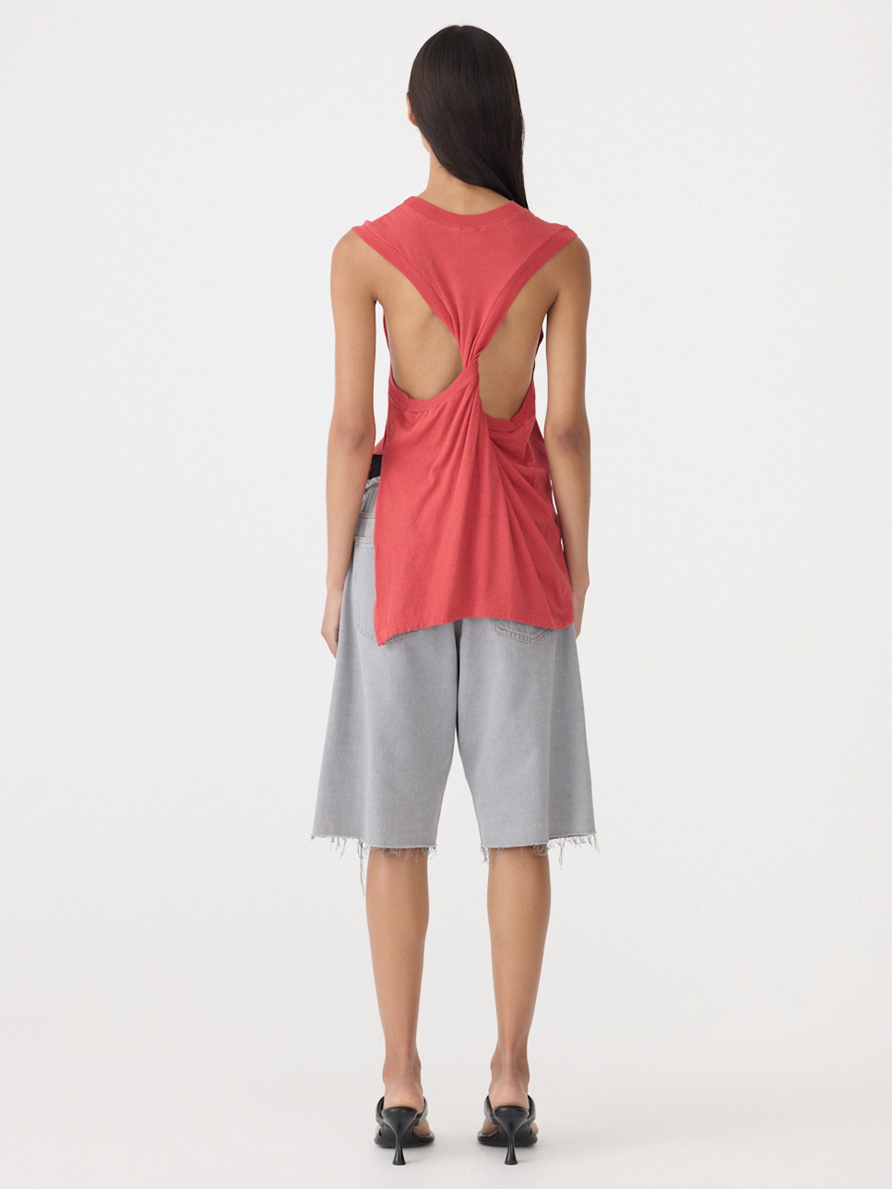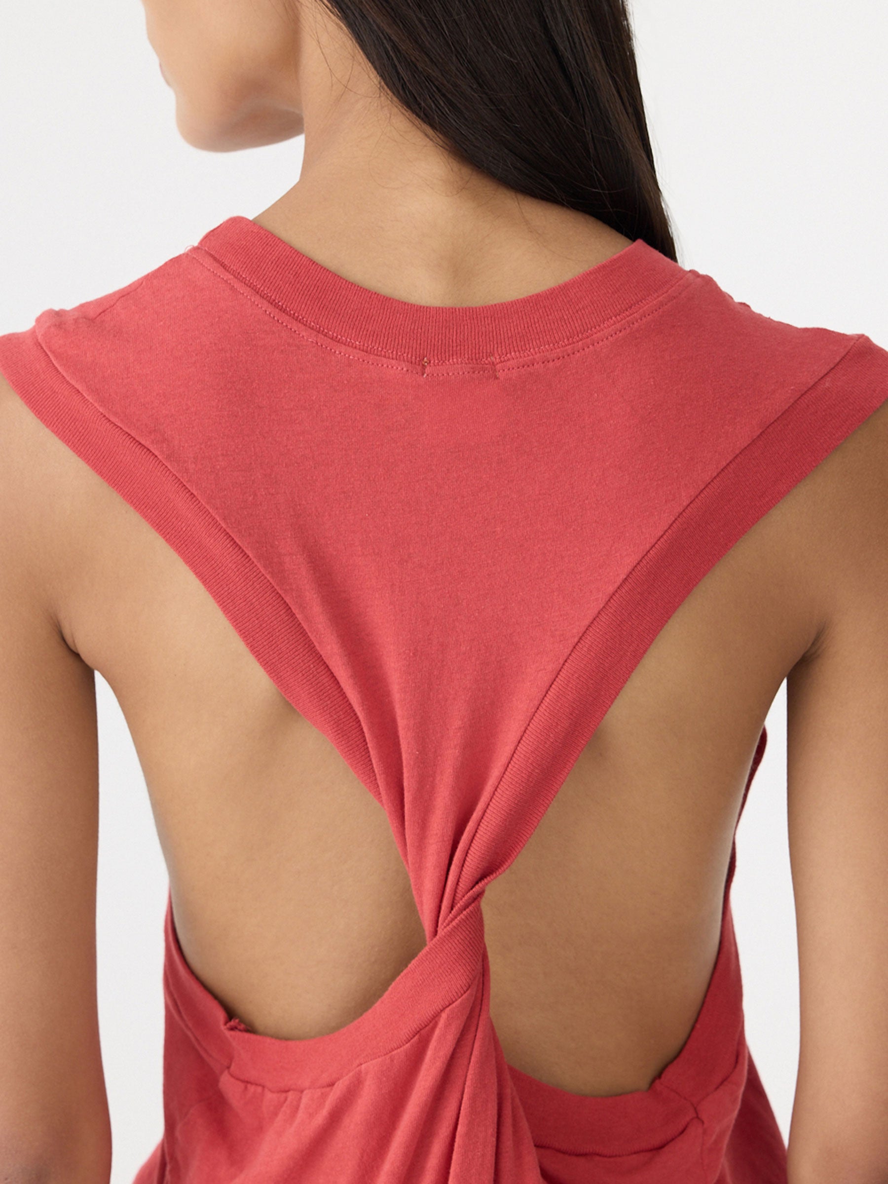 The Twist Detail Superfine Tank is crafted from organic superfine jersey for a lightweight, soft handfeel. Designed in a regular fit, it features a ribbed neck and armholes, an asymmetric finished hem with side split, and a twisted detail at the back.