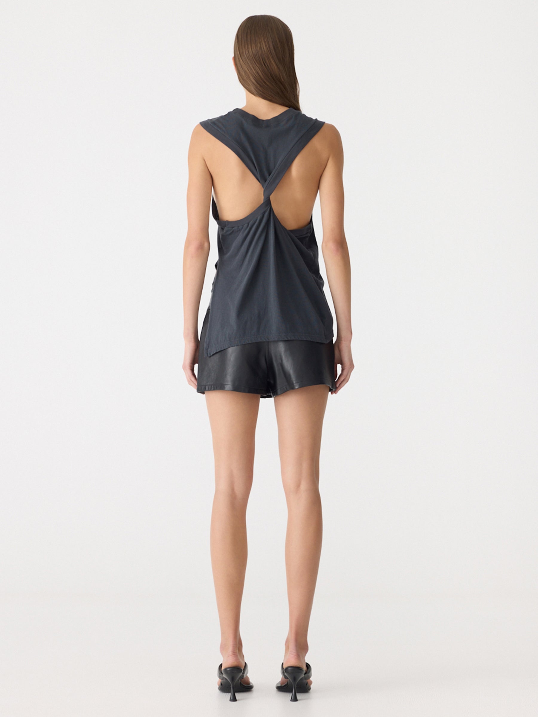 The Twist Detail Superfine Tank is crafted from organic superfine jersey for a lightweight, soft handfeel. Designed in a regular fit, it features a ribbed neck and armholes, an asymmetric finished hem with side split, and a twisted detail at the back.