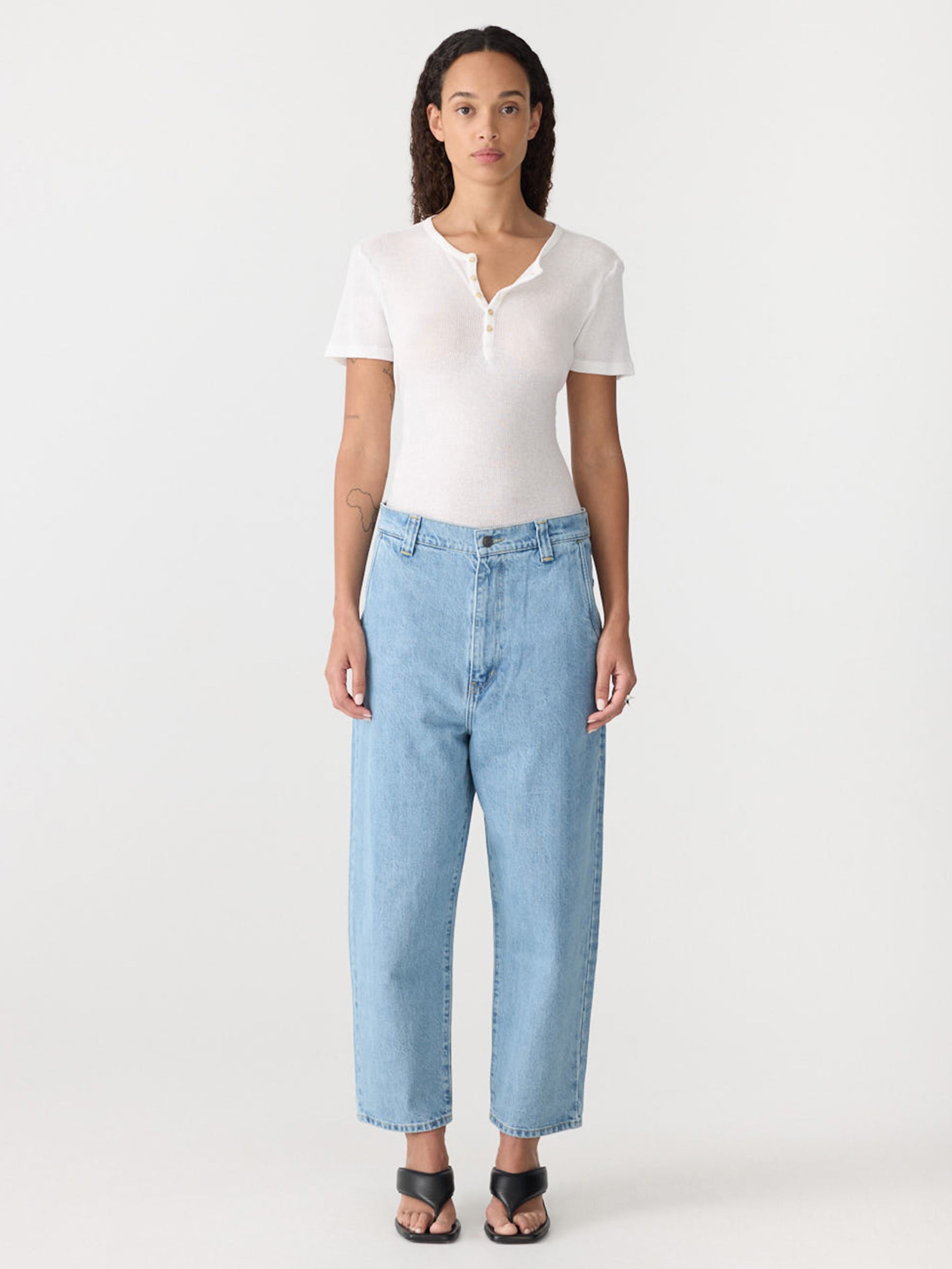 Crafted from 100% organic cotton, the Universal Low Rise Jean is designed for a relaxed fit, sitting comfortably on the hip with a slightly tapered leg. The cropped length finishes neatly at the ankle for a refined, yet relaxed look. This classic style is detailed with curved side pockets, lowered back pockets, a signature dot denim shank button, and a classic front fly fastening, complete with an extended back yoke and Bassike’s signature contrast topstitching.