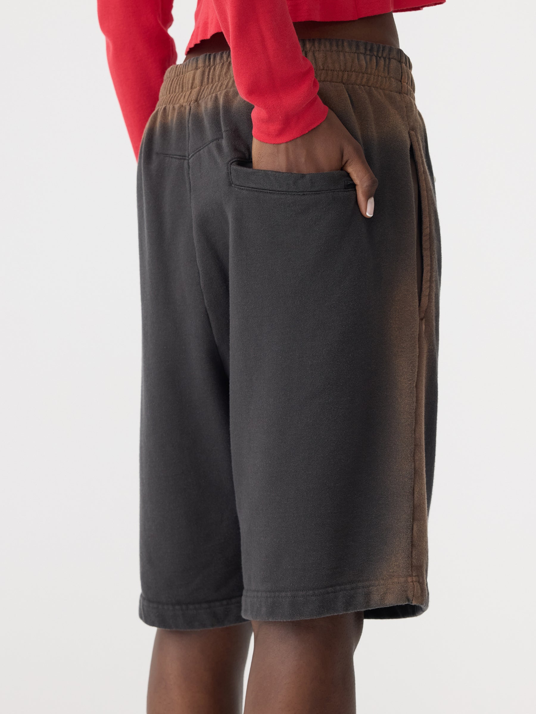 final saleRelaxed pull-on short, crafted from heavyweight, unbrushed loopback organic cotton fleece. Designed with an elasticated waistband and finished with side entry pockets for ease of wear. Made in Melbourne. Heavyweight loopback fleece offers durability with a soft, natural hand feel.