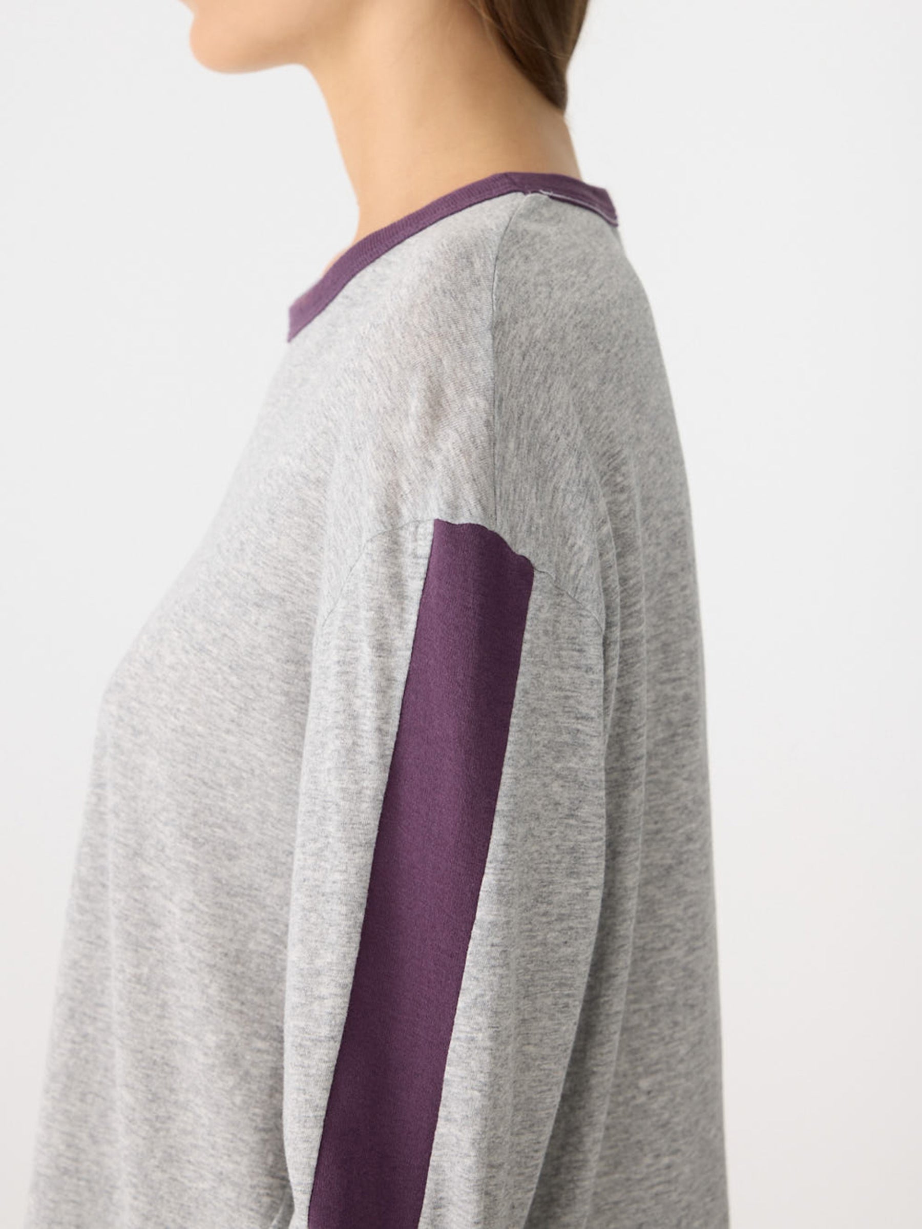• Contrast rib neckline, sleeve inserts from armhole to hem and sleeve hems