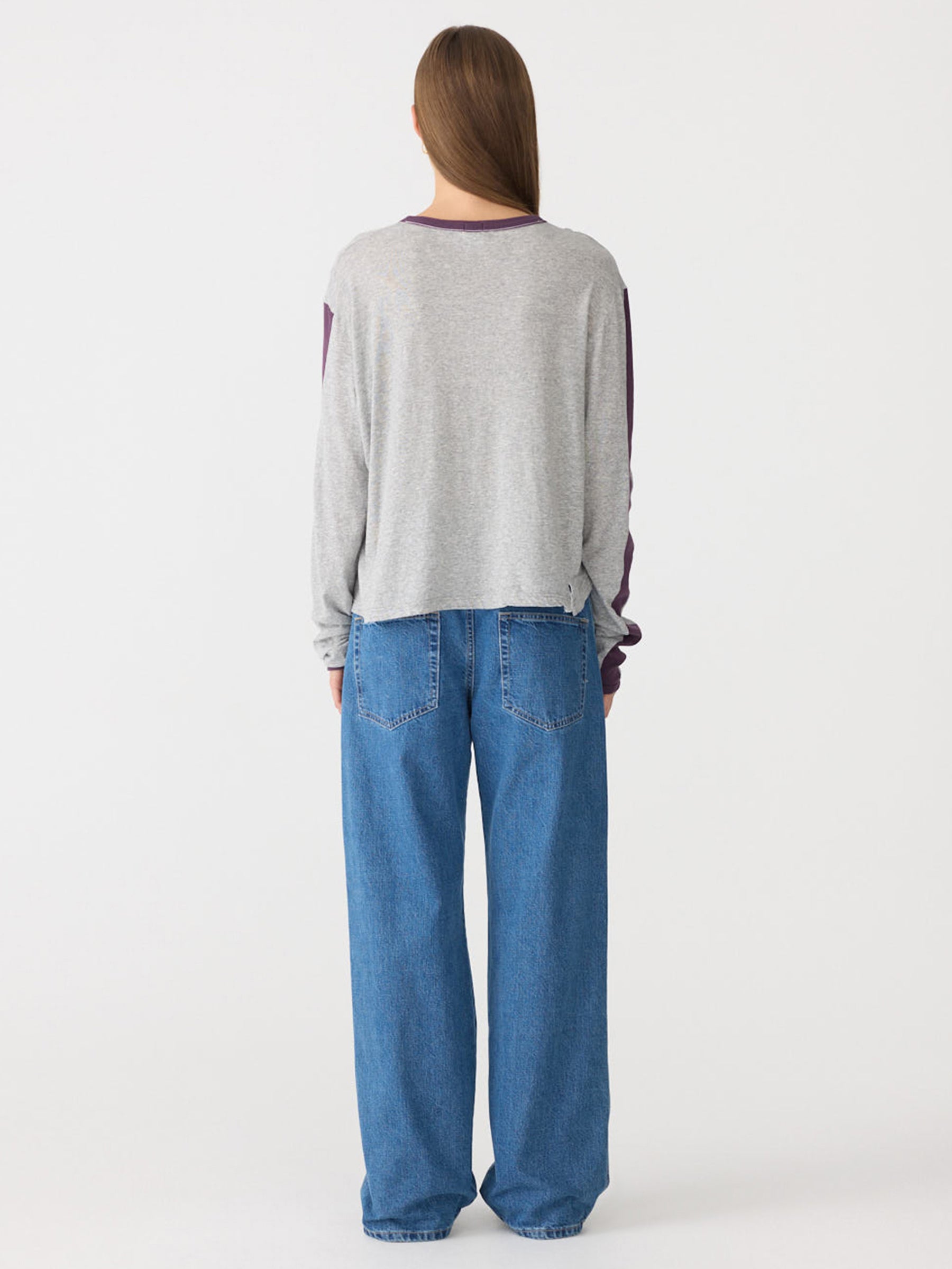 is a regular fit, boxy silhouette crafted from organic superfine cotton jersey. Designed with contrast rib detailing at the neckline and sleeve hems, including a contrast rib insert from the armhole to the sleeve hem. Finished with signature Bassike chainstitch detailing at the back neck. Knitted locally in Australia.