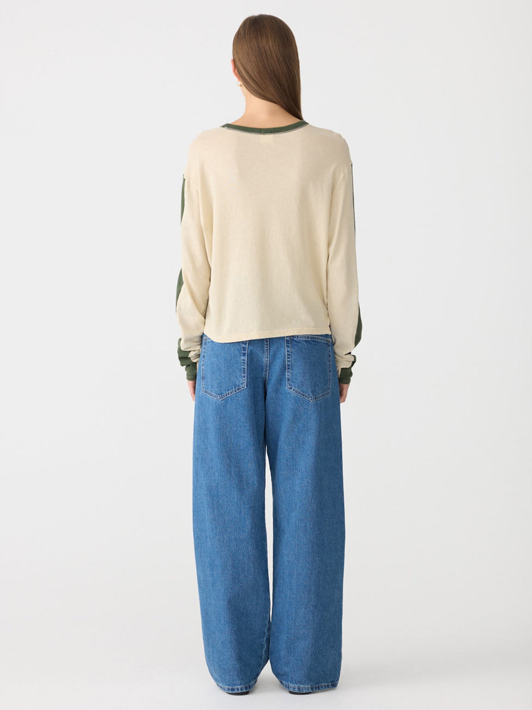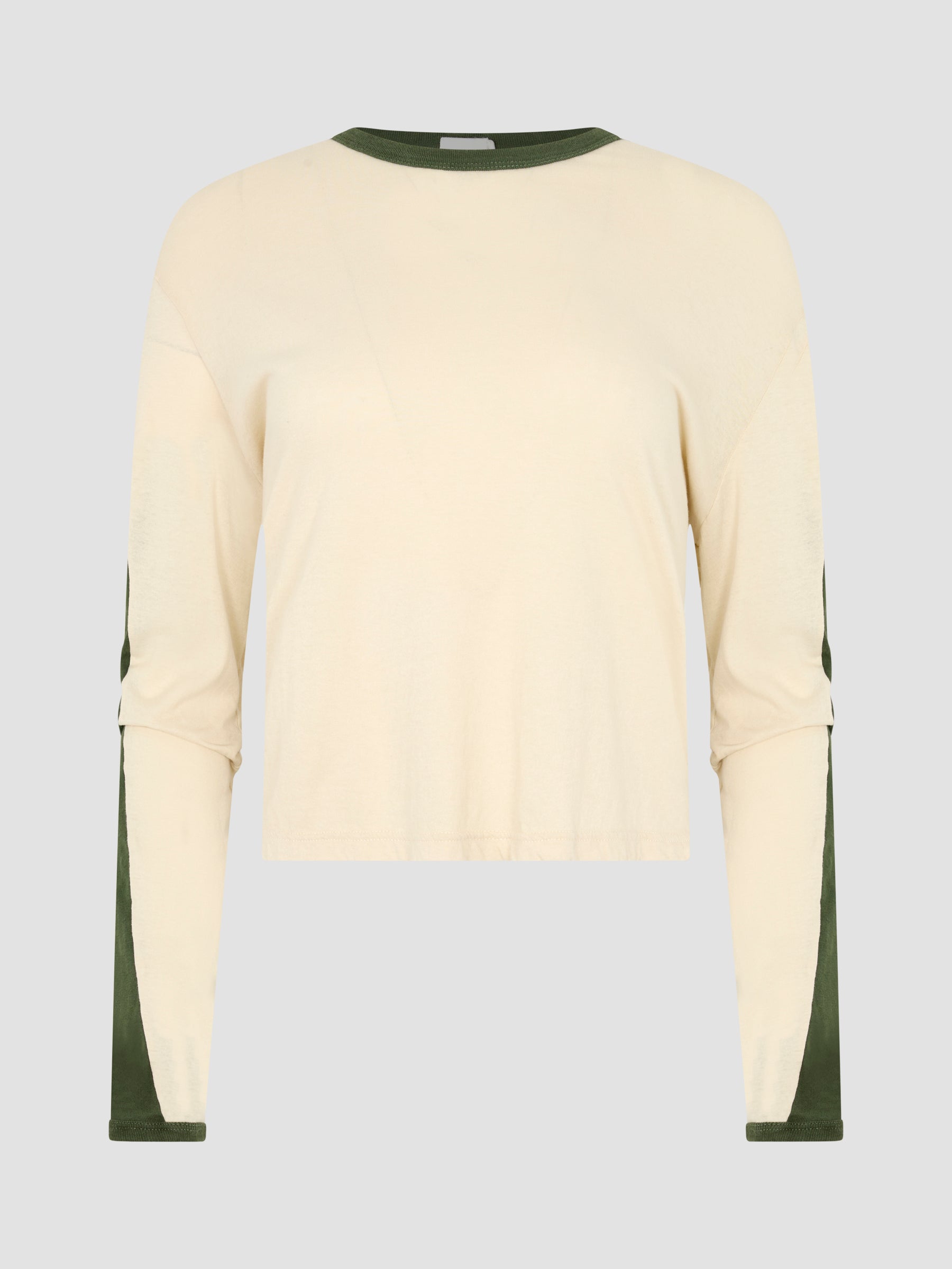 Racer Sleeve Long Sleeve T-Shirt is a regular fit, boxy silhouette crafted from organic superfine cotton jersey. Designed with contrast rib detailing at the neckline and sleeve hems, including a contrast rib insert from the armhole to the sleeve hem. Finished with signature Bassike chainstitch detailing at the back neck. Knitted locally in Australia.